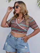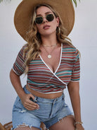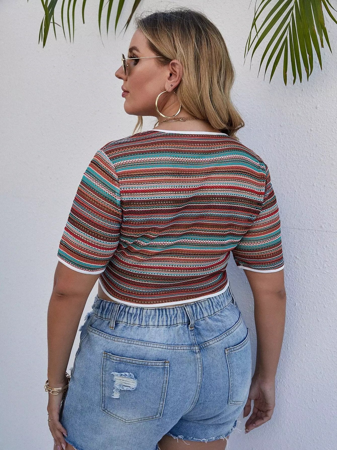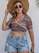 بلوزة كروشيه مخططة برقبة على شكل حرف V زائد