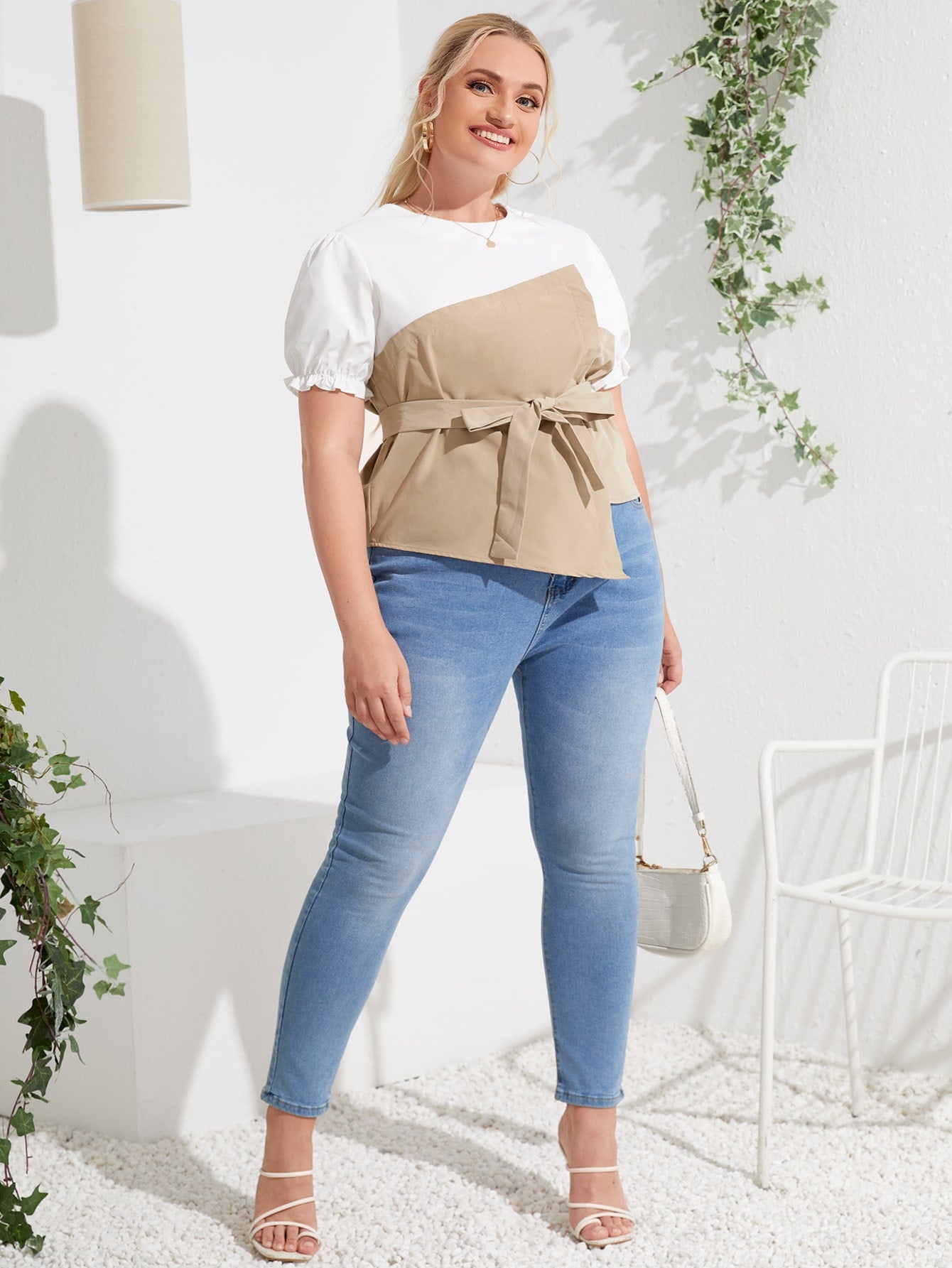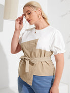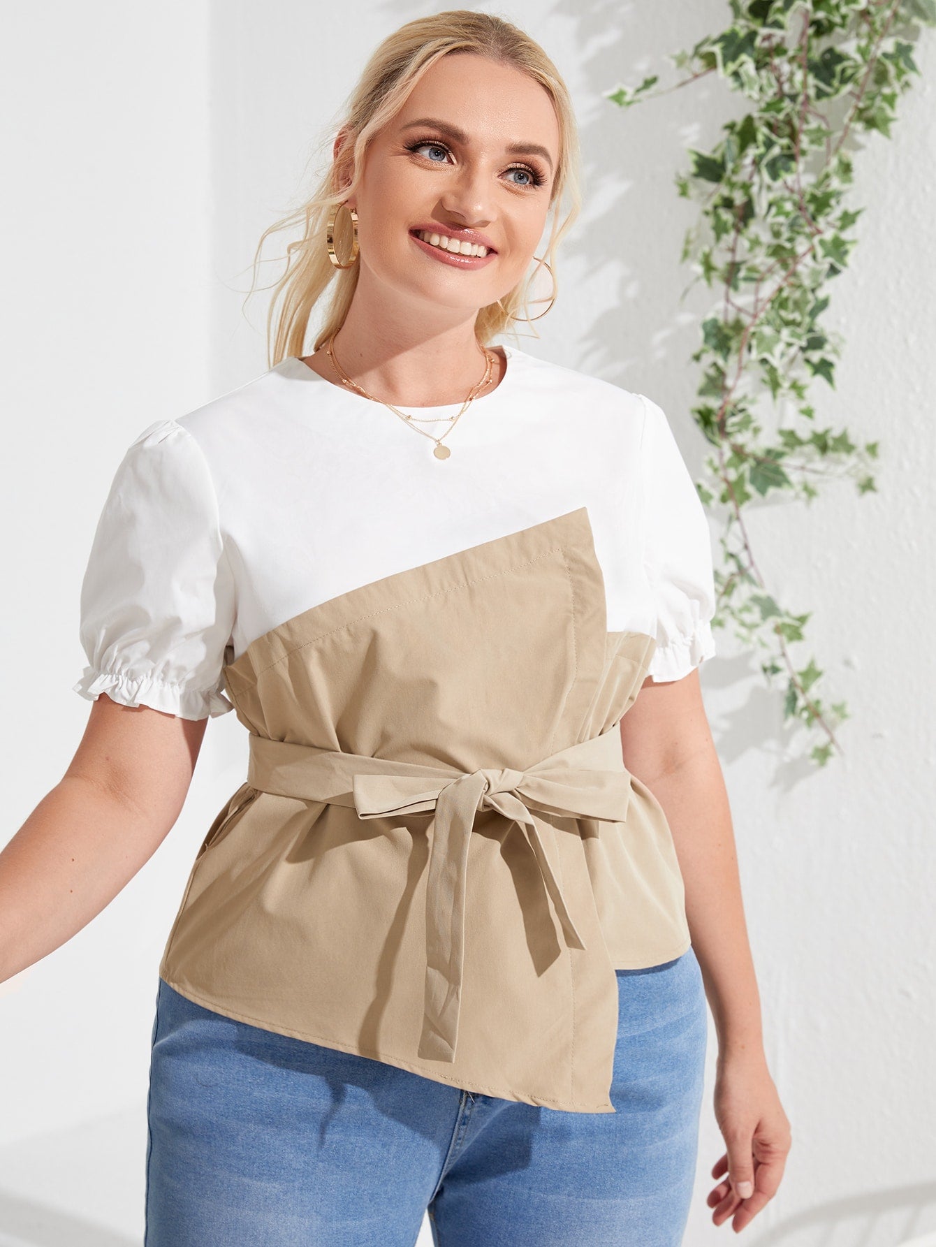 بالإضافة إلى بلوزة بلونين بدون حزام