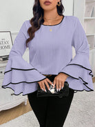 Celure Plus Size Women's Elegant Round Neck Ruffle Bell Sleeve Blouse