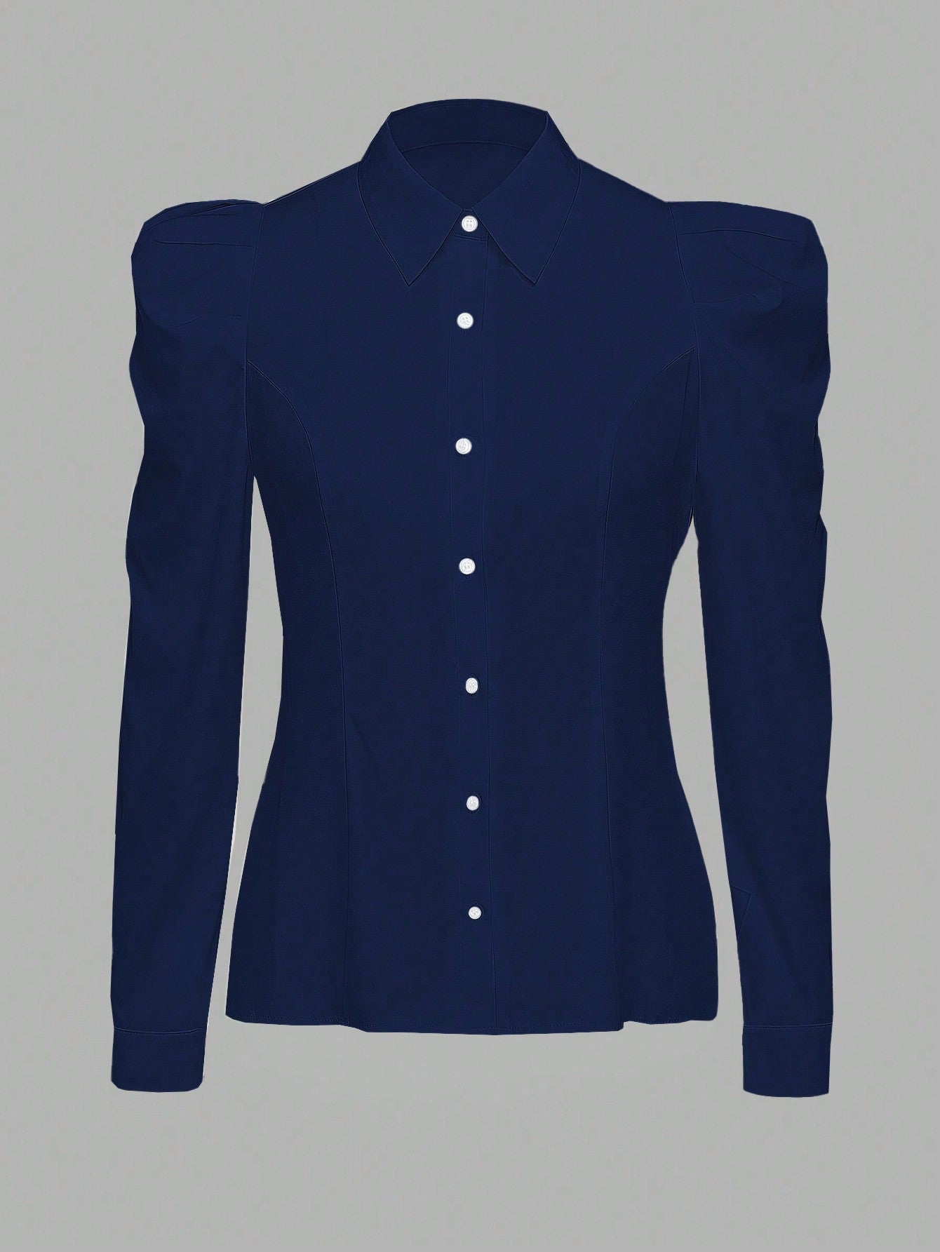 women Flirla Plus Size Women Plain Long Sleeve Single-Button Casual Blouse