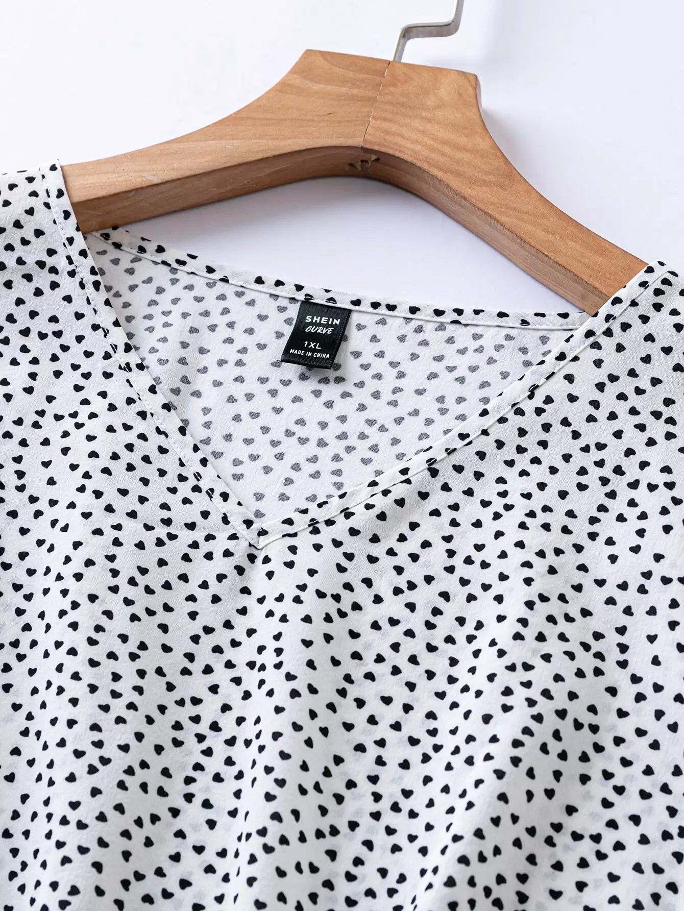 بلوزة بيبلوم مطبوع عليها قلب مطبوع فوقها بالكامل