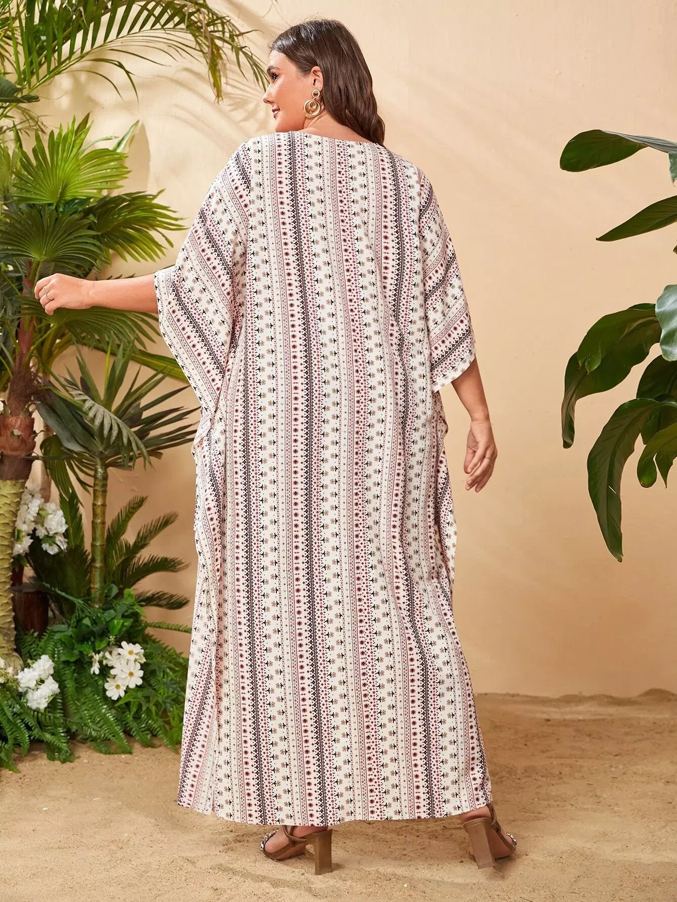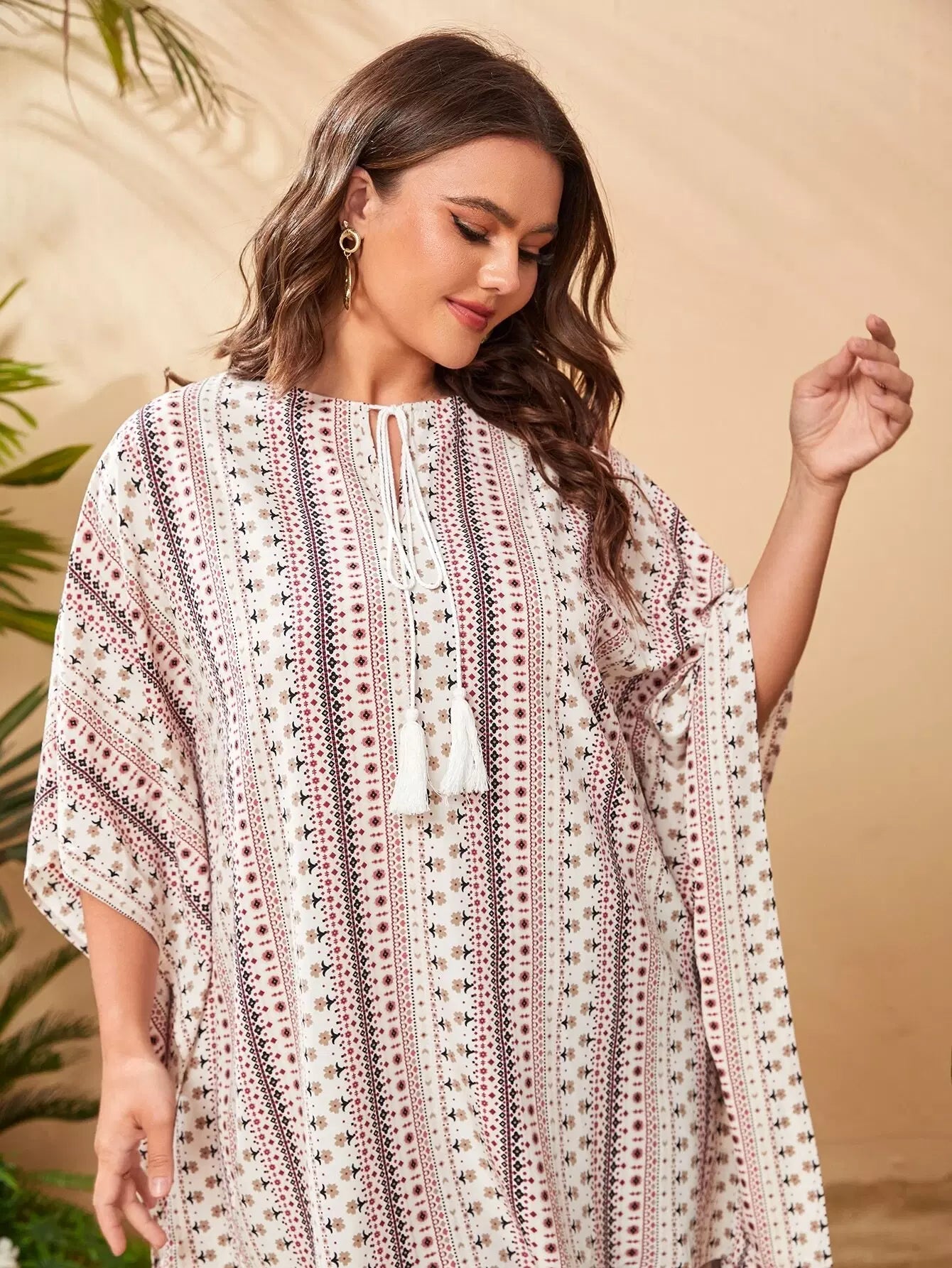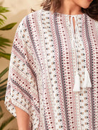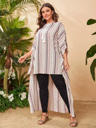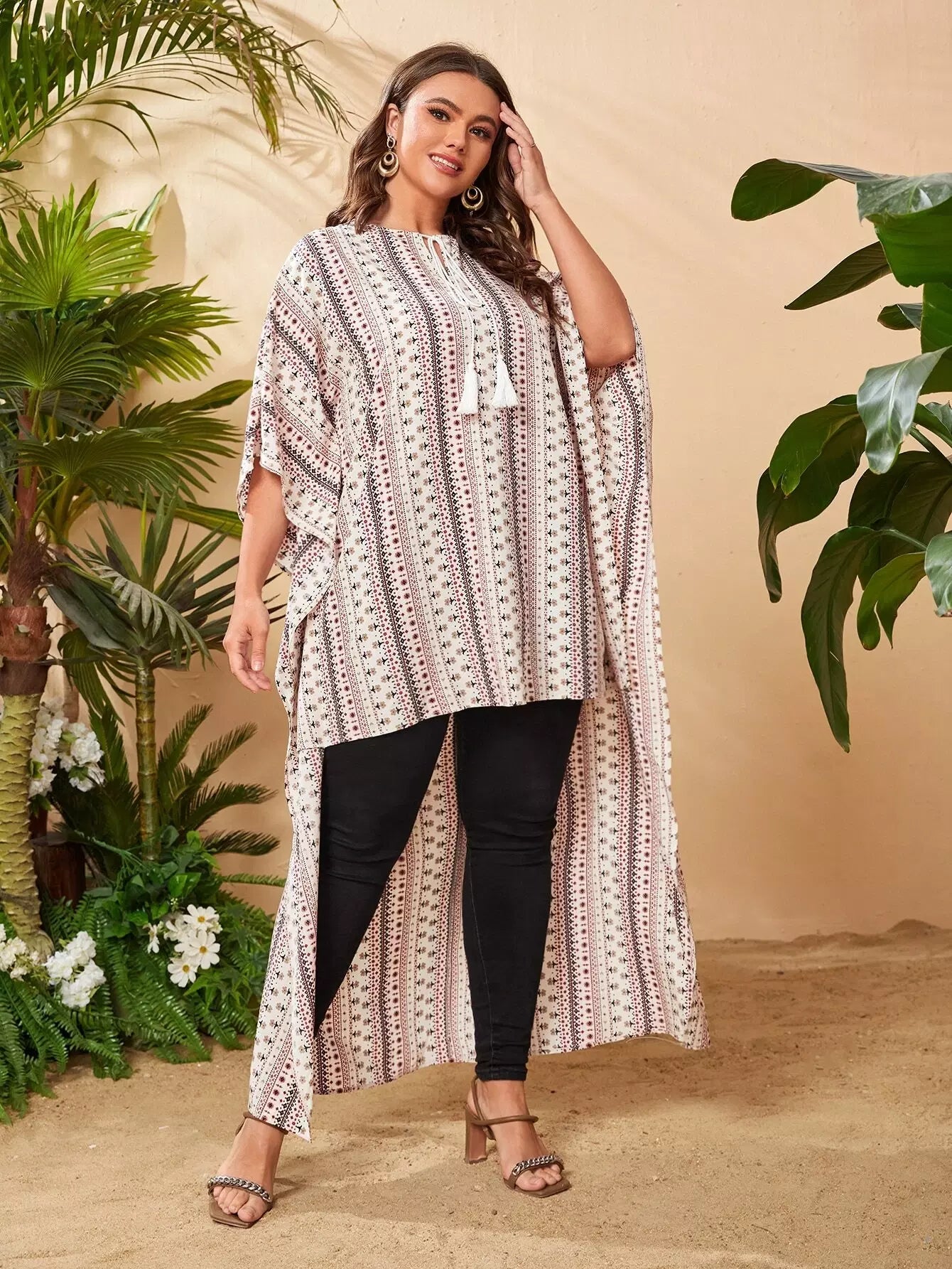بلوزة بطبعة زائد مطبوع عليها ربطة عنق عالية منخفضة بالكامل