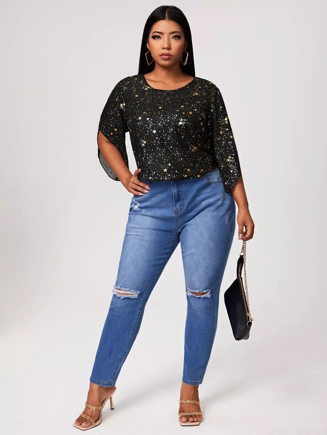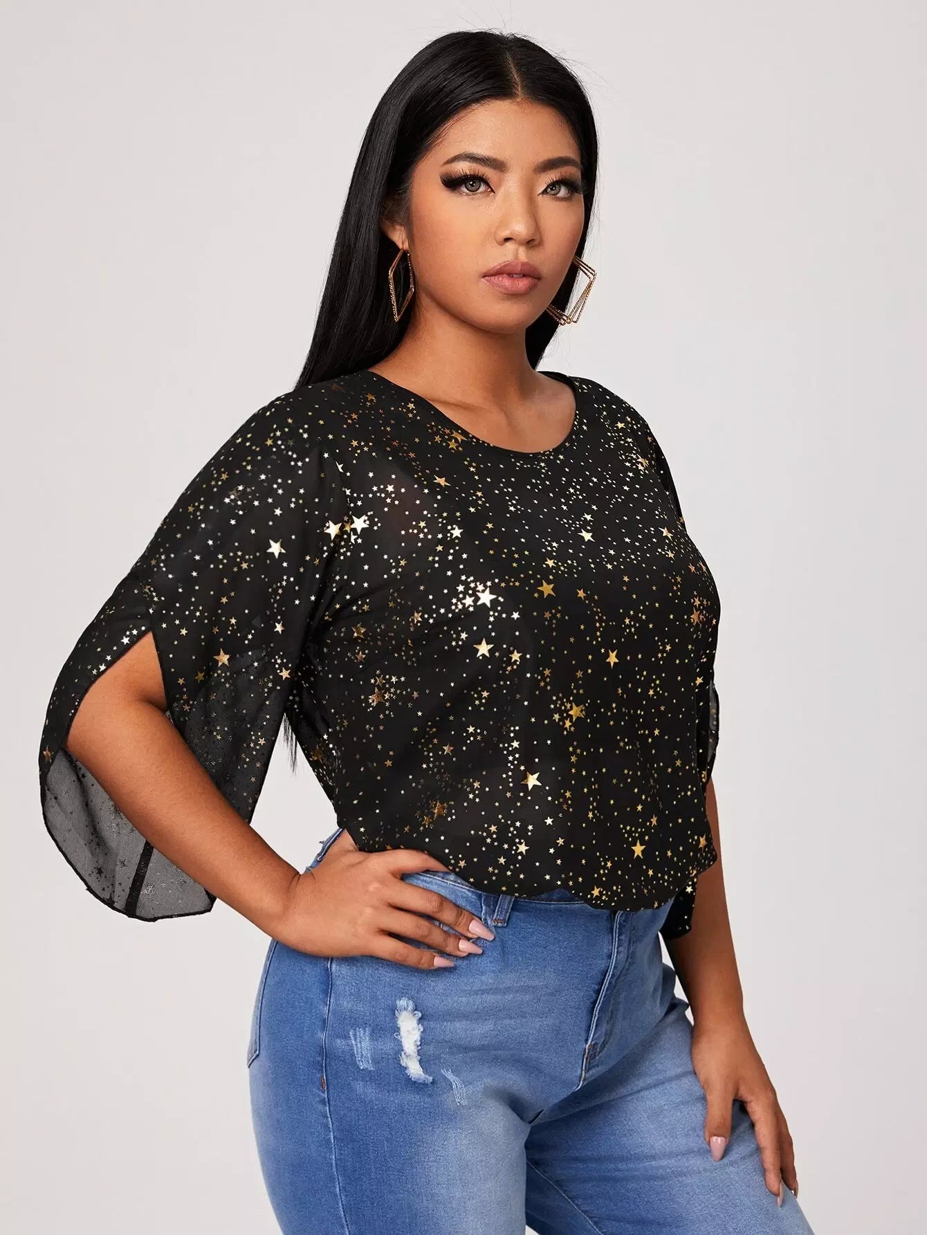 بلوزة بطبعة نجوم مطبوعة على شكل زائد