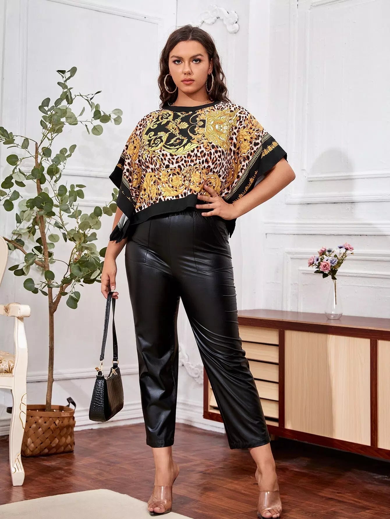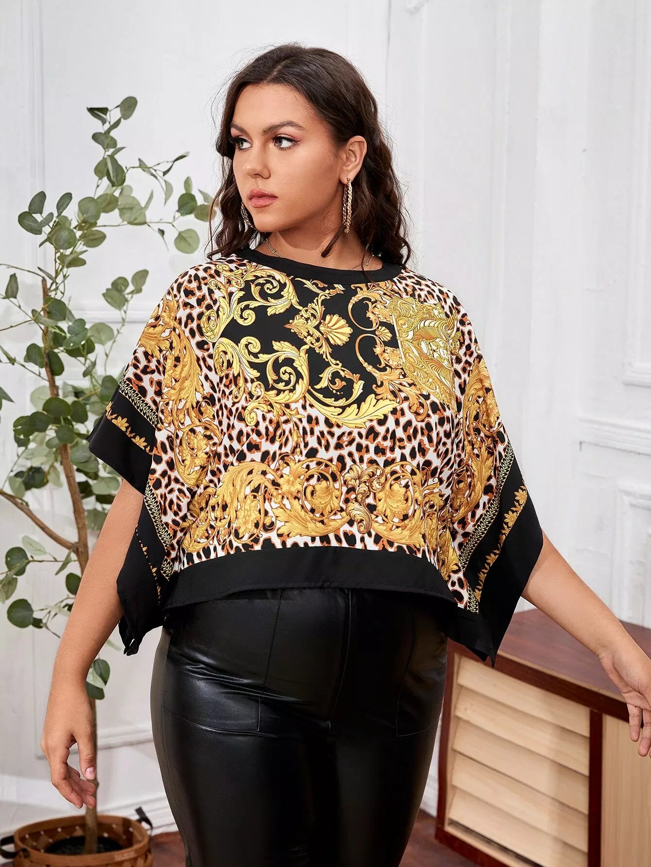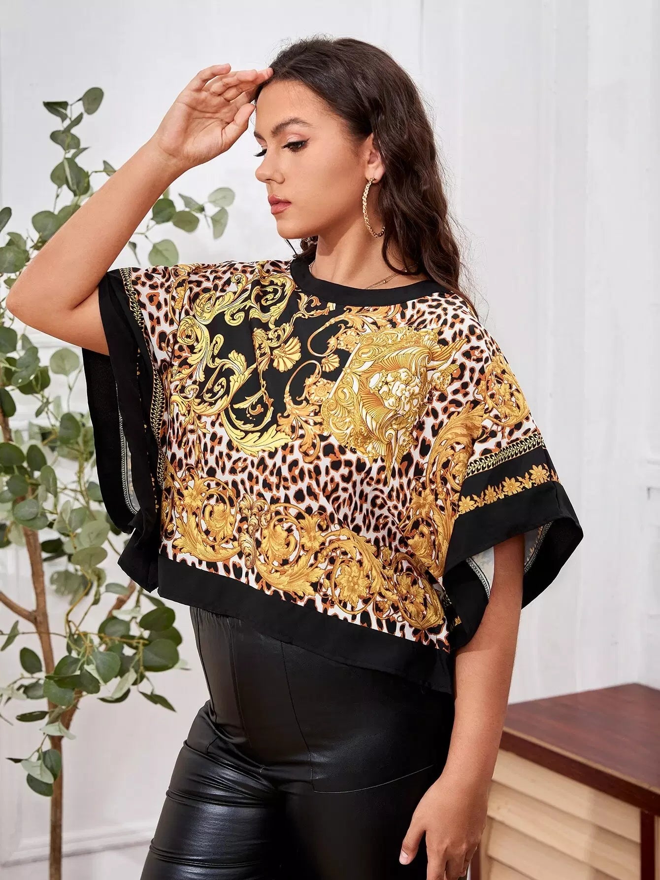 بلوزة بأكمام بطبعة باروكية بأكمام باتوينغ بلس