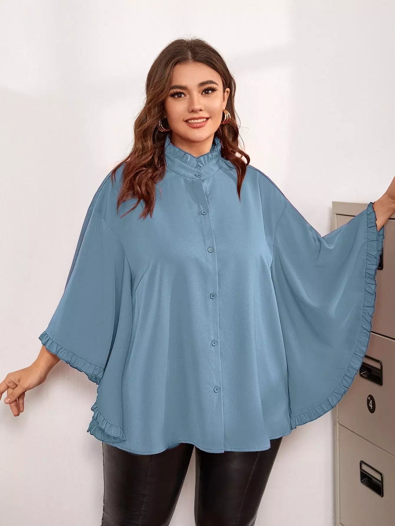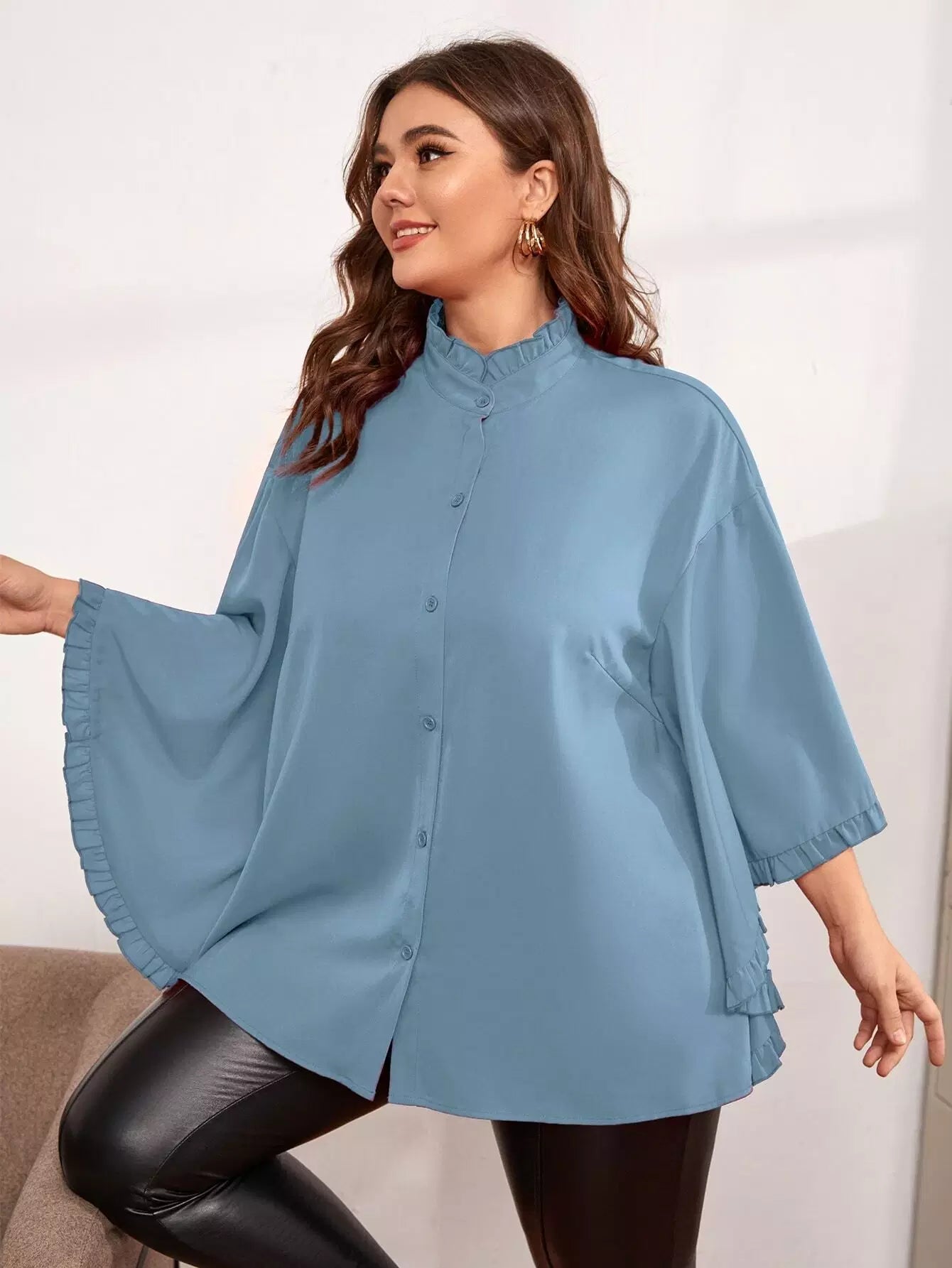بلوزة بأكمام كشكش بأكمام بلس بلس بلوزة كشكش زائد