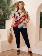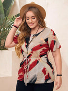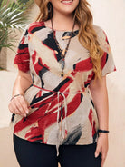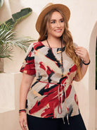 بالإضافة إلى بلوزة بطباعة فرشاة بدون حزام