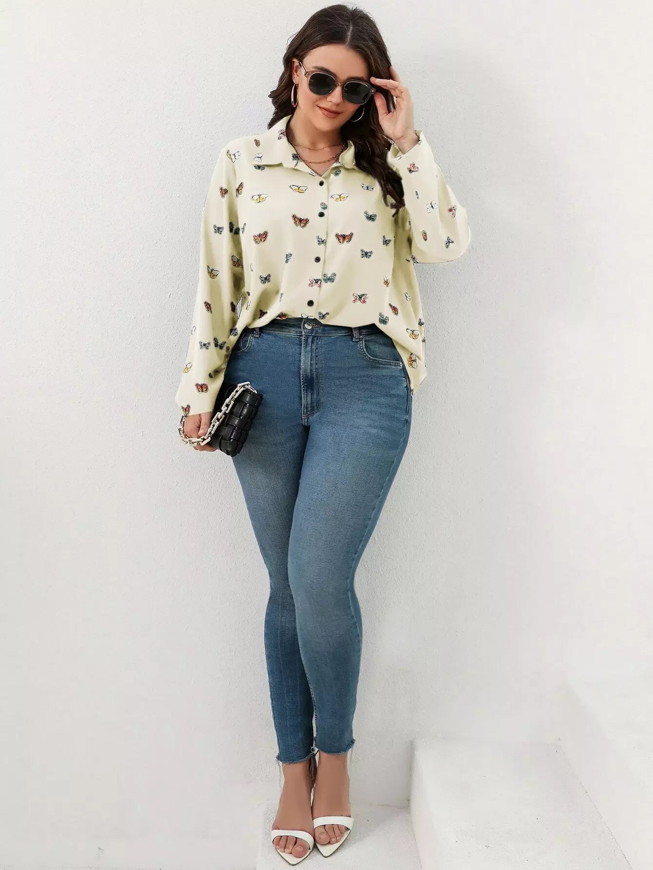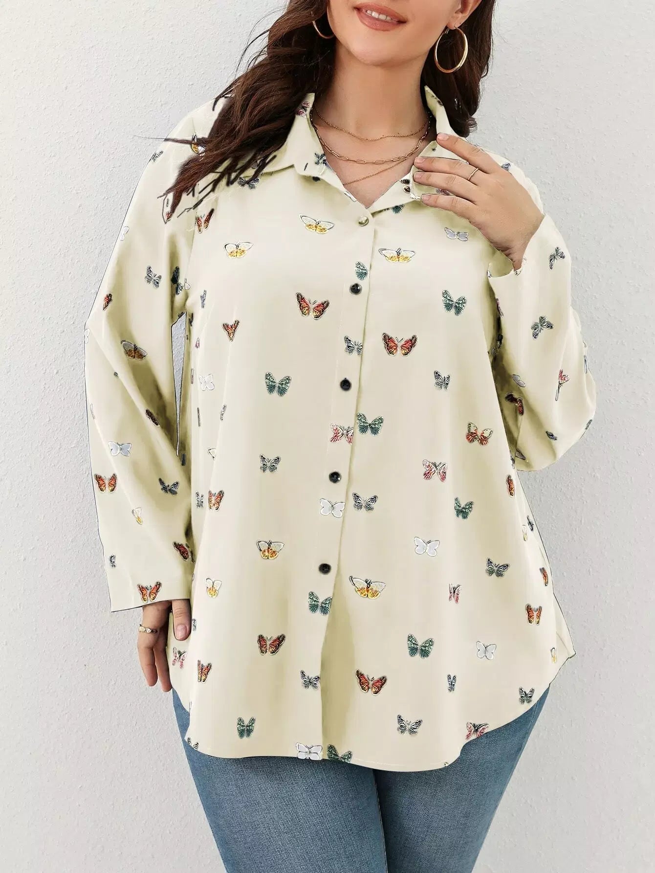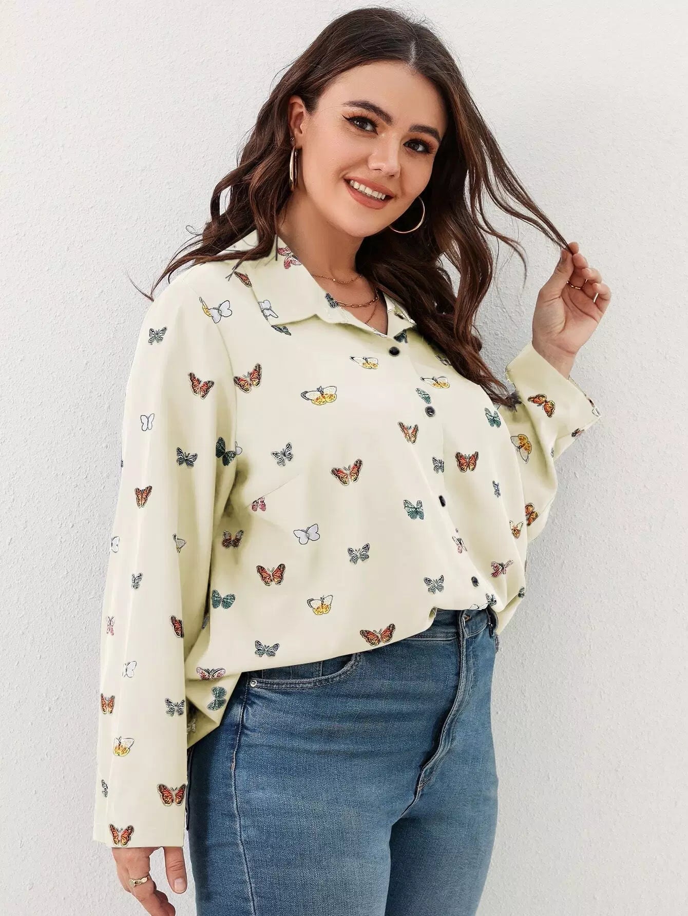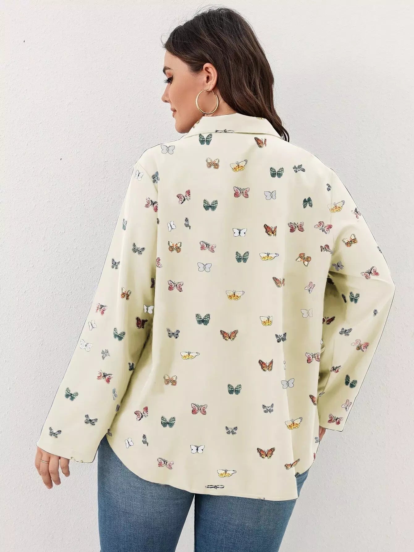 قميص بطبعة فراشة زائد بأزرار أمامية