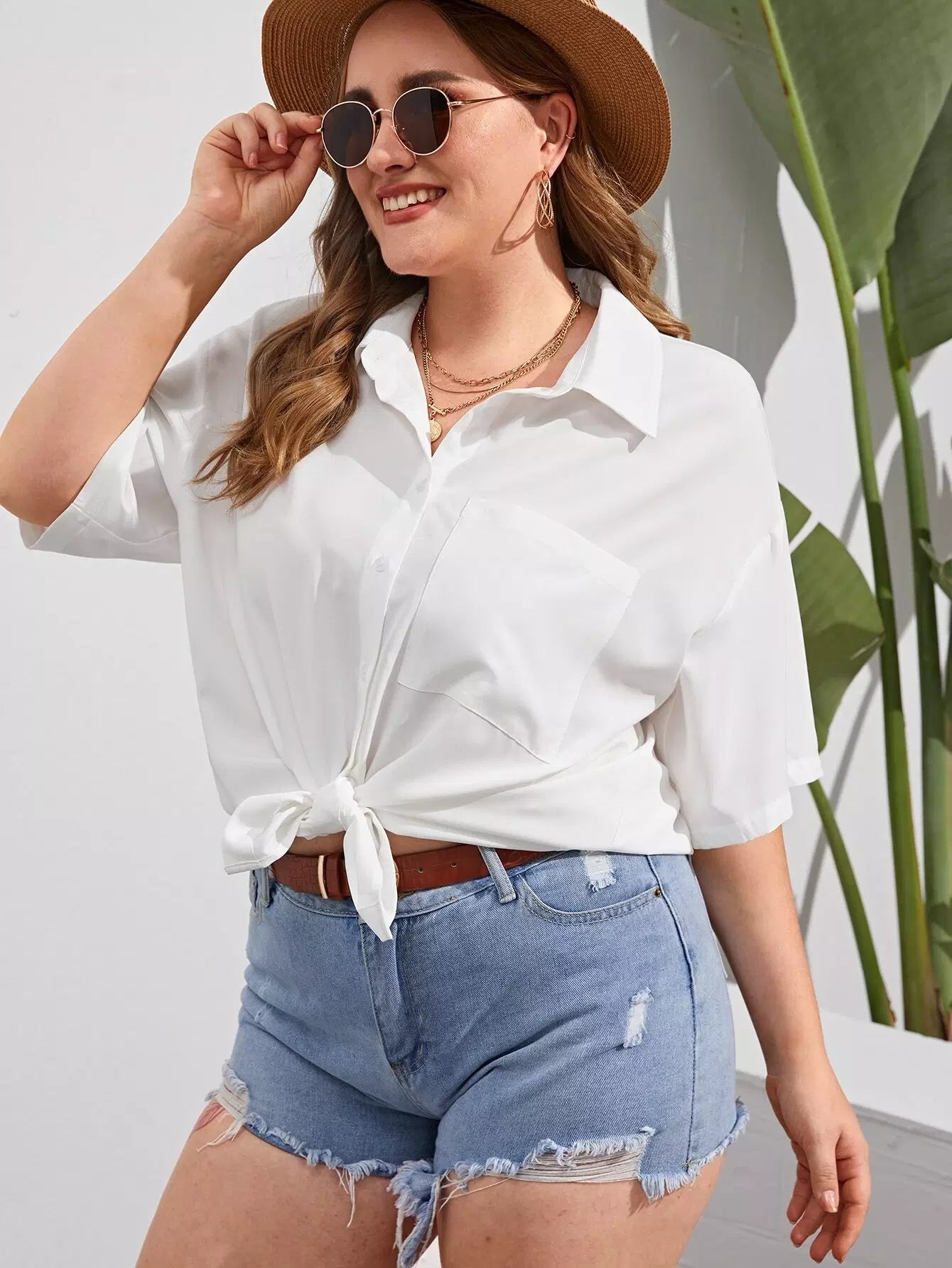 قميص بأزرار أمامية منسدلة الكتفين بأزرار أمامية