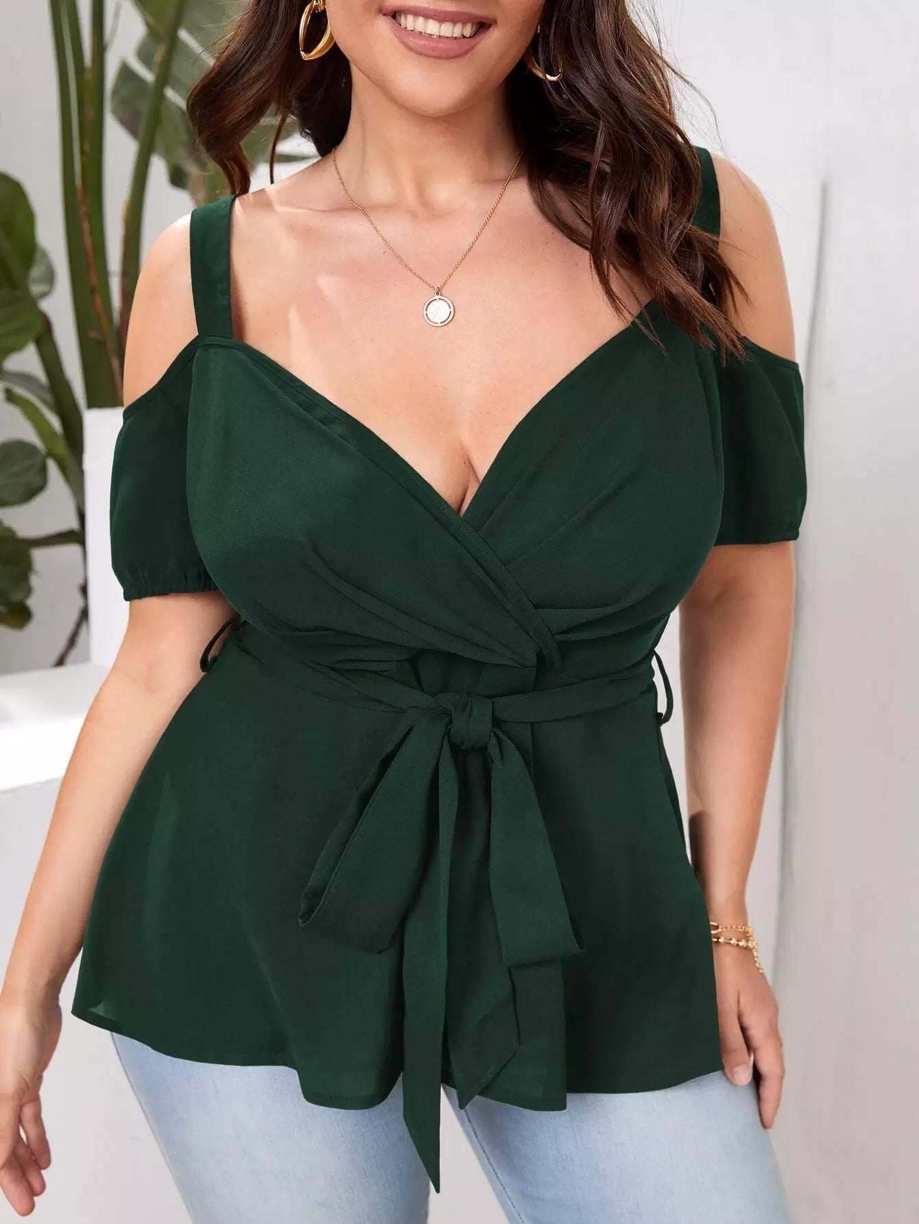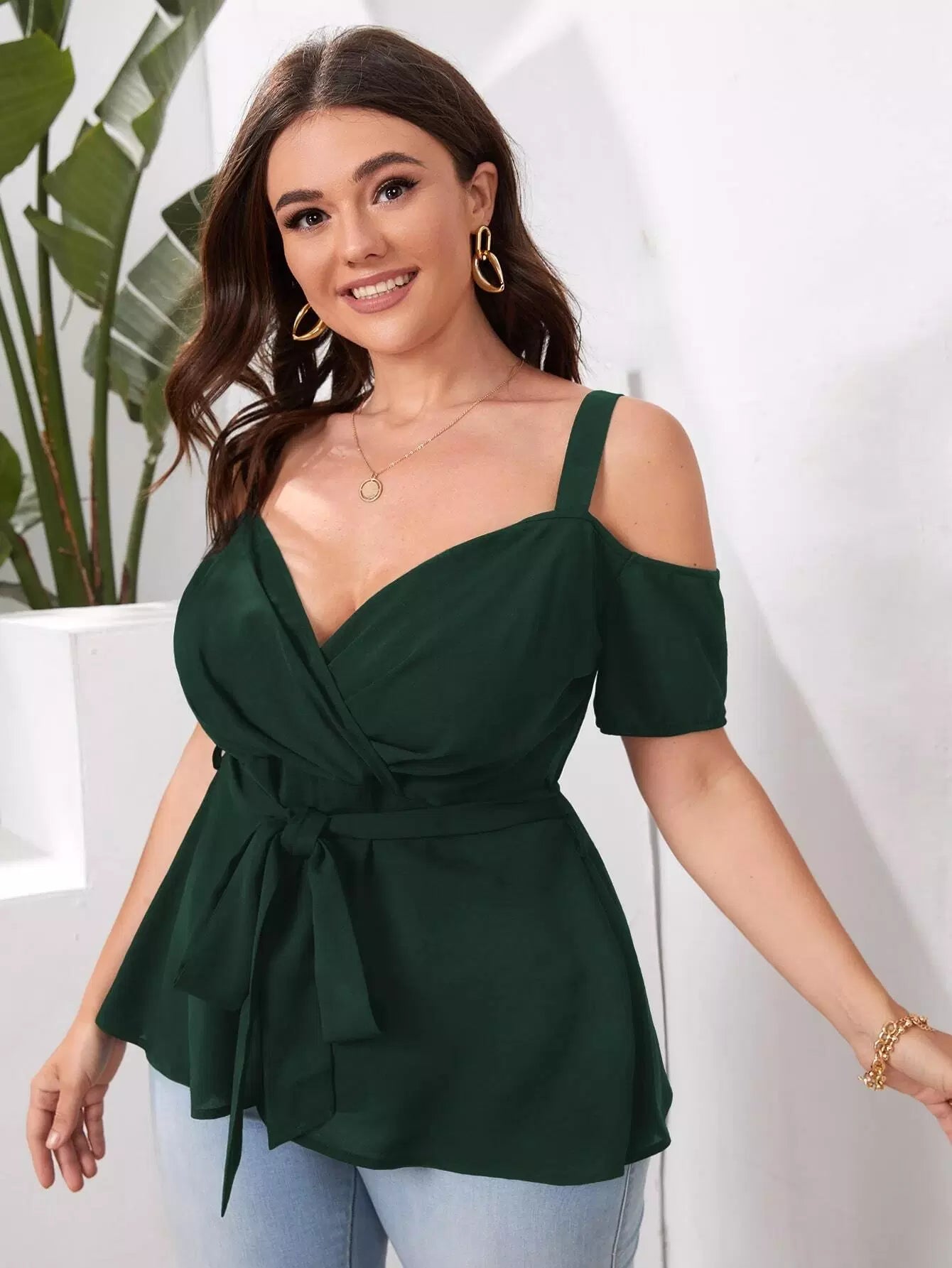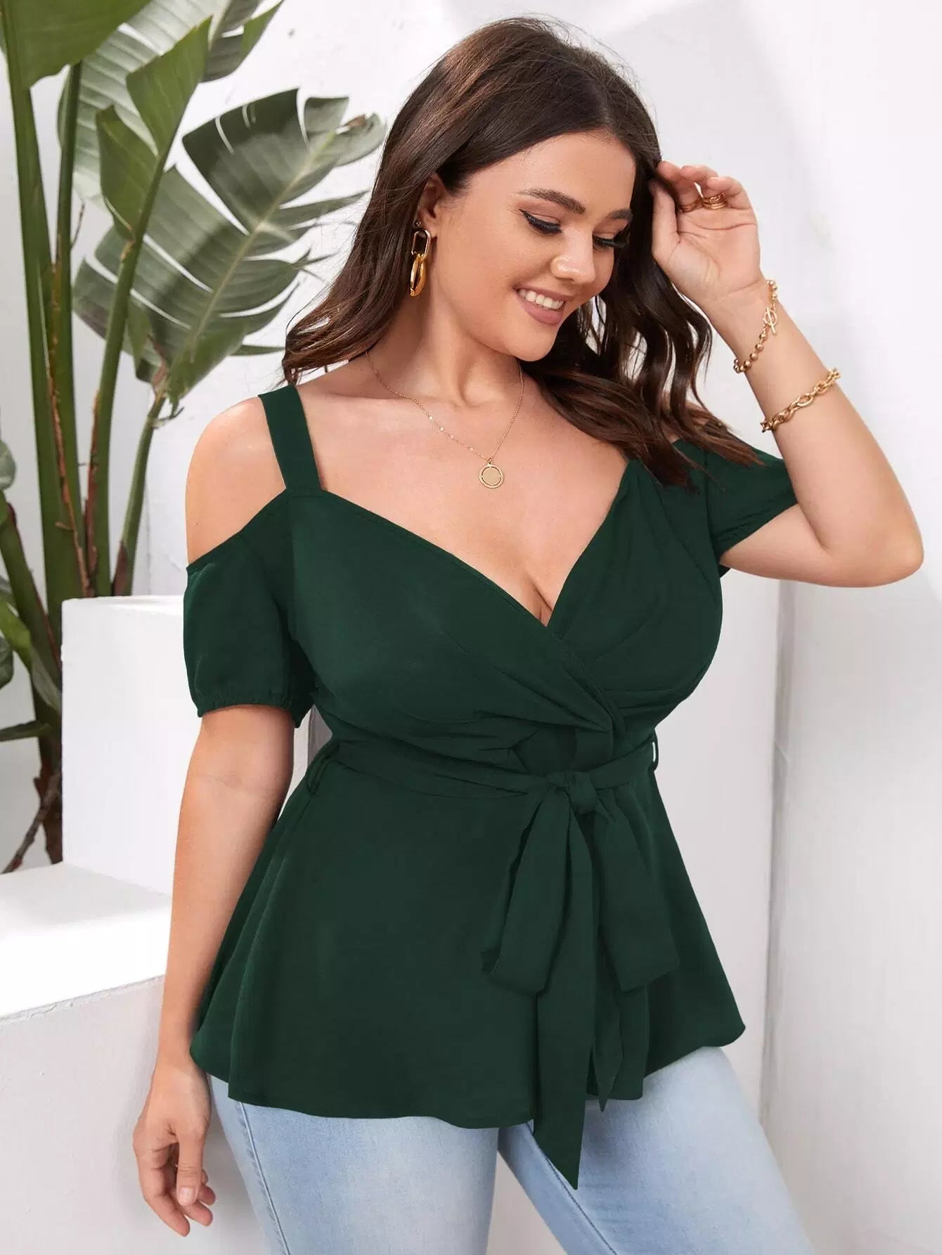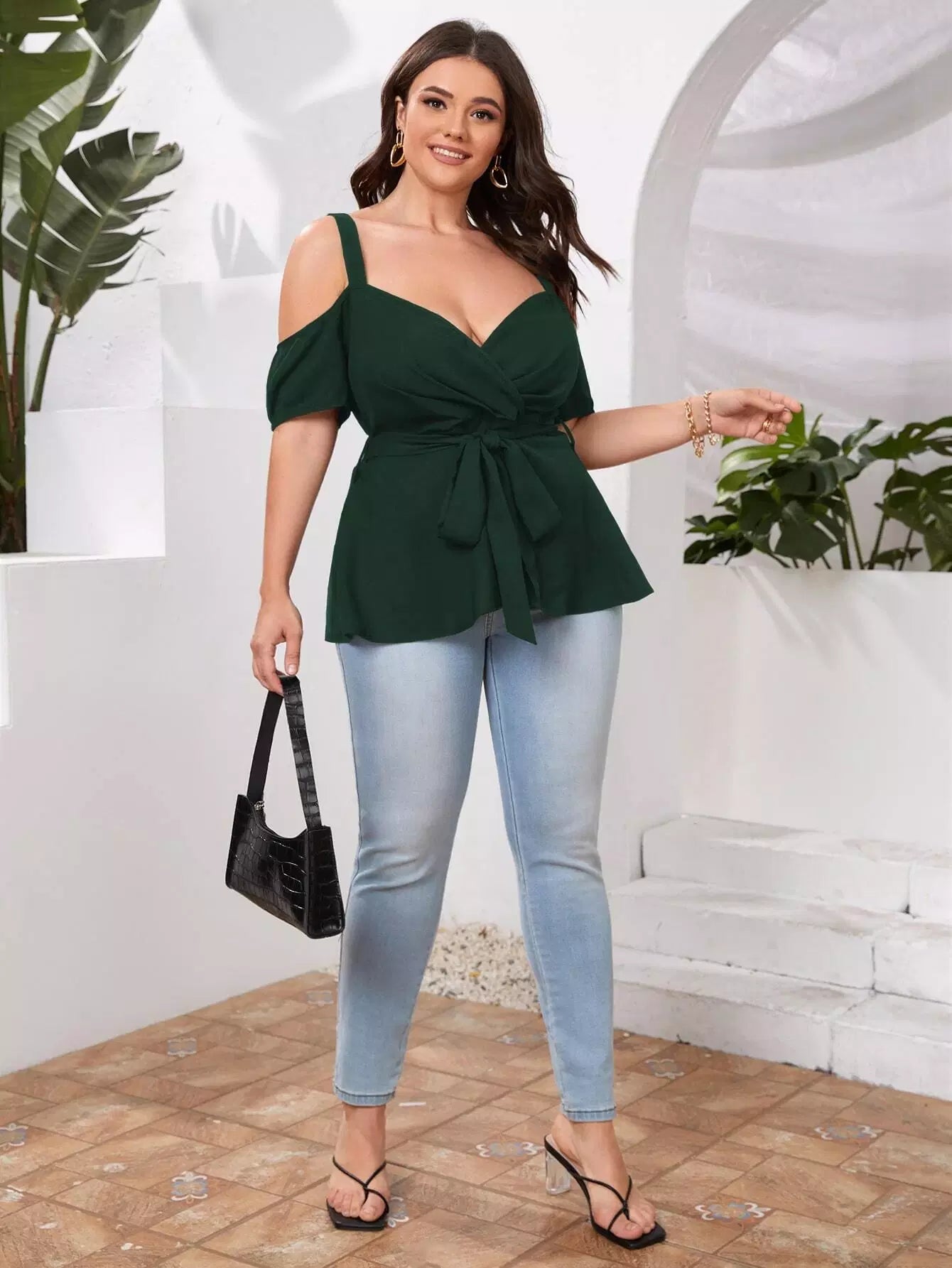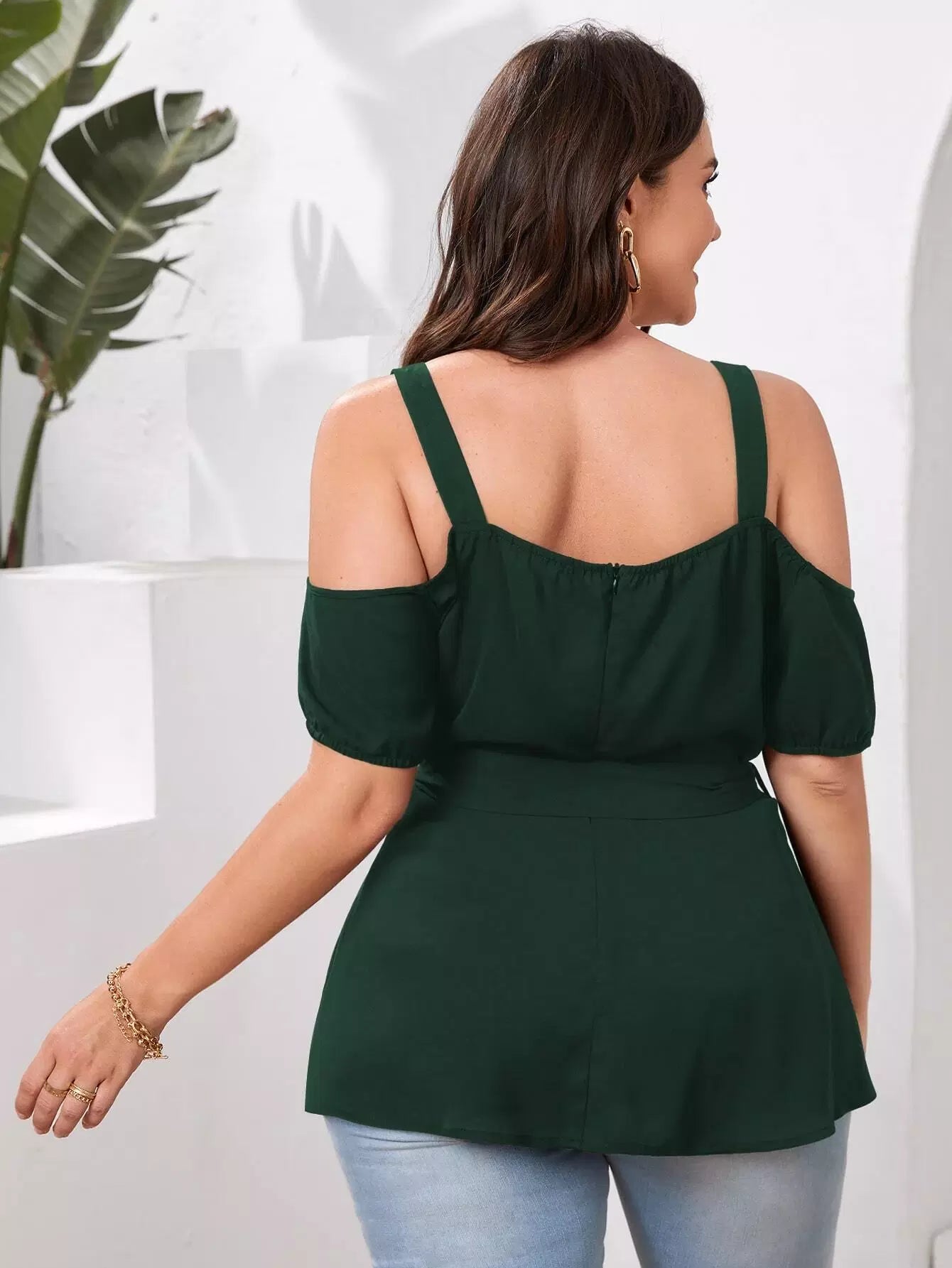بالإضافة إلى بلوزة بيبلوم بأكتاف باردة بدون حزام