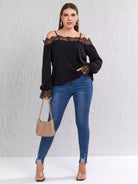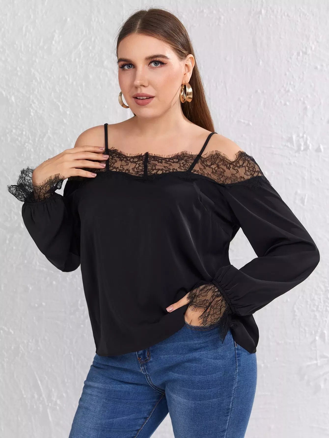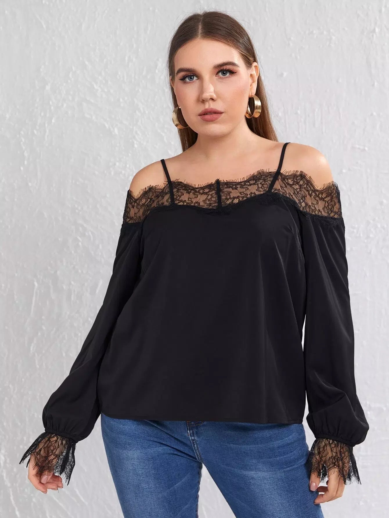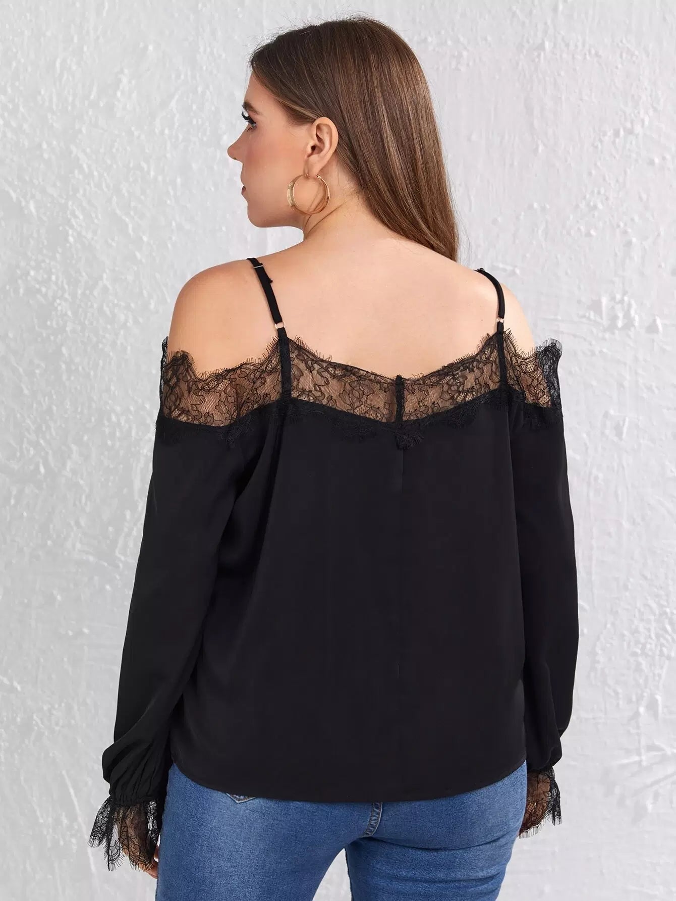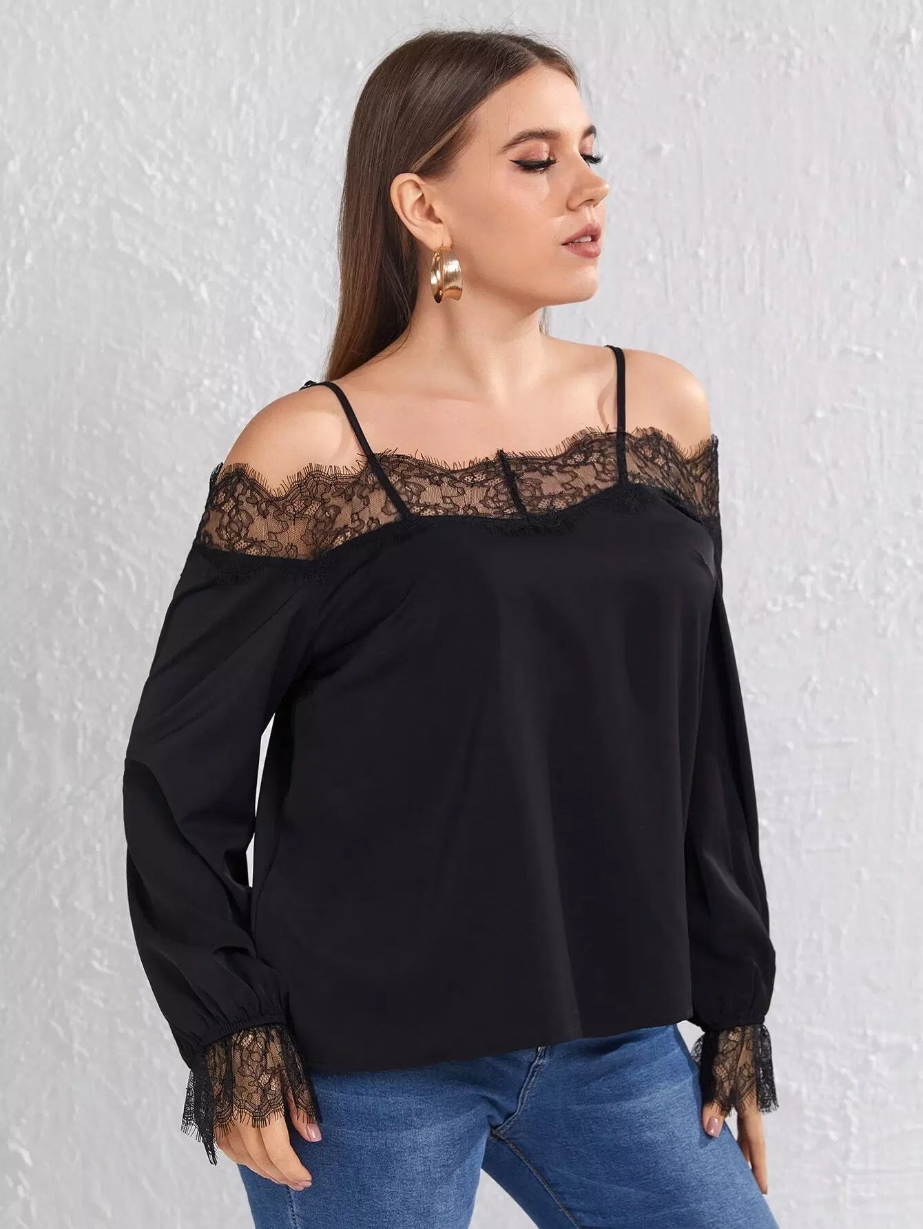 نحيف - مقاس كبير بلوزة من الدانتيل على النقيض من الكتف البارد