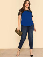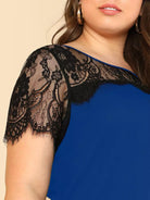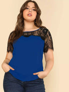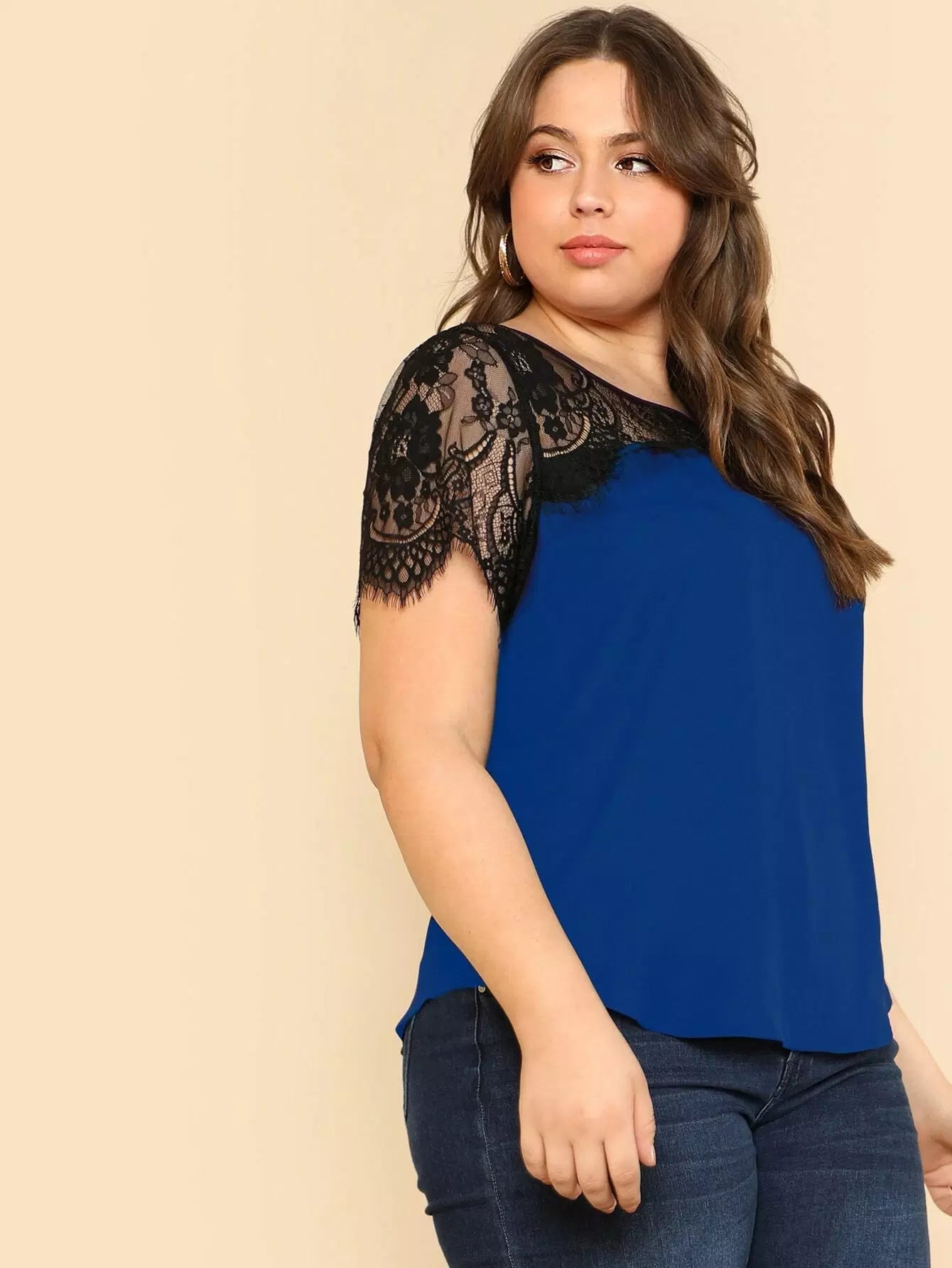 بلوزة بحافة مقوّسة من الدانتيل بلون مغاير بلون مغاير بلون مغاير