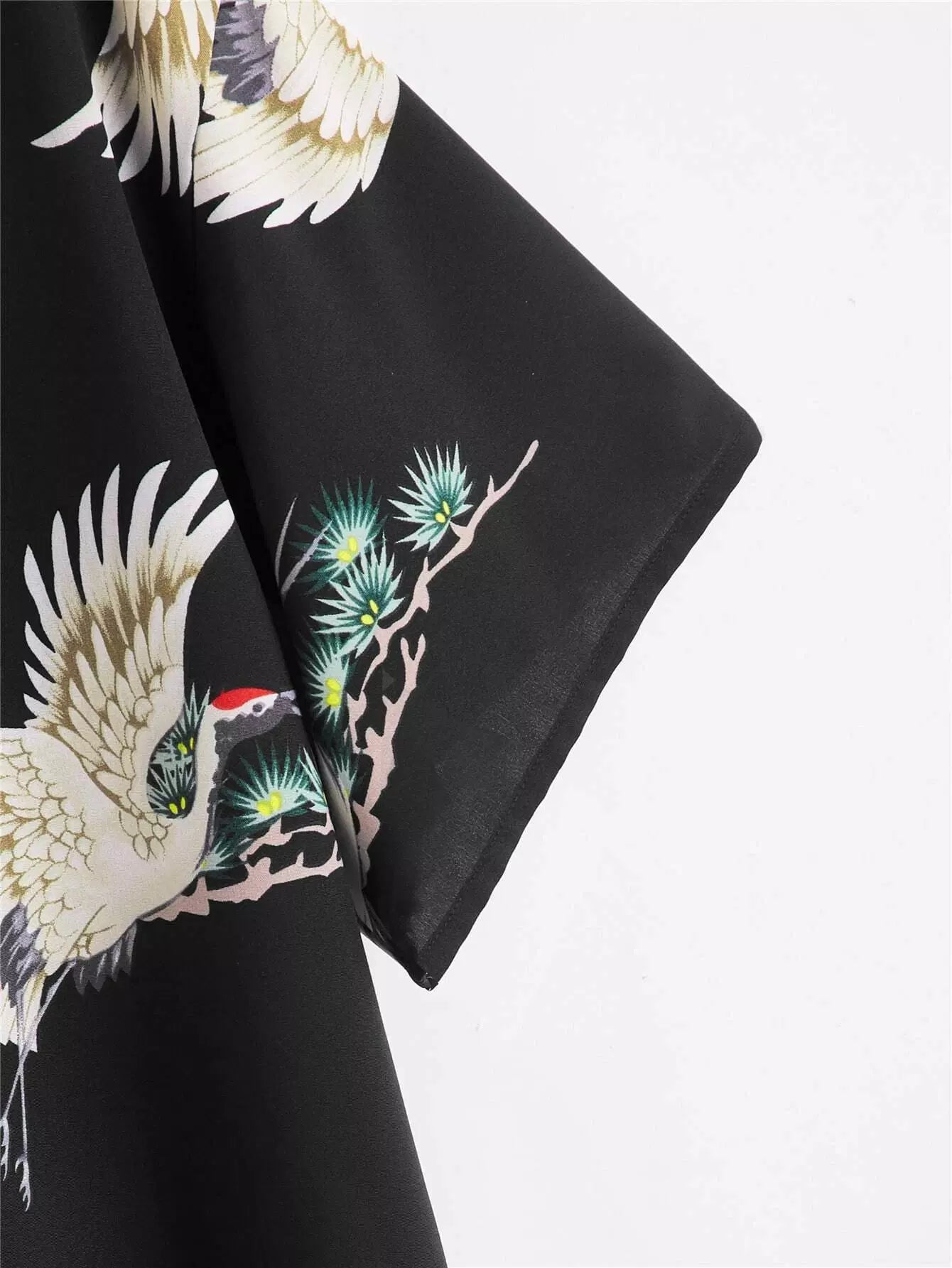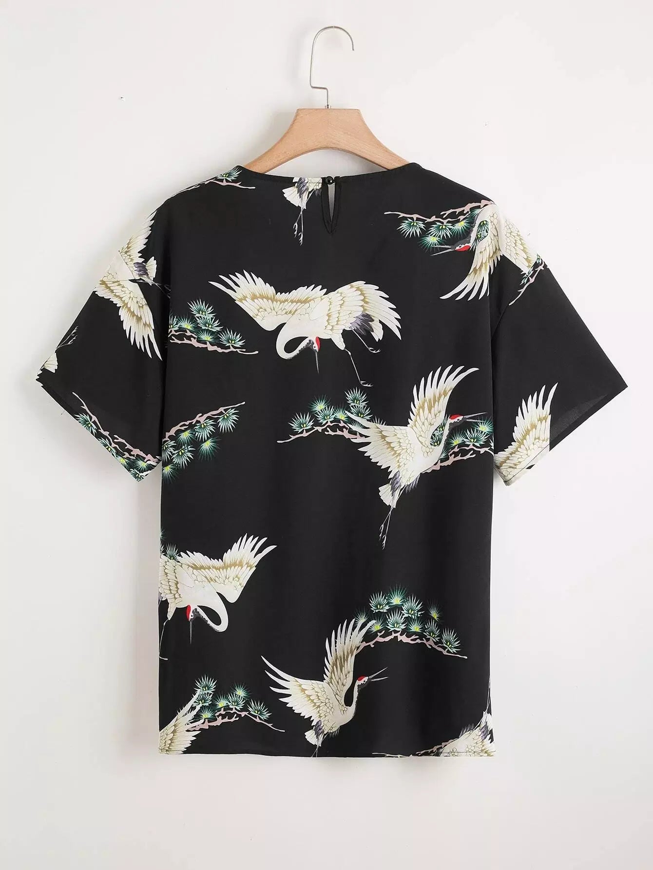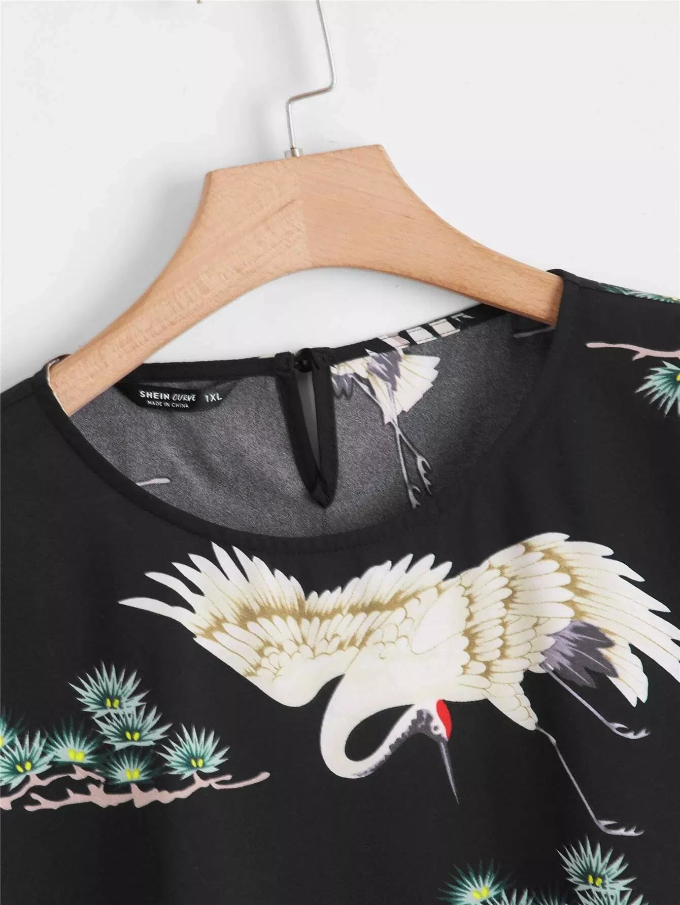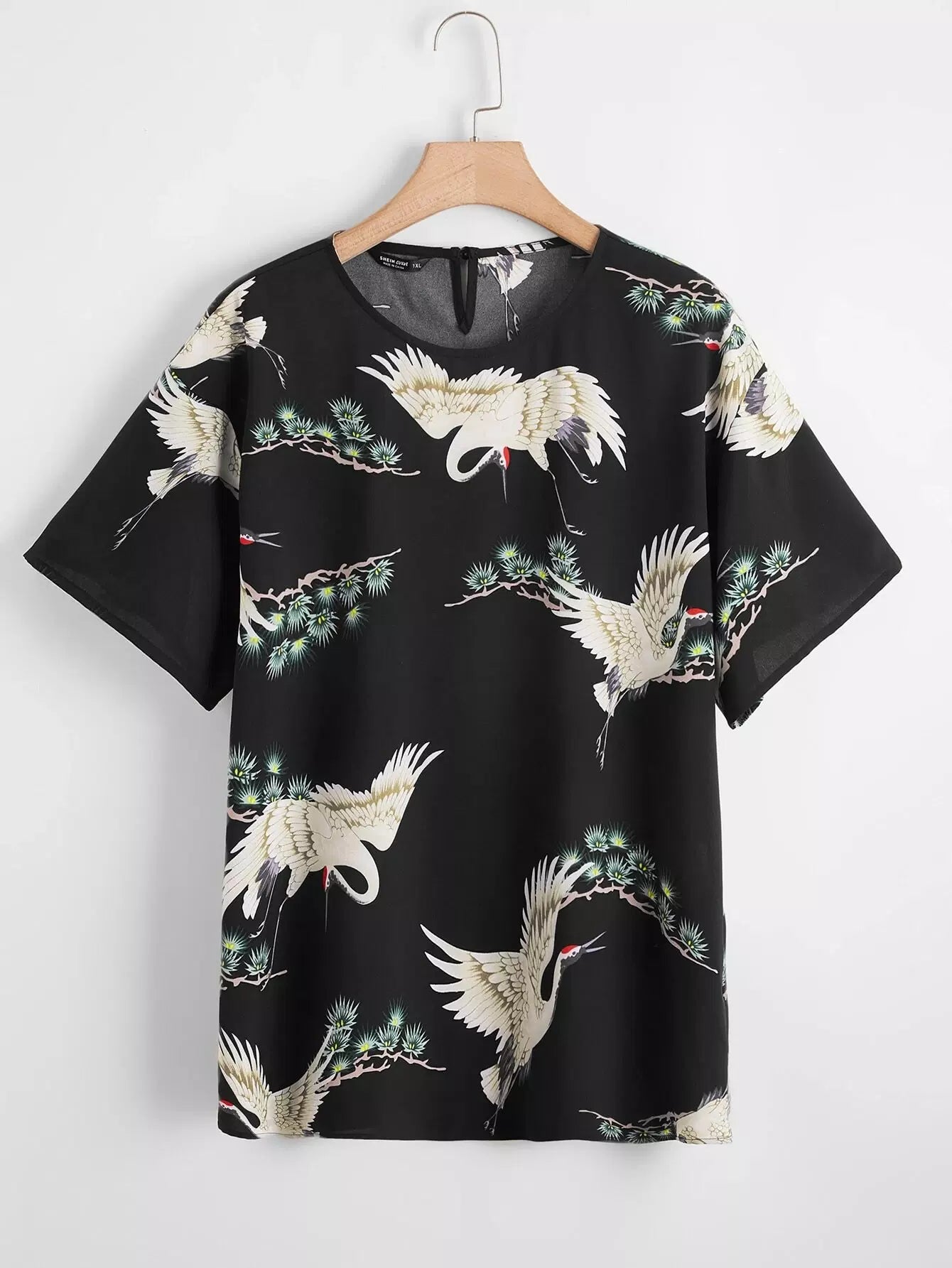 بلوزة بطبعة طيور ونباتات بلس كرين ونباتات