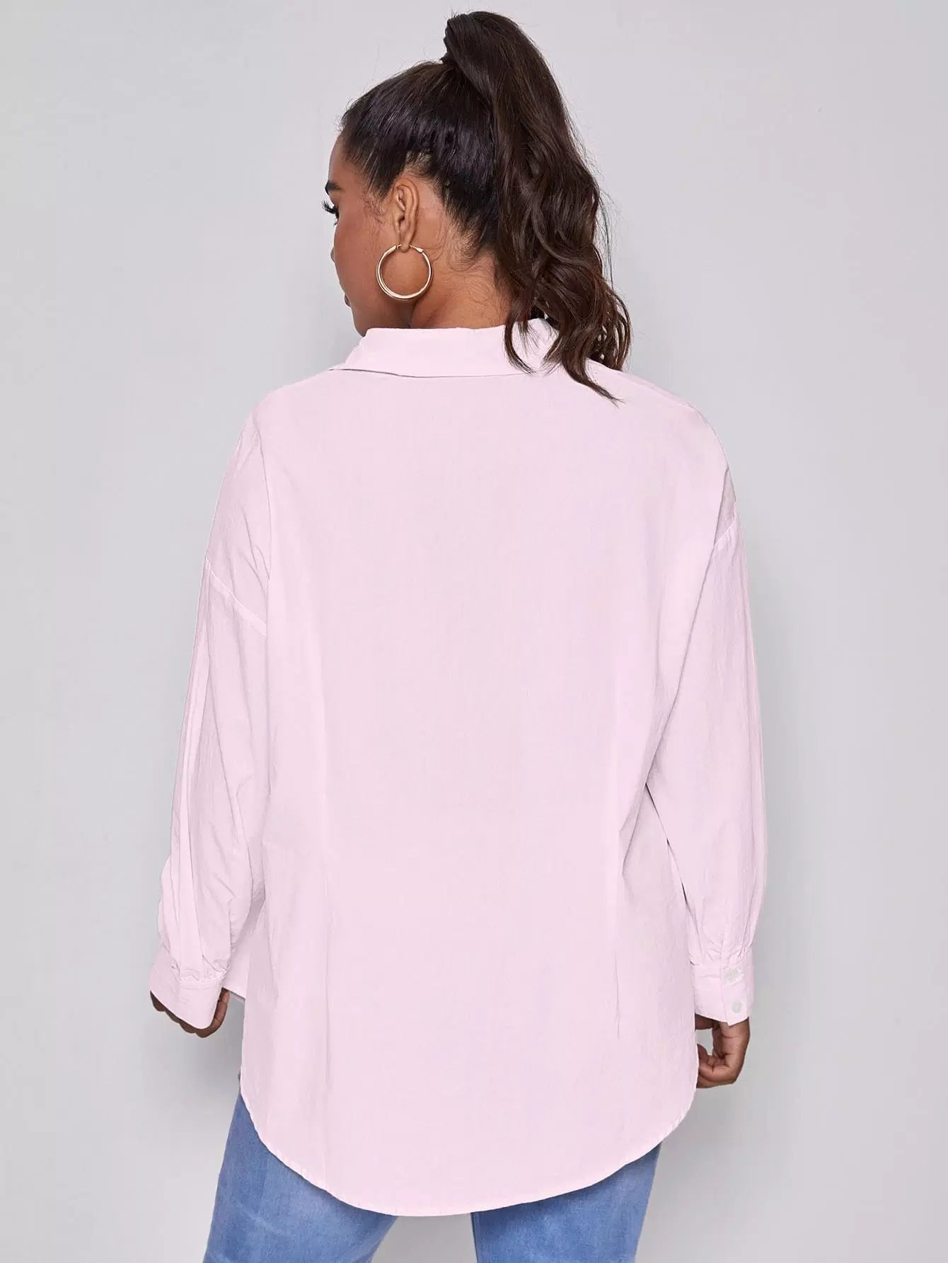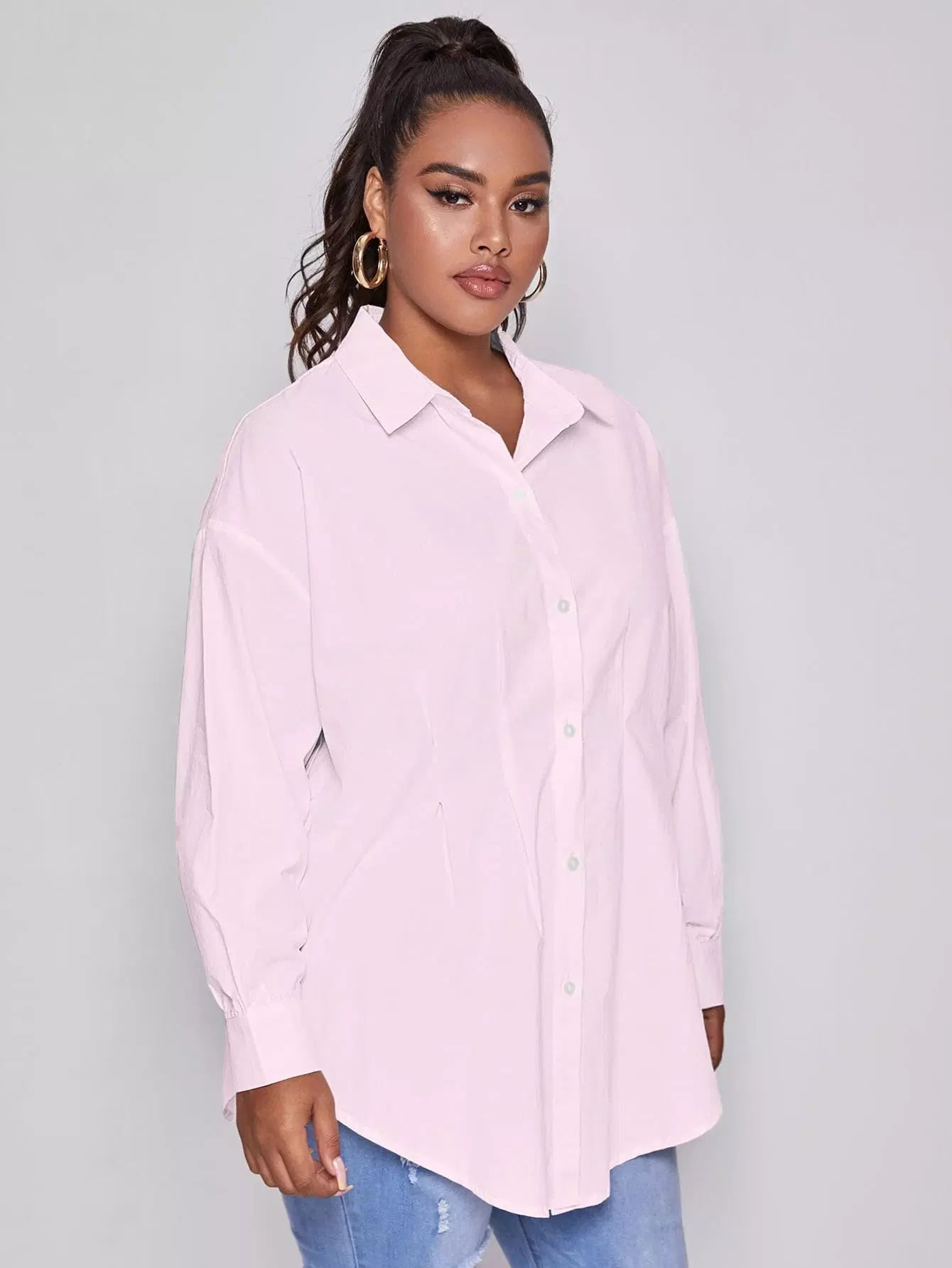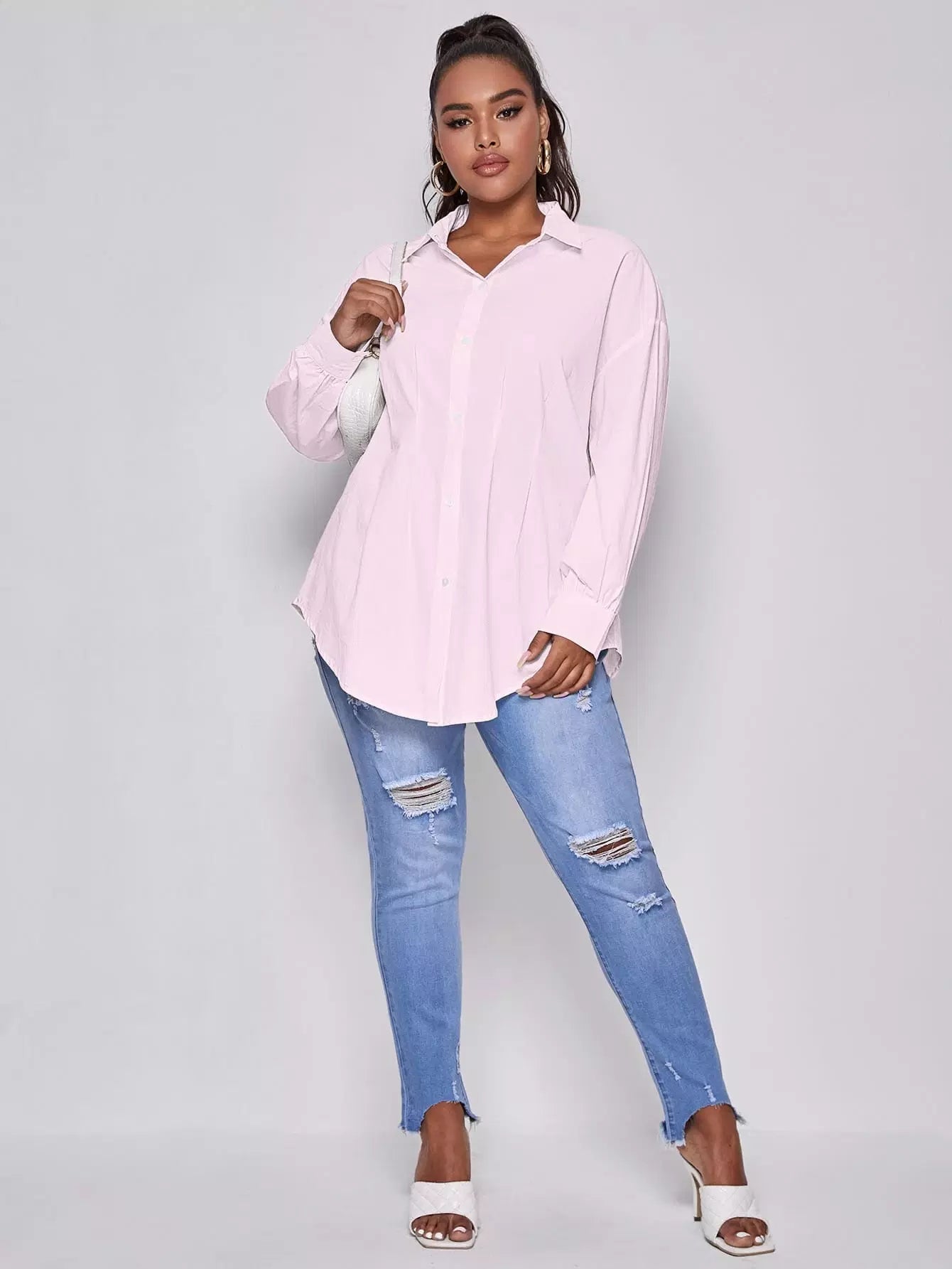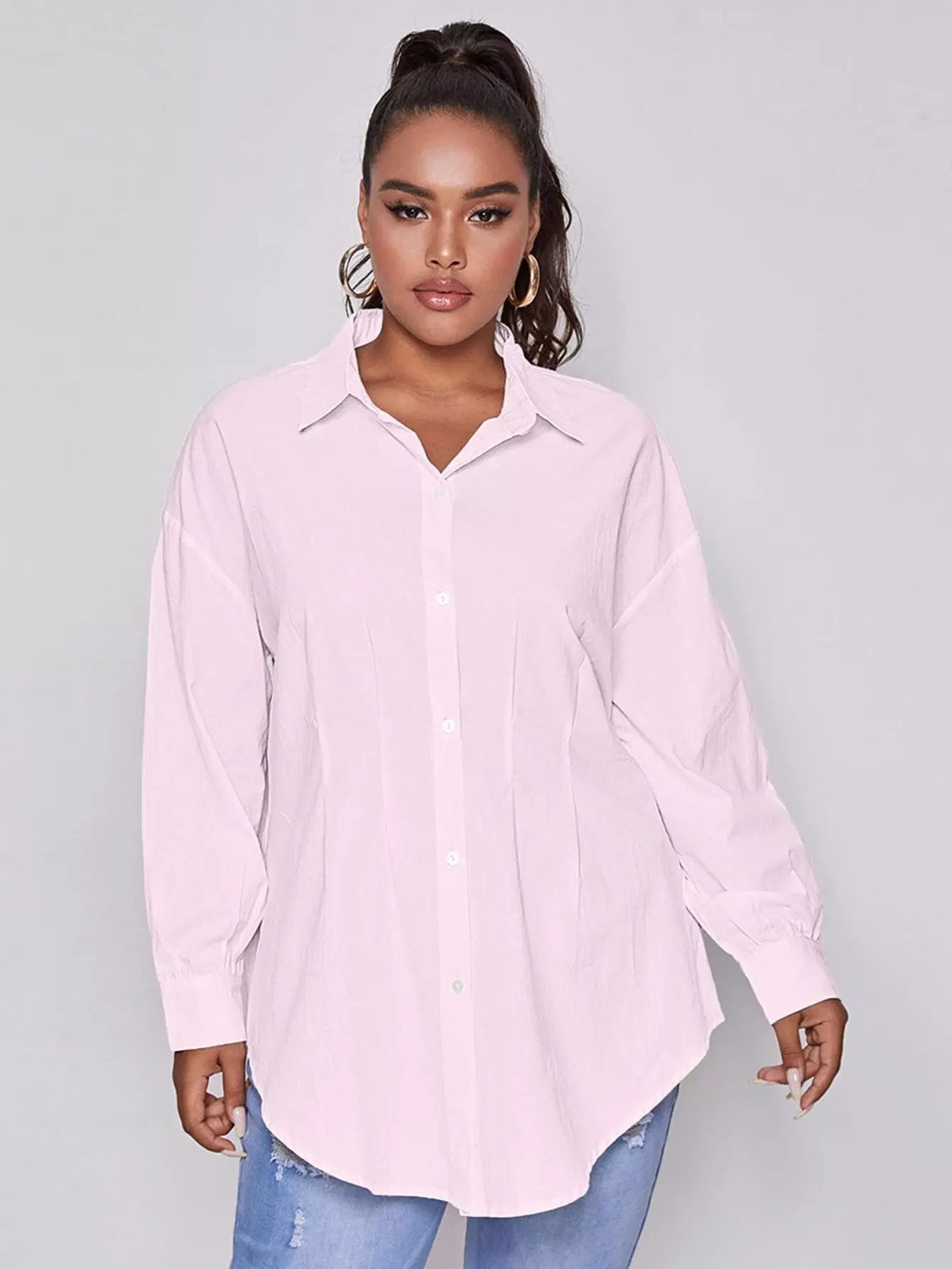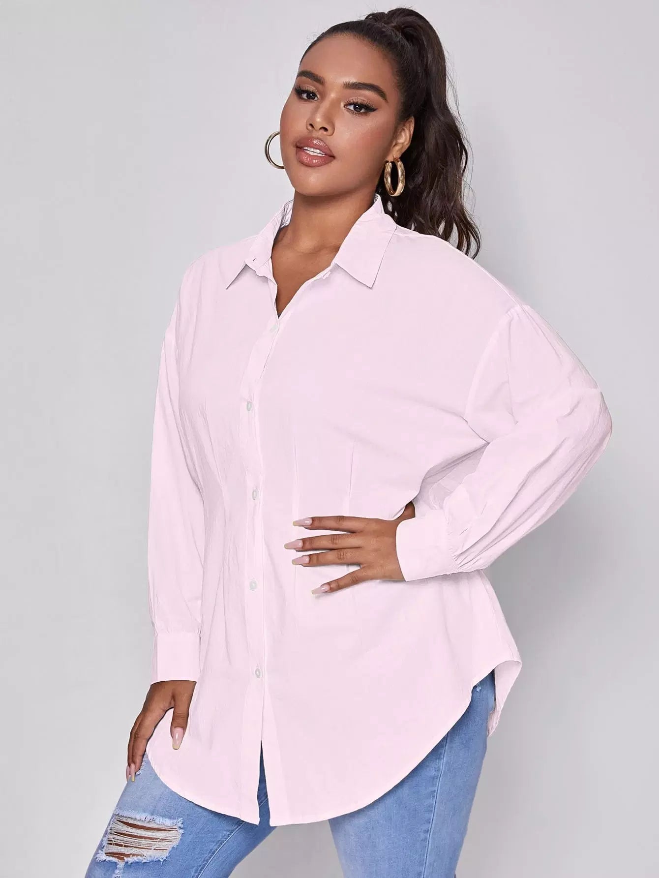 نحيف - مقاس كبير بلوزة طويلة بحاشية منحنية وأكتاف منسدلة