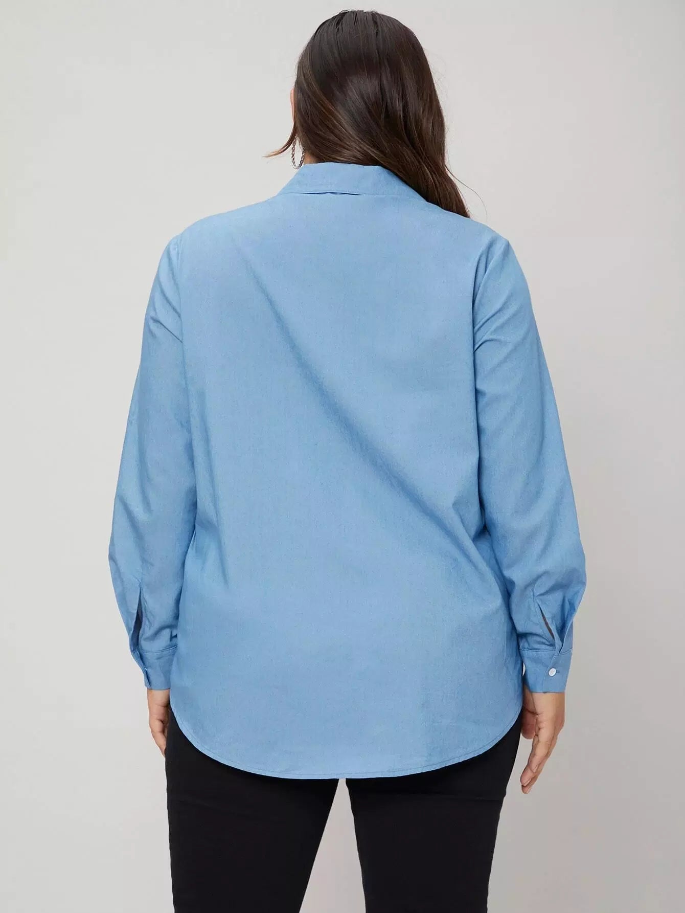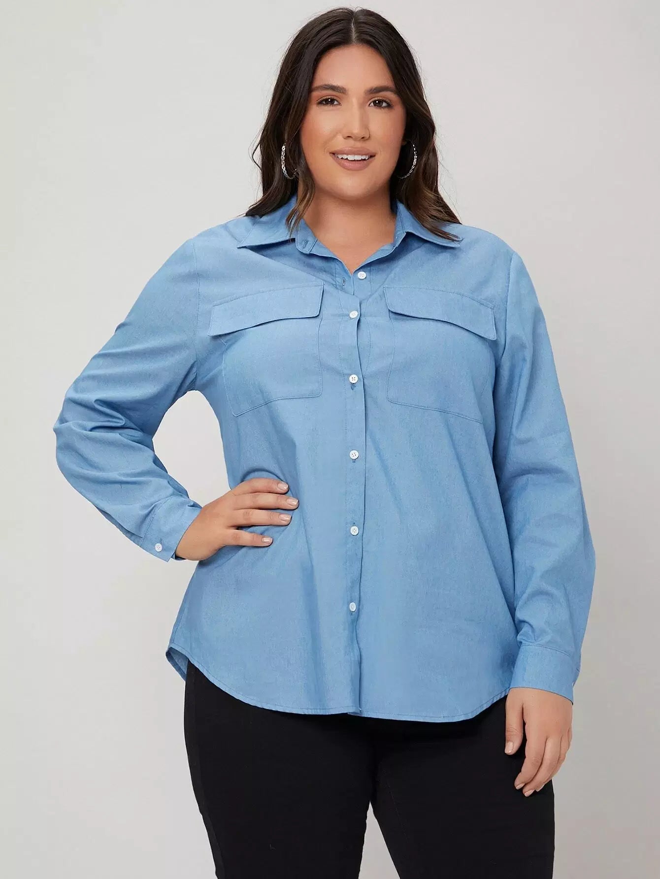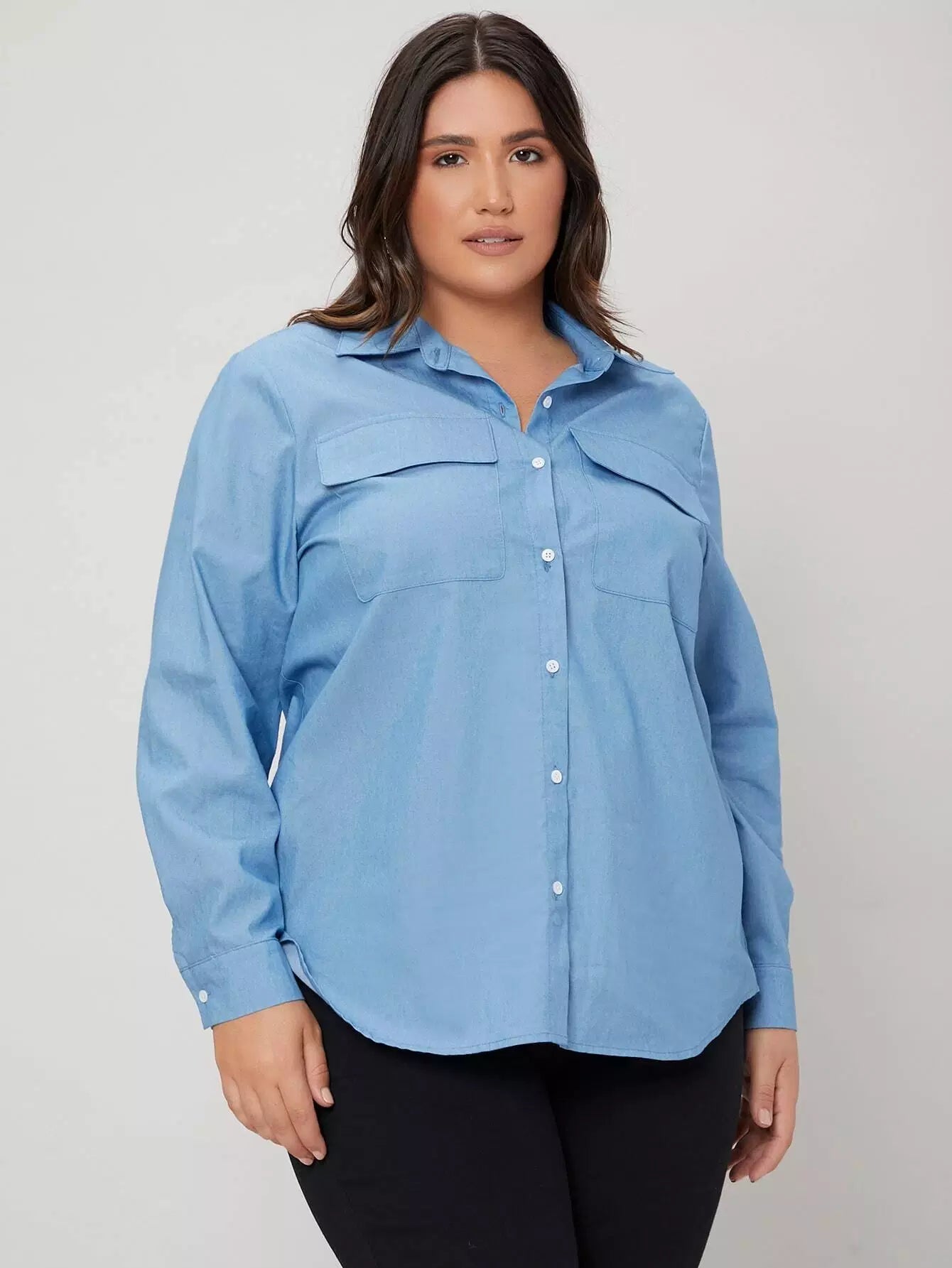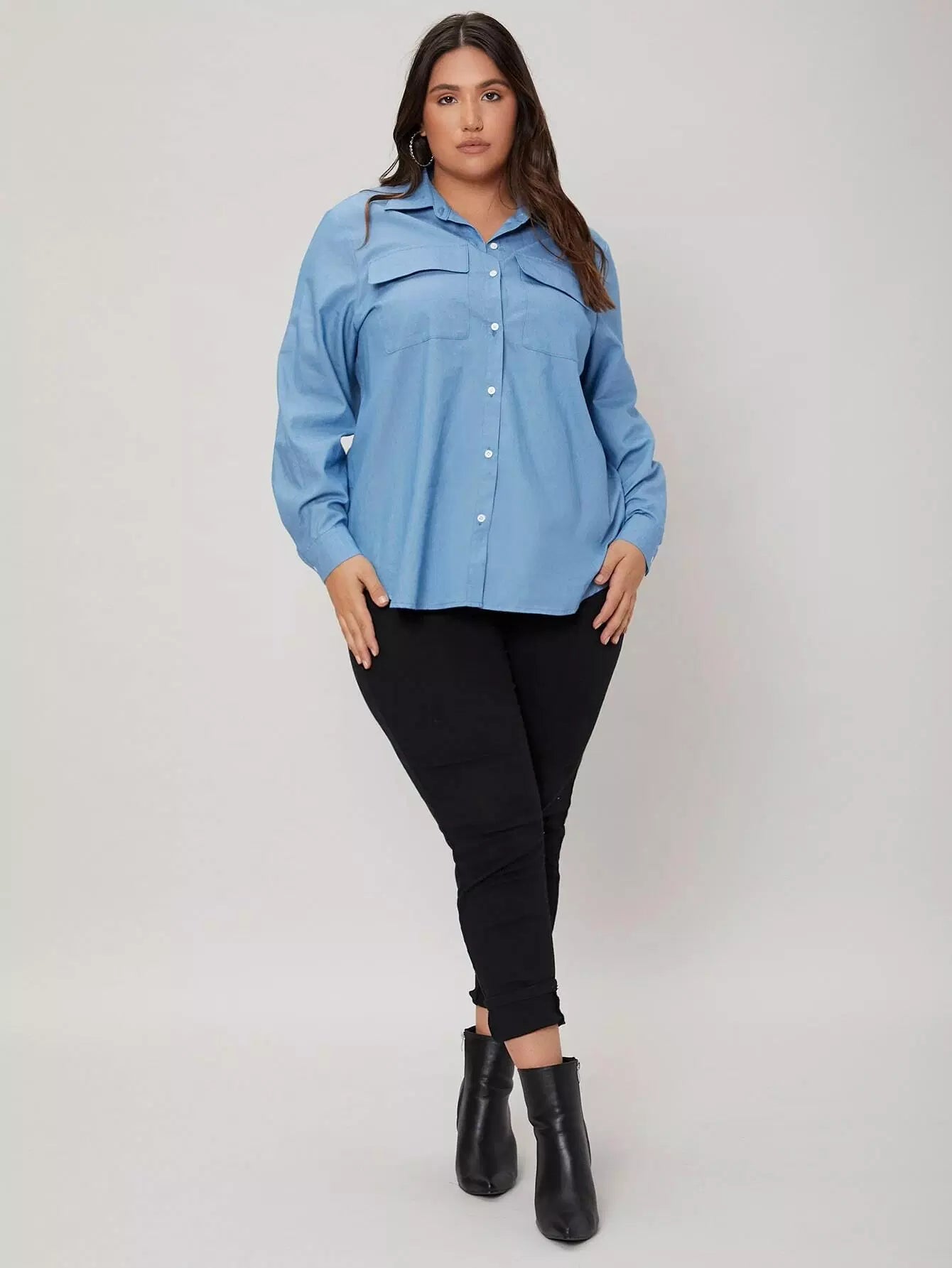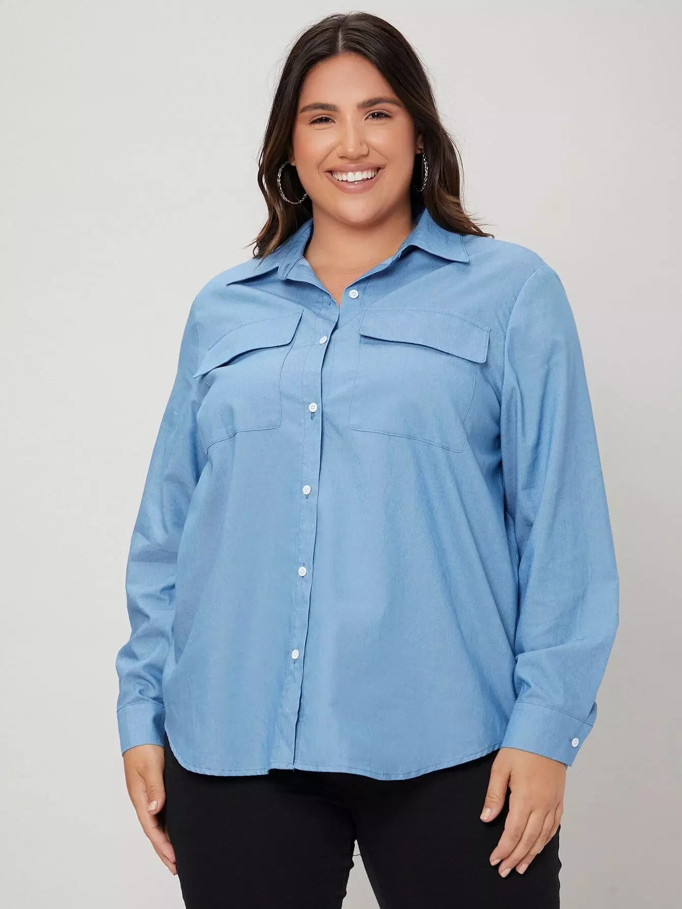 قميص بجيب زائد بغطاء جيب بغطاء زرّ أمامي
