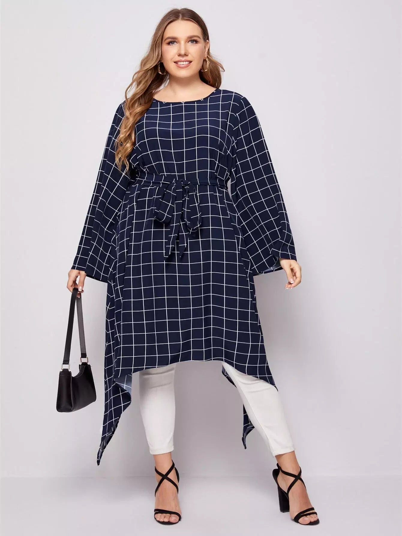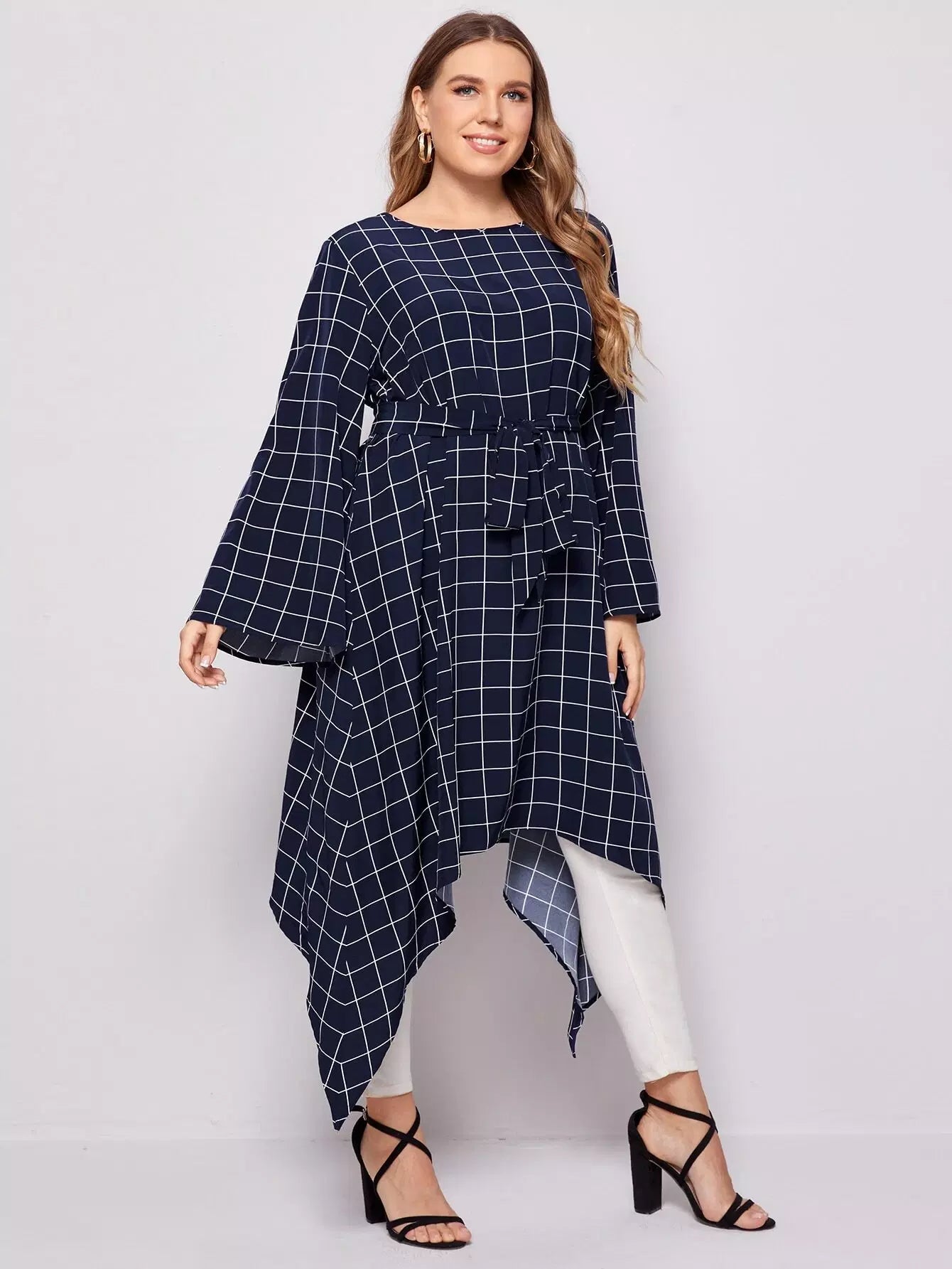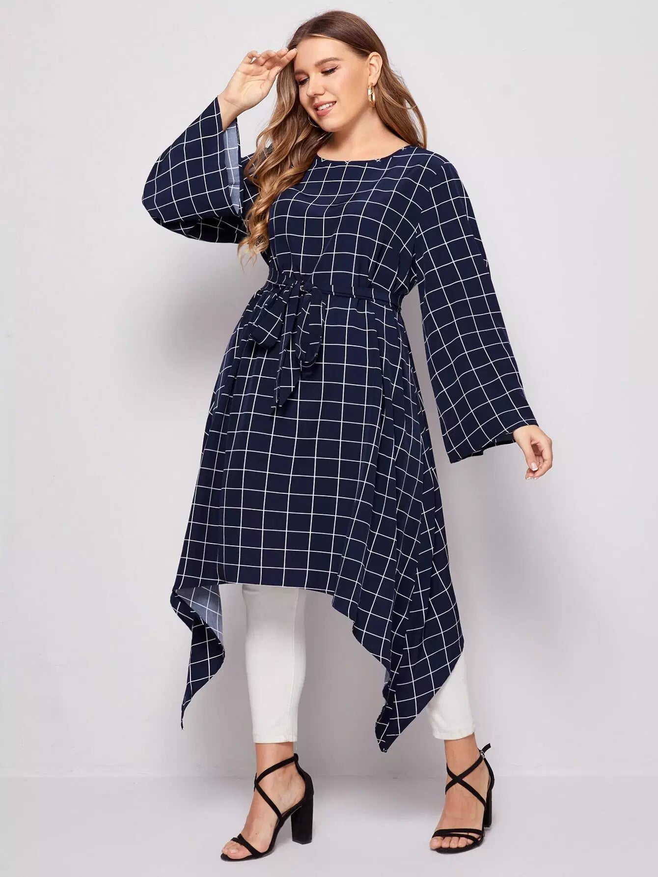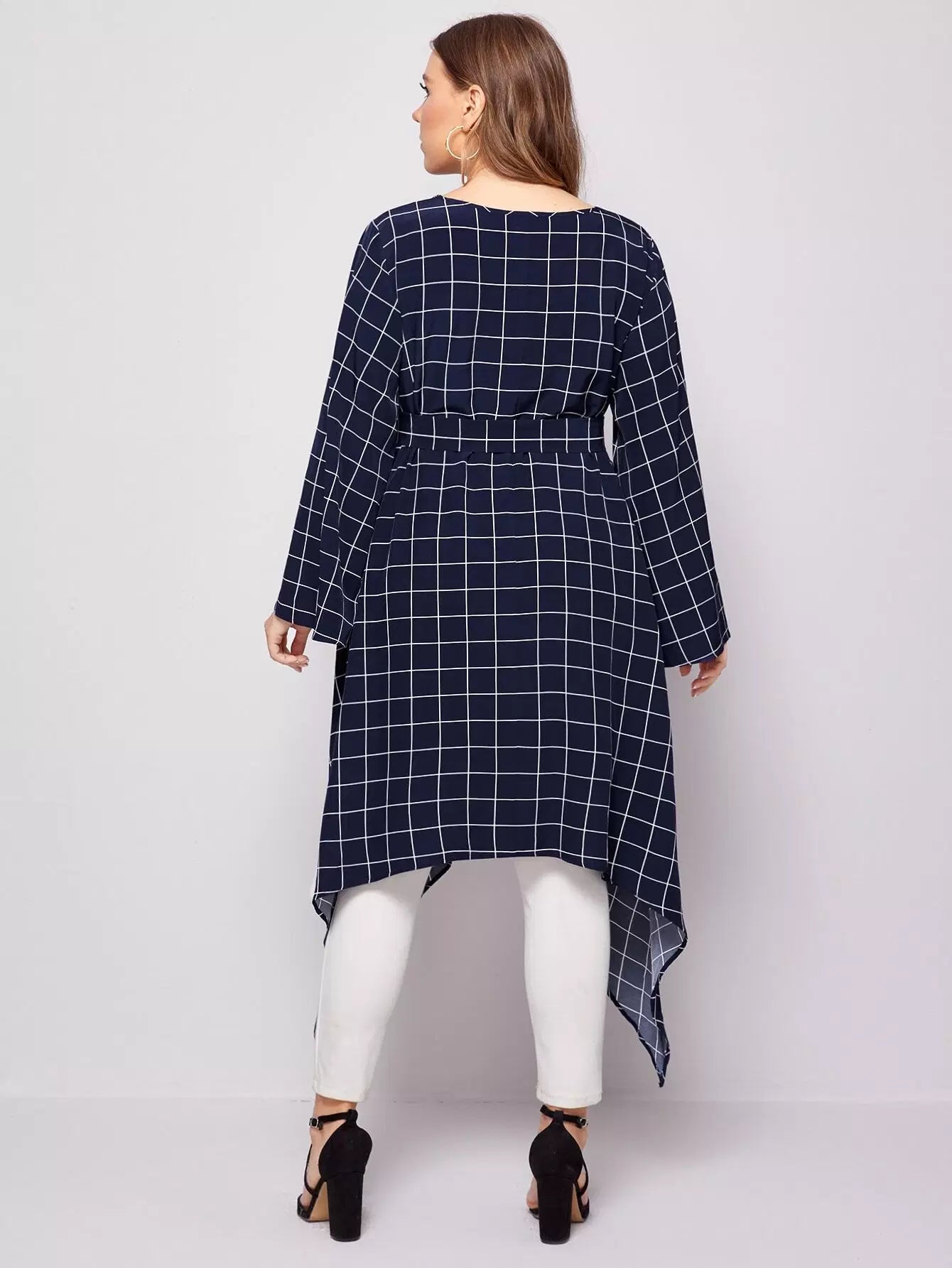 سترة علوية شبكية بأكمام واسعة وحاشية غير متماثلة بدون حزام
