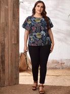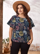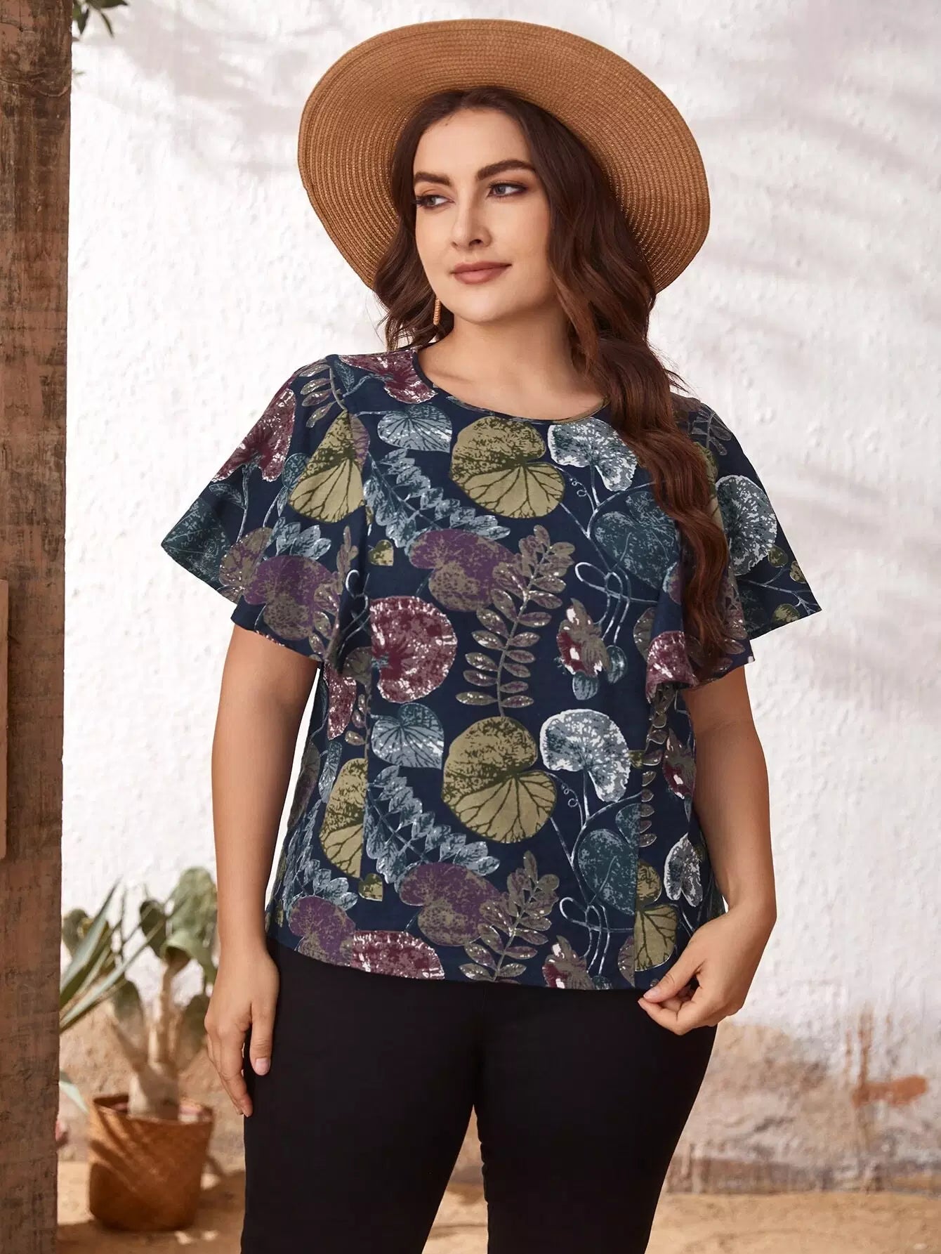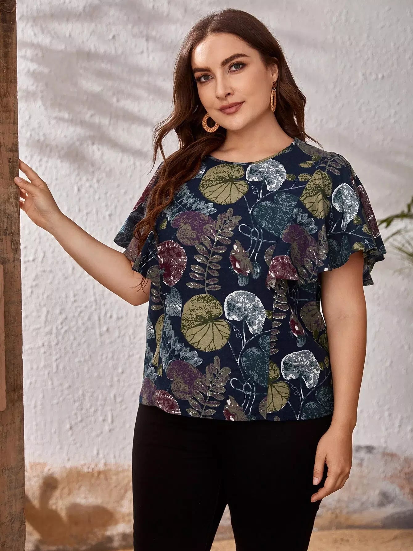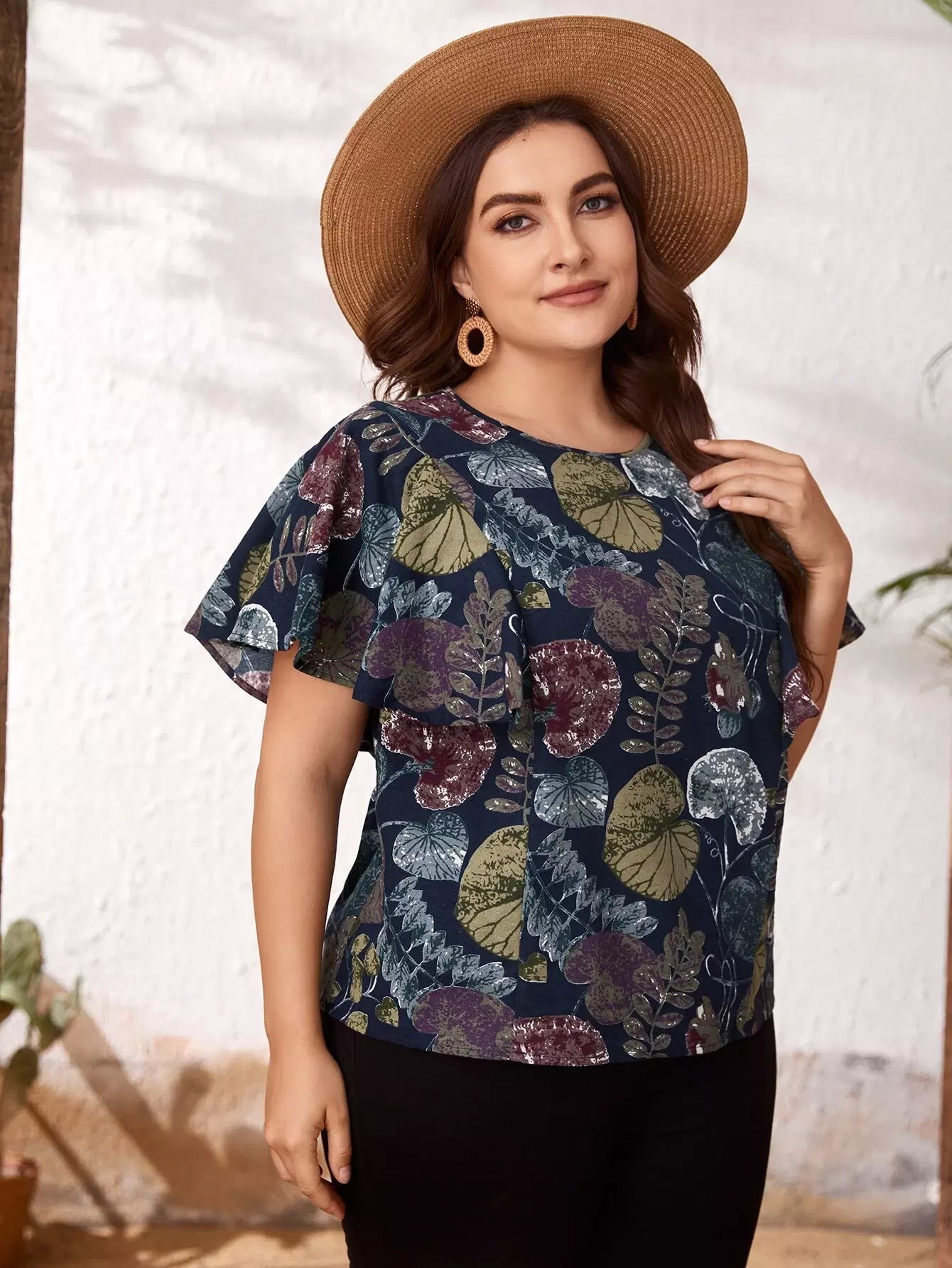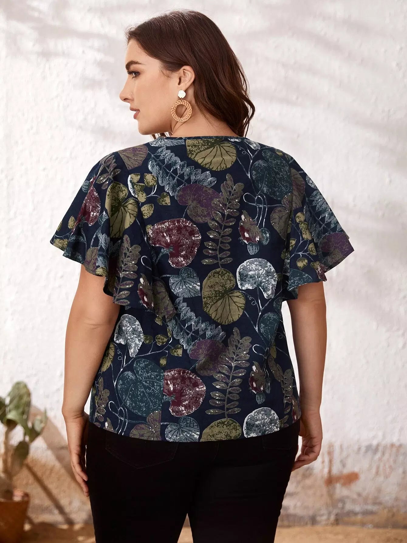 بلوزة بأكمام فلاتر بأكمام رفيعة بطبعة نباتية