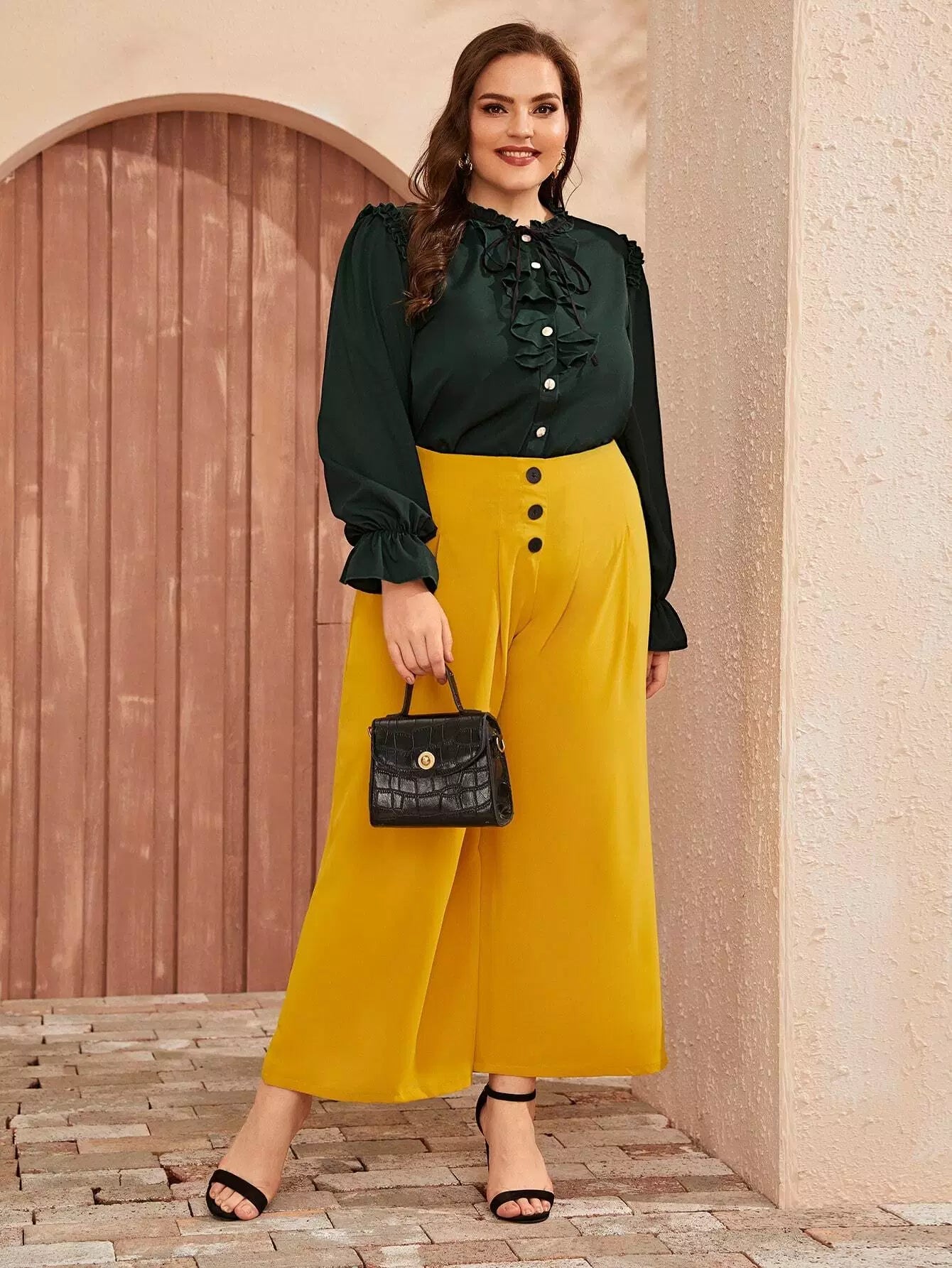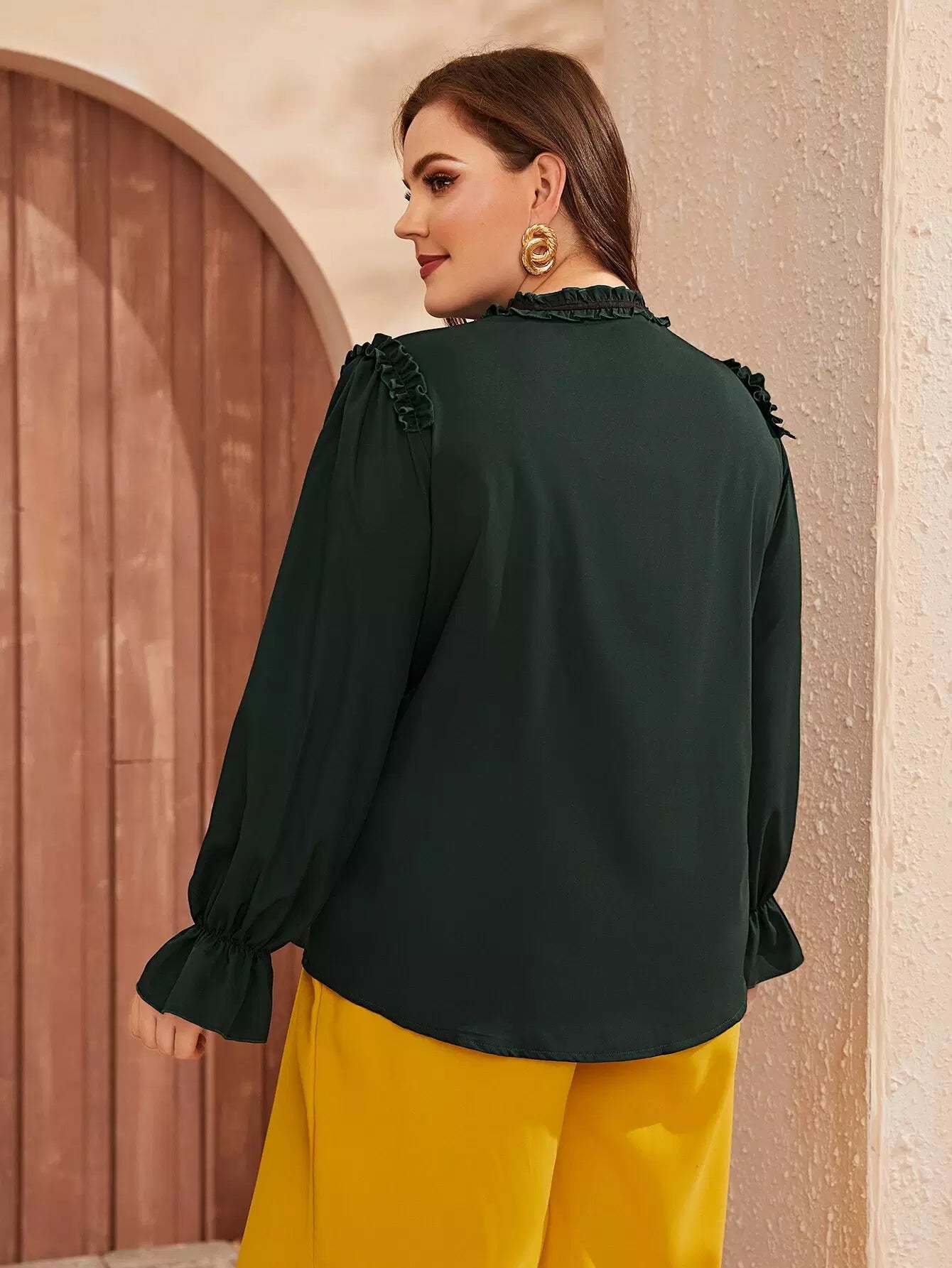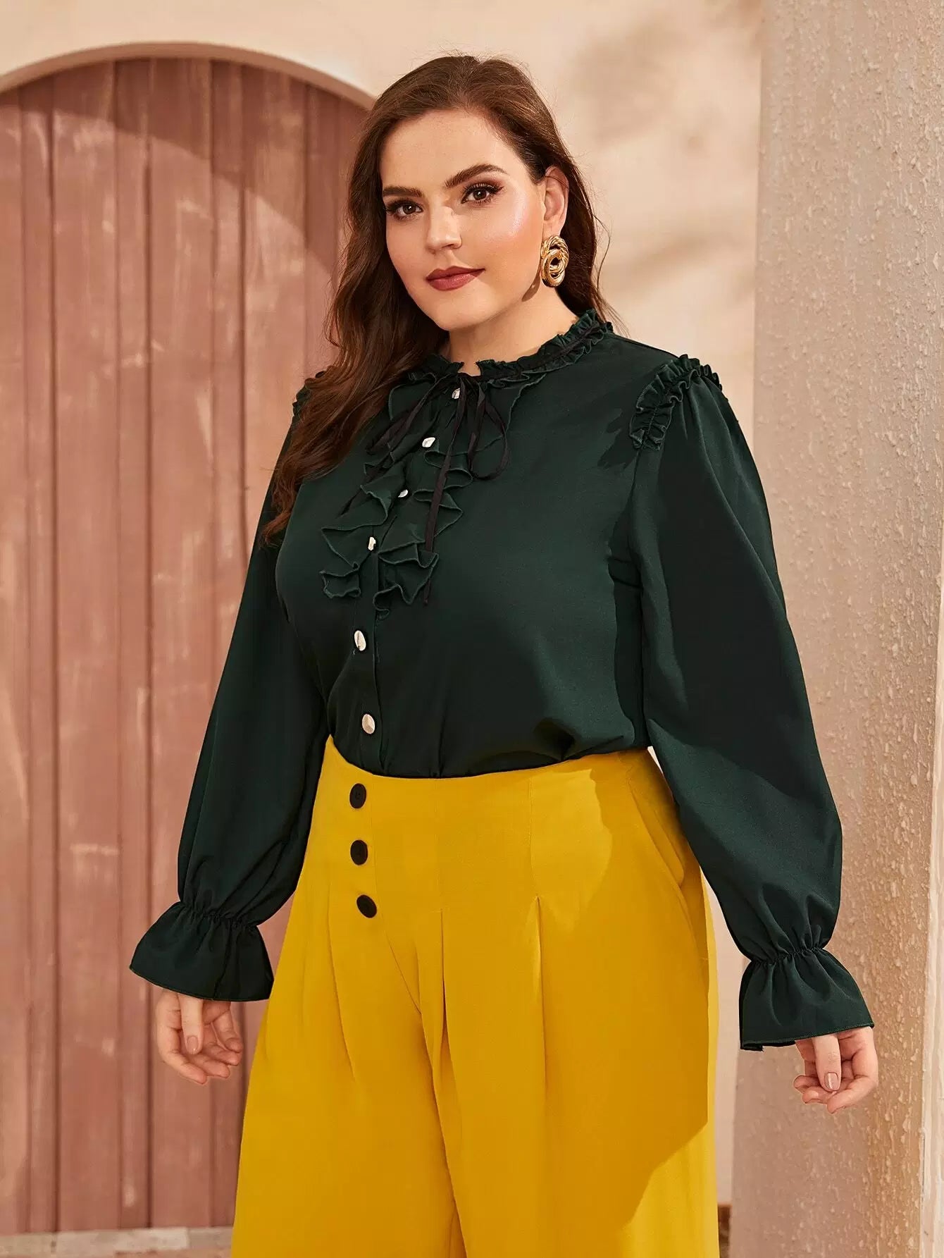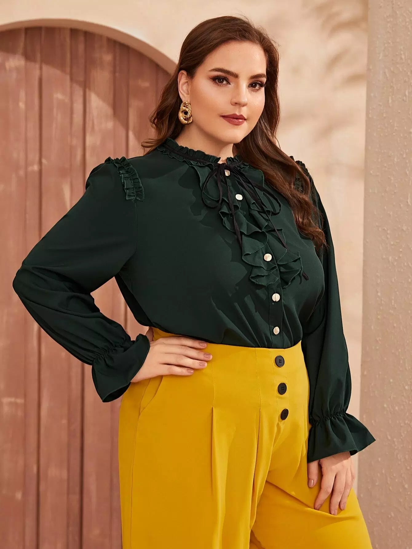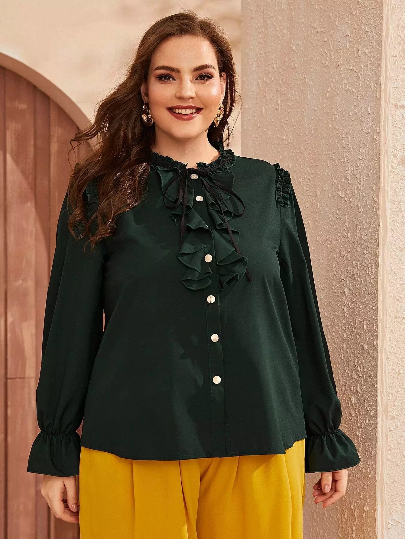 نحيف - مقاس كبير بلوزة بعقدة وزخرفة مكشكشة
