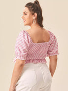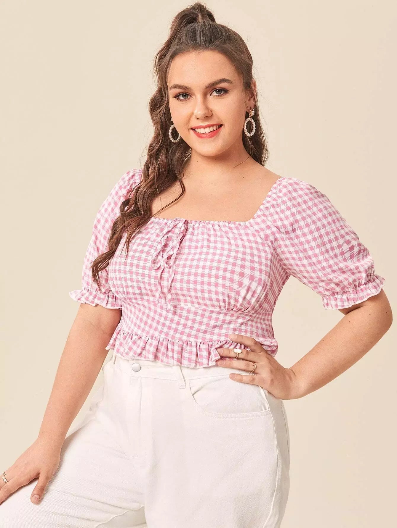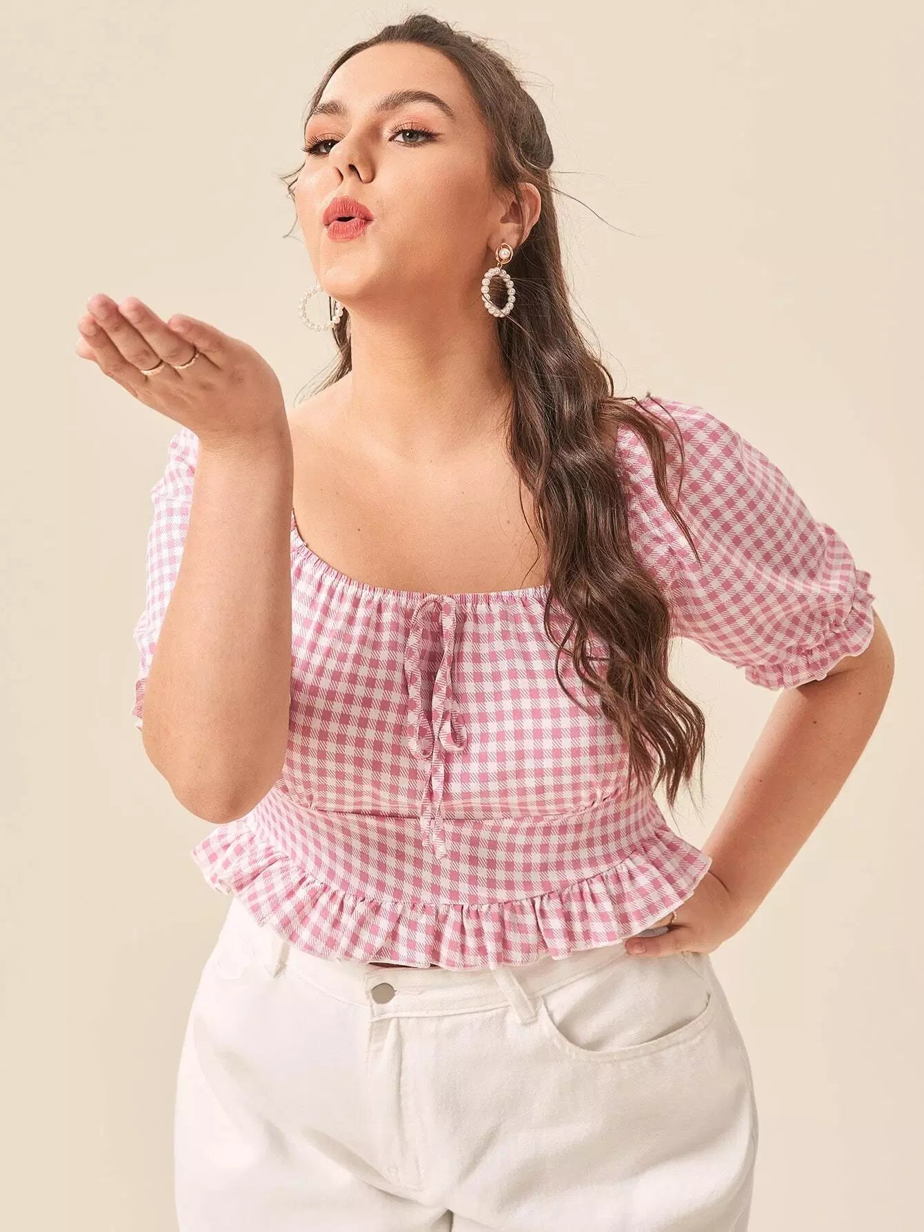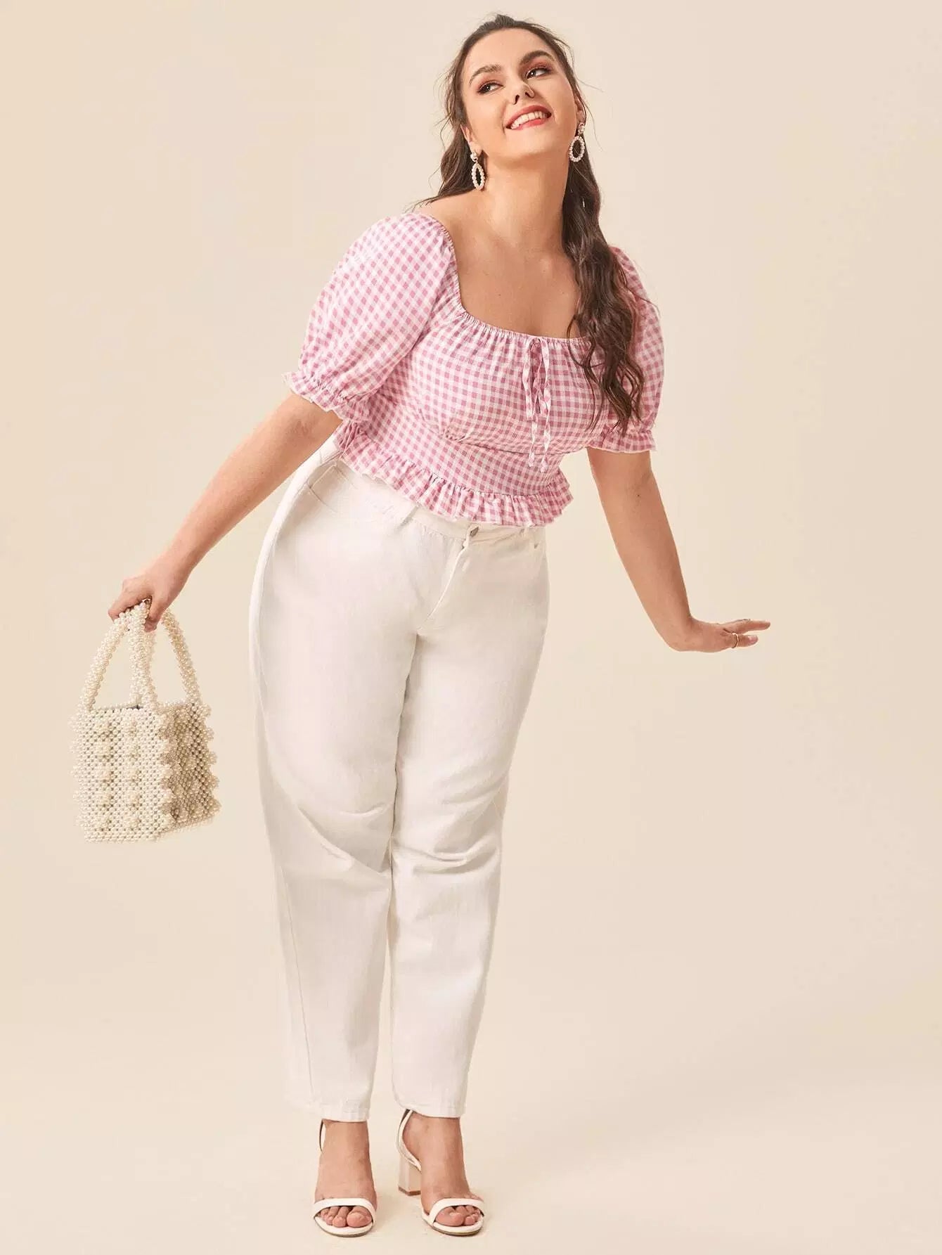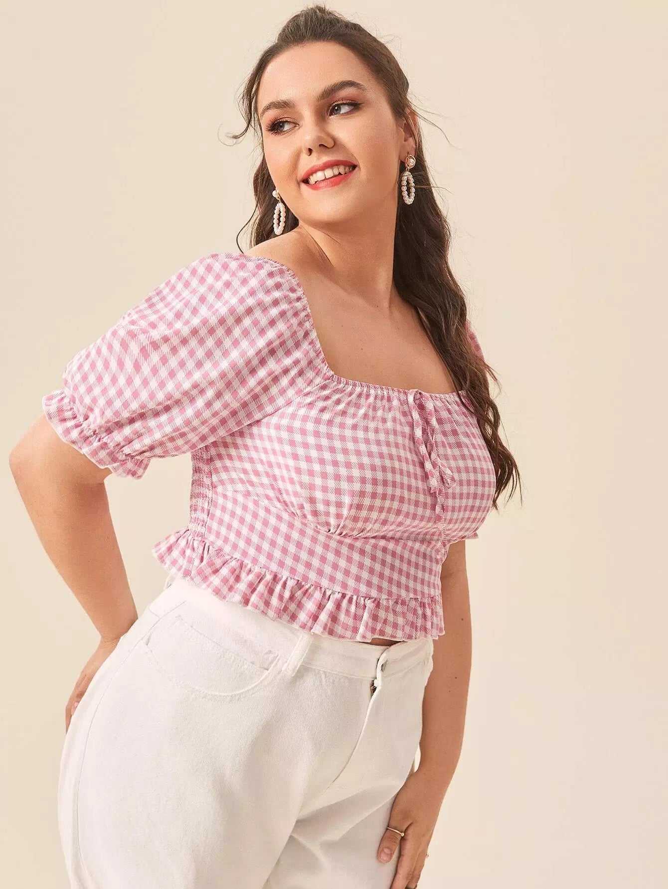 بلوزة بأكمام منفوشة مكشكشة من القماش القطني الزائد