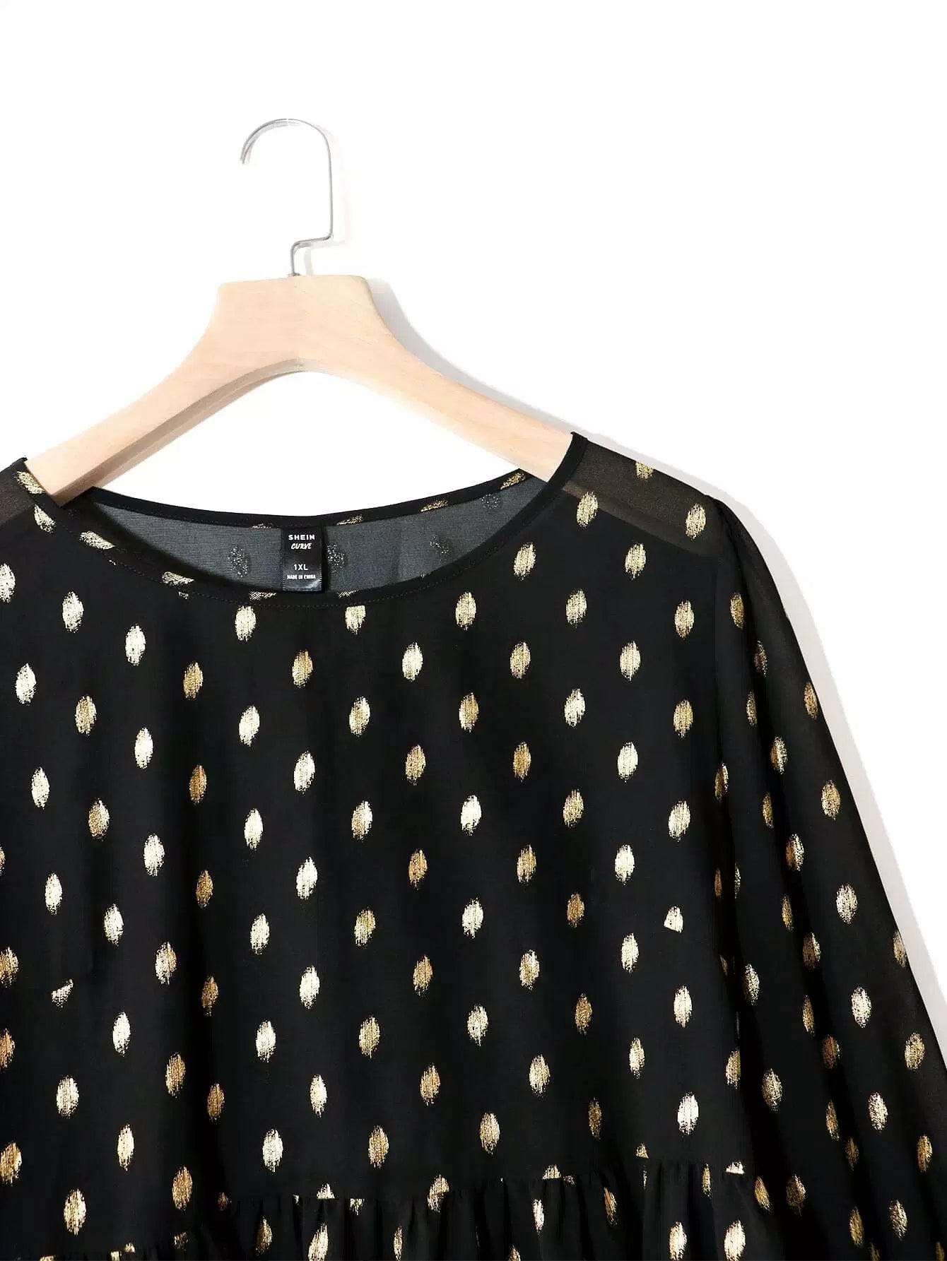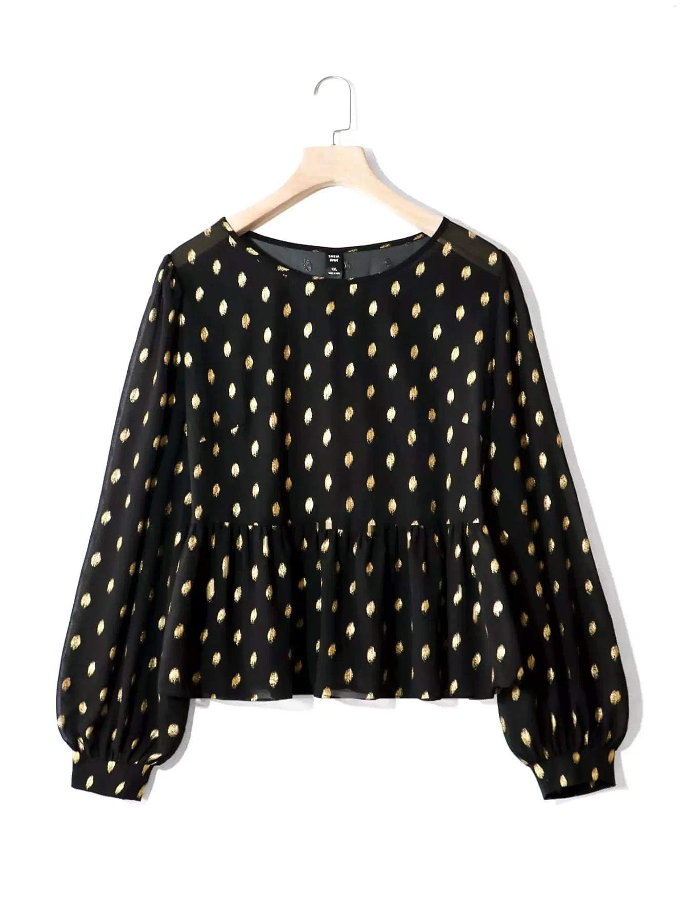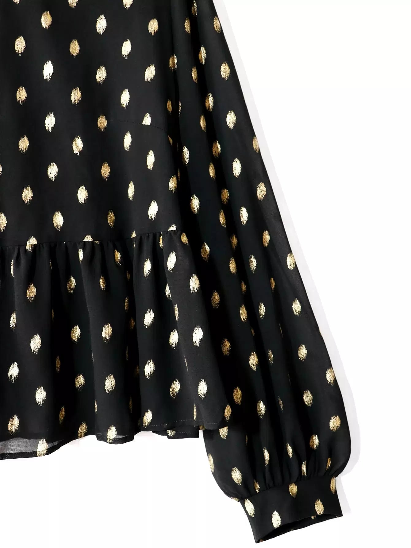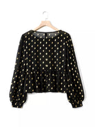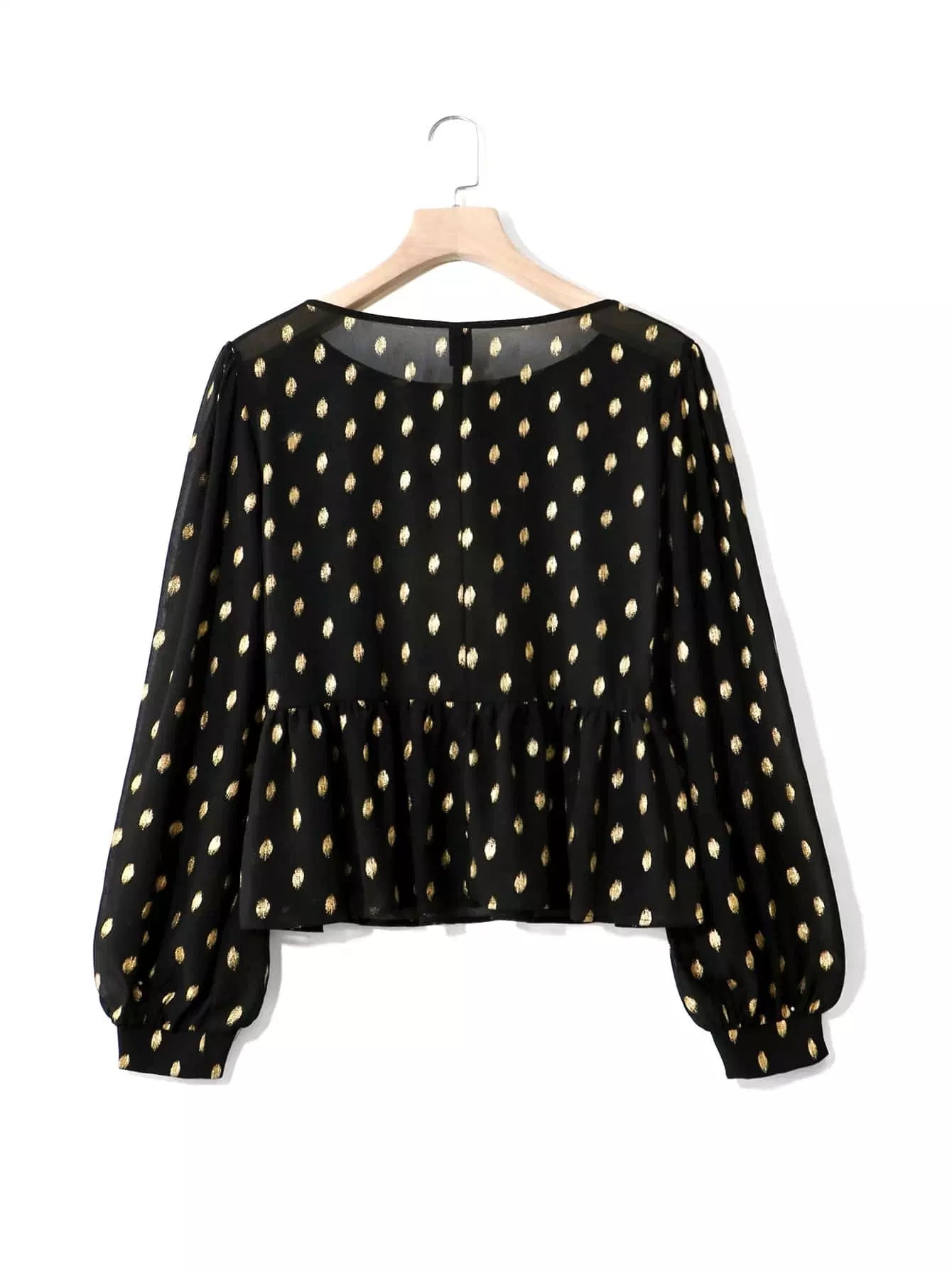 بلوزة شيفون بأكمام من الشيفون بطبعة نقاط ذهبية زائد وأكمام فانوسية