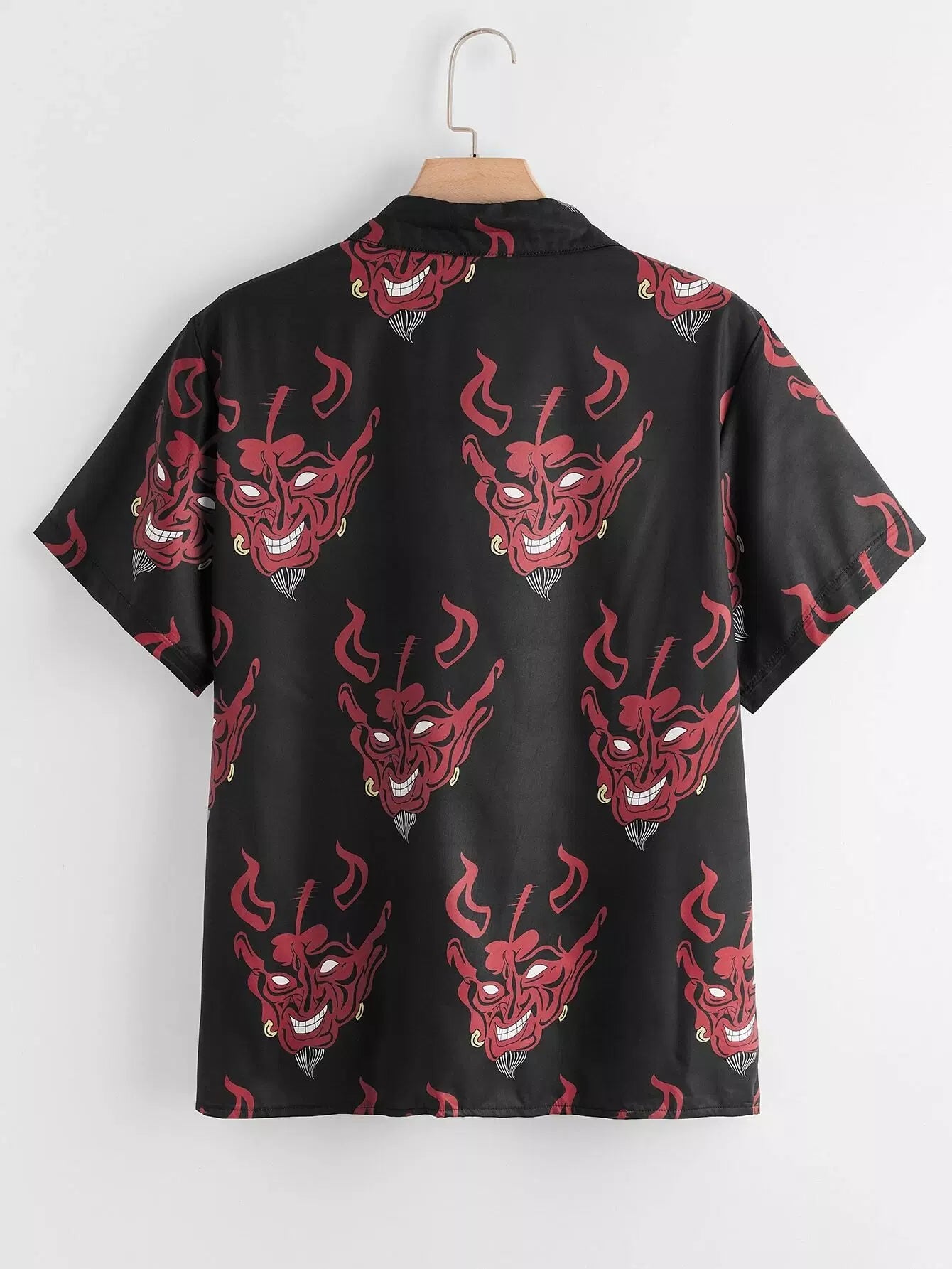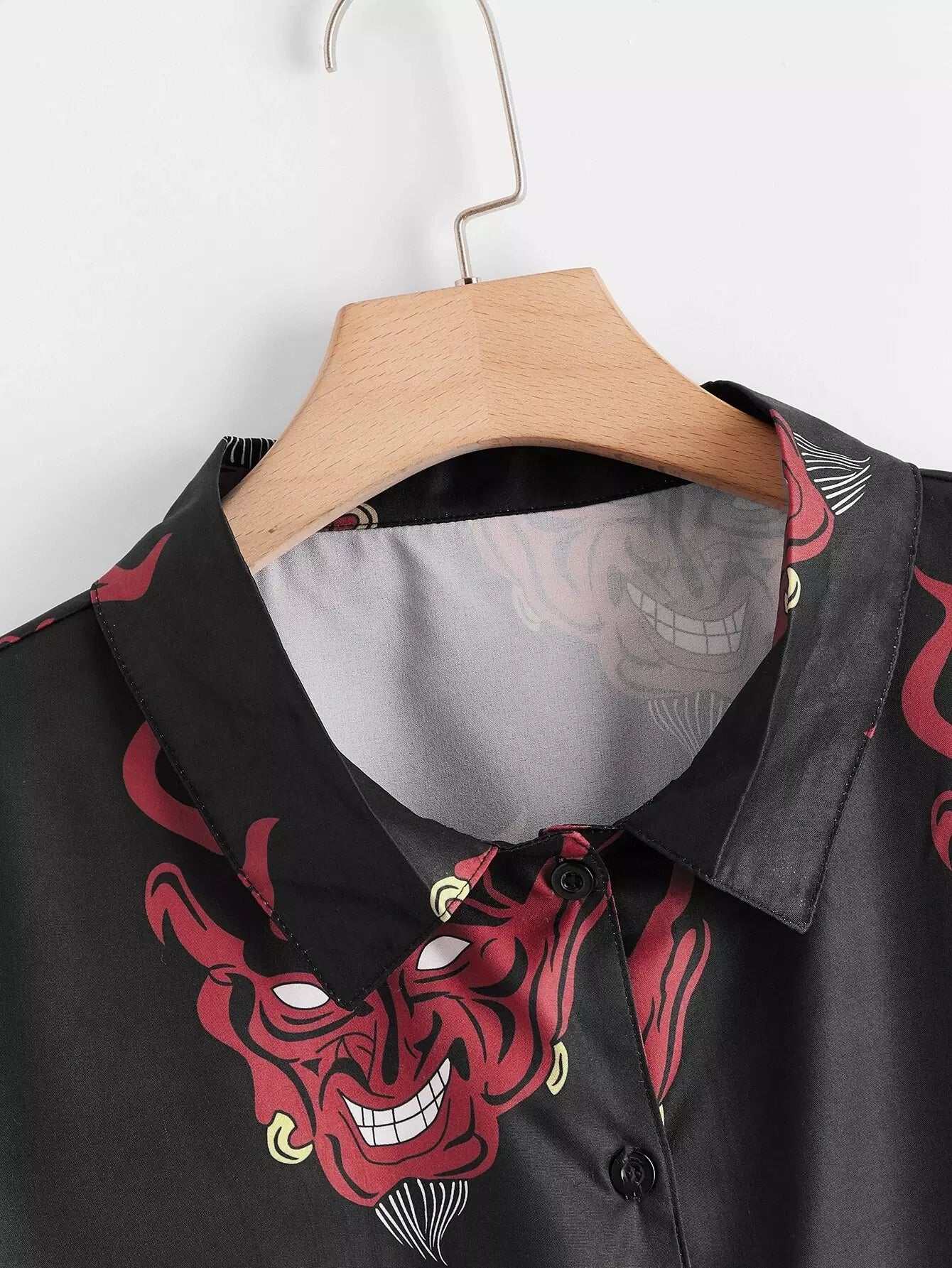 نحيف - مقاس كبير قميص بأزرار وطبعات جرافيك