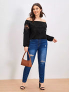 بلوزة باردو باردو من الدانتيل المخرّم المخرّم بلس بلس
