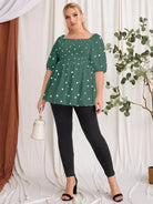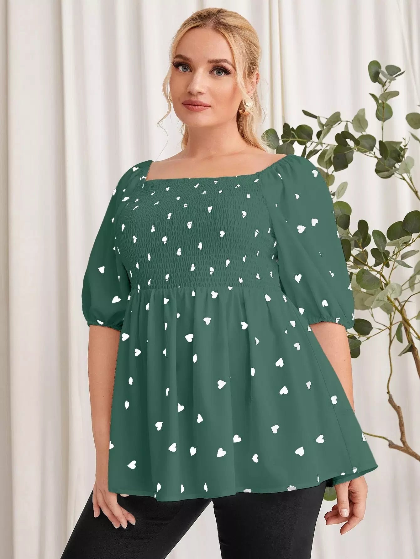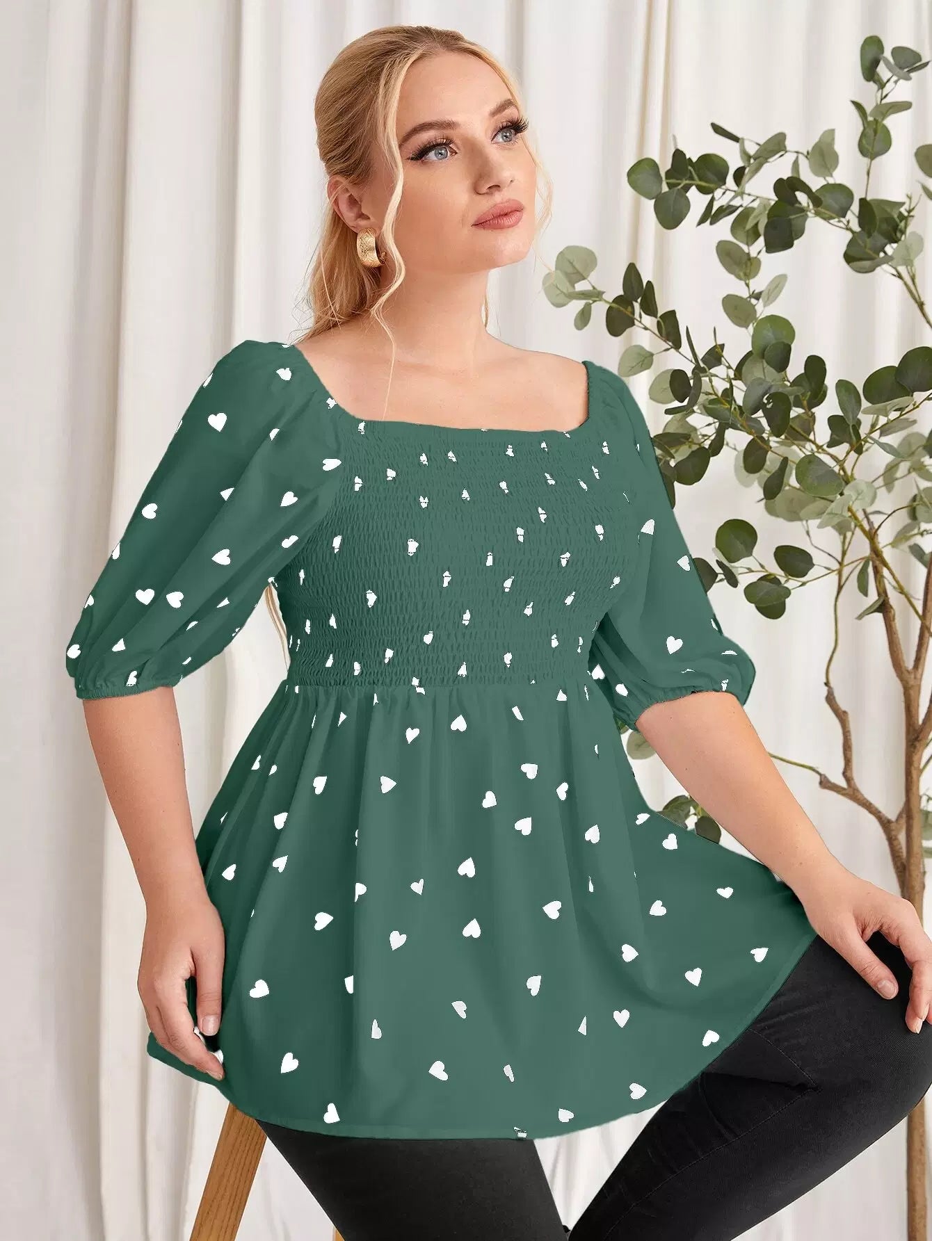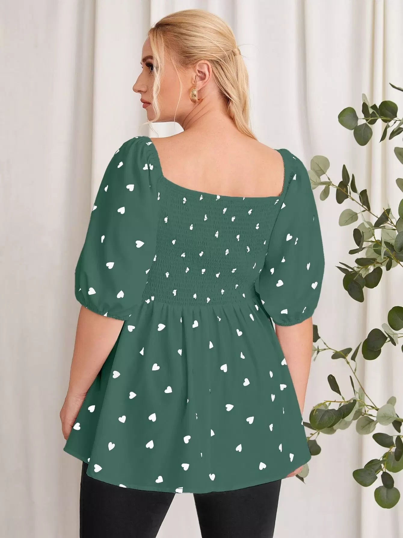 بلوزة بأكمام منفوشة بأكمام منفوشة بطبعة قلب زائد وشيرد حليبي