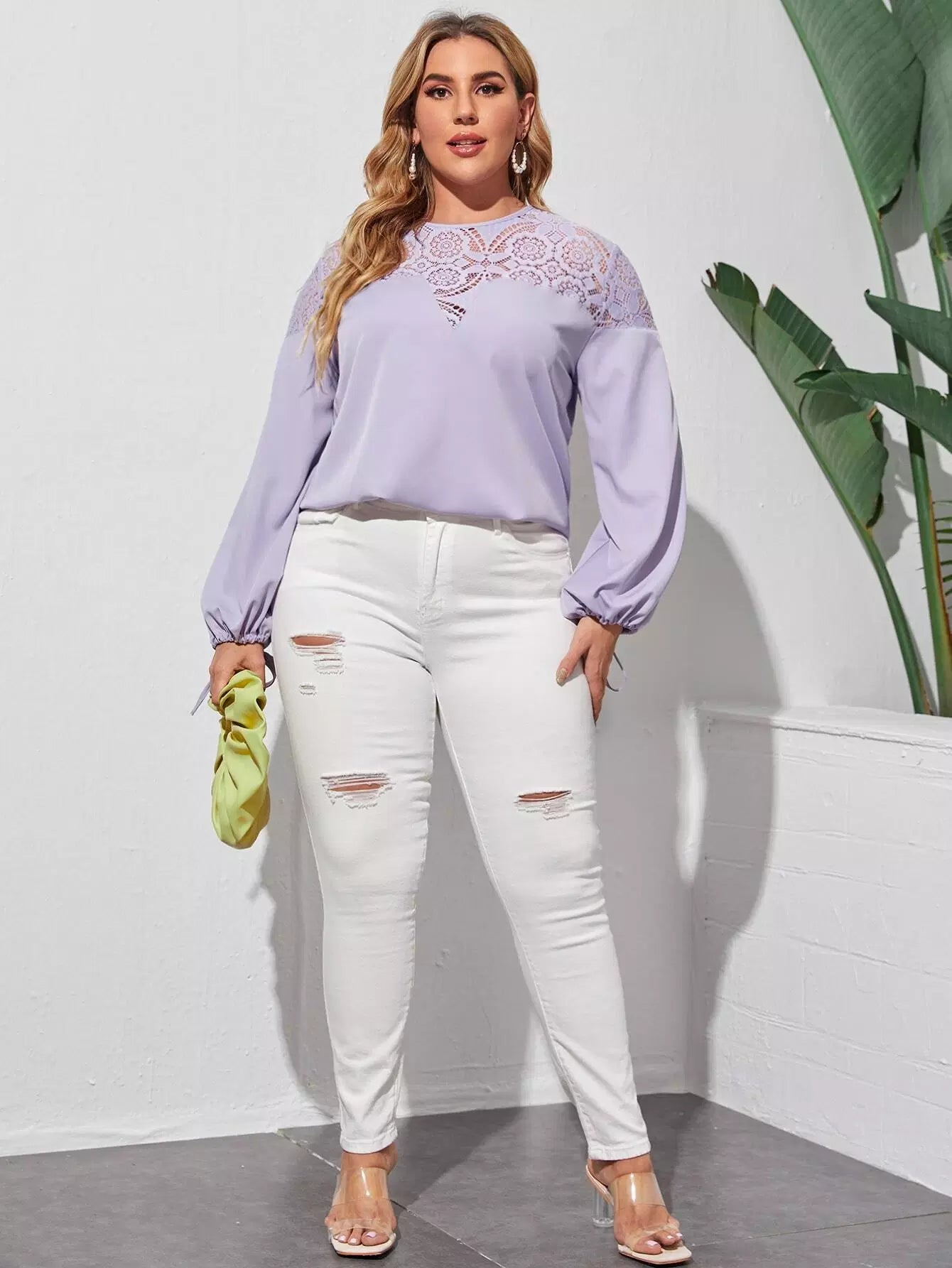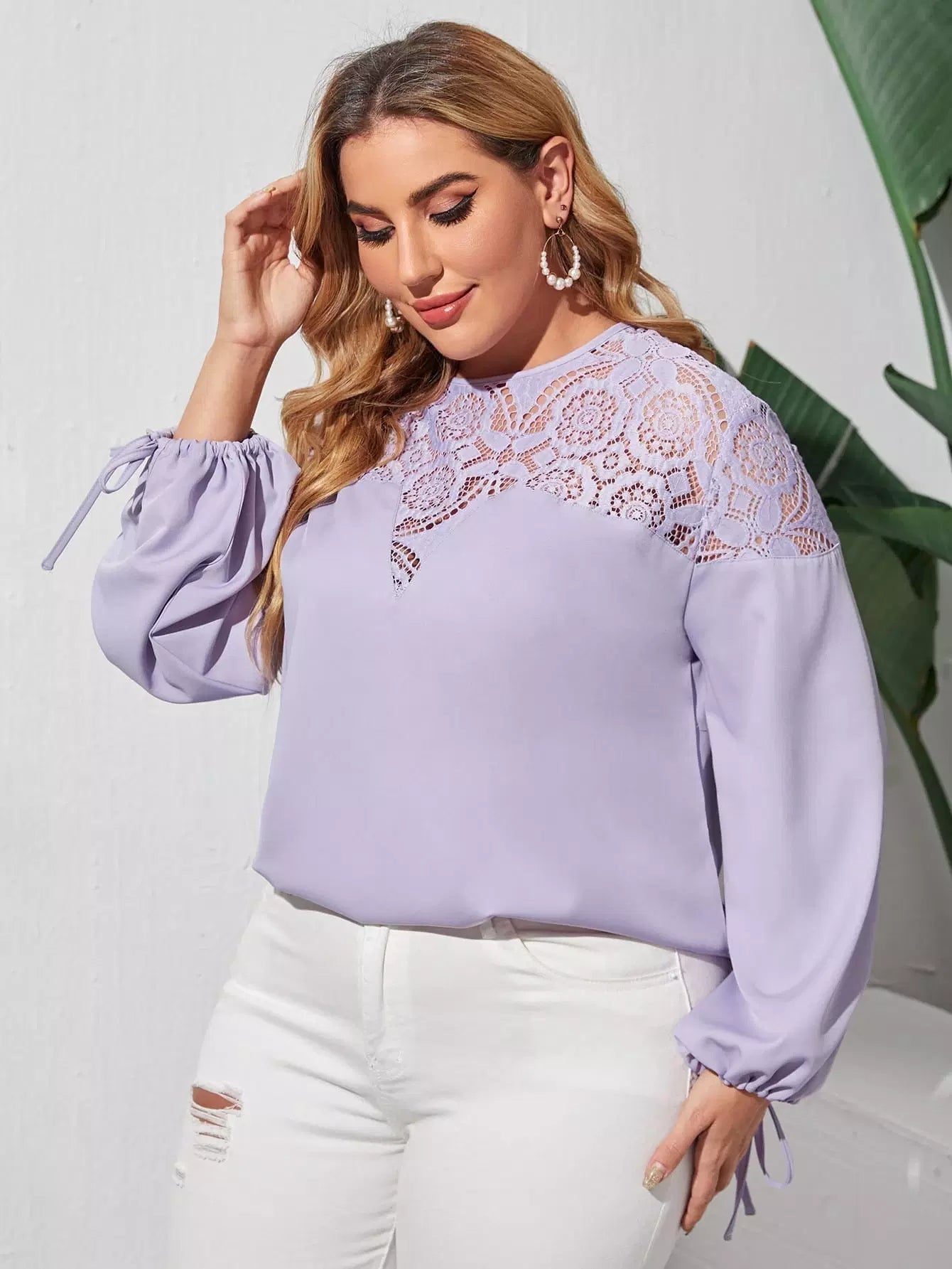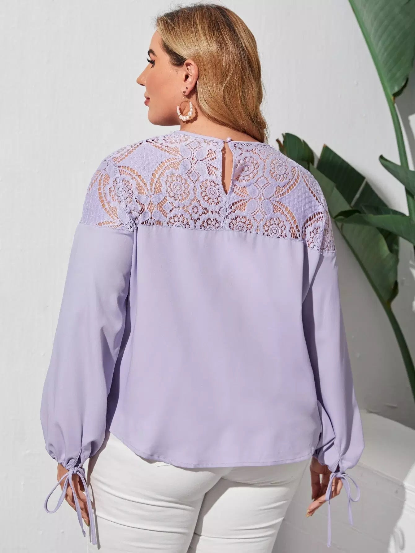 بلوزة بدون أكمام دانتيل على شكل عقدة زائد