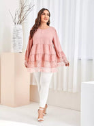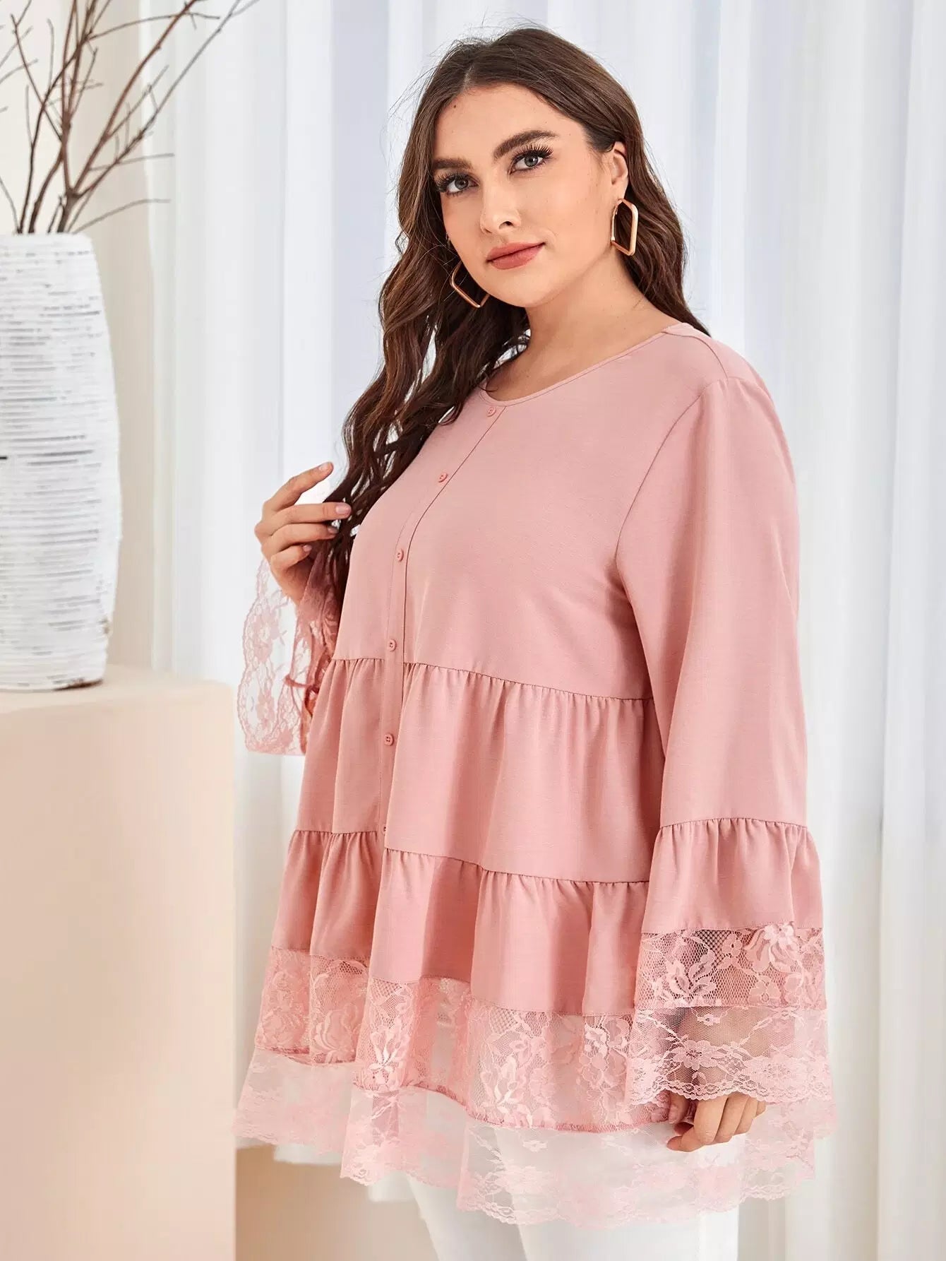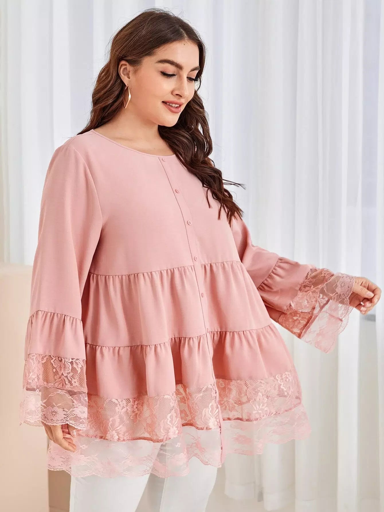 بلوزة بدون أكمام من الدانتيل بأزرار أمامية بأزرار زائد