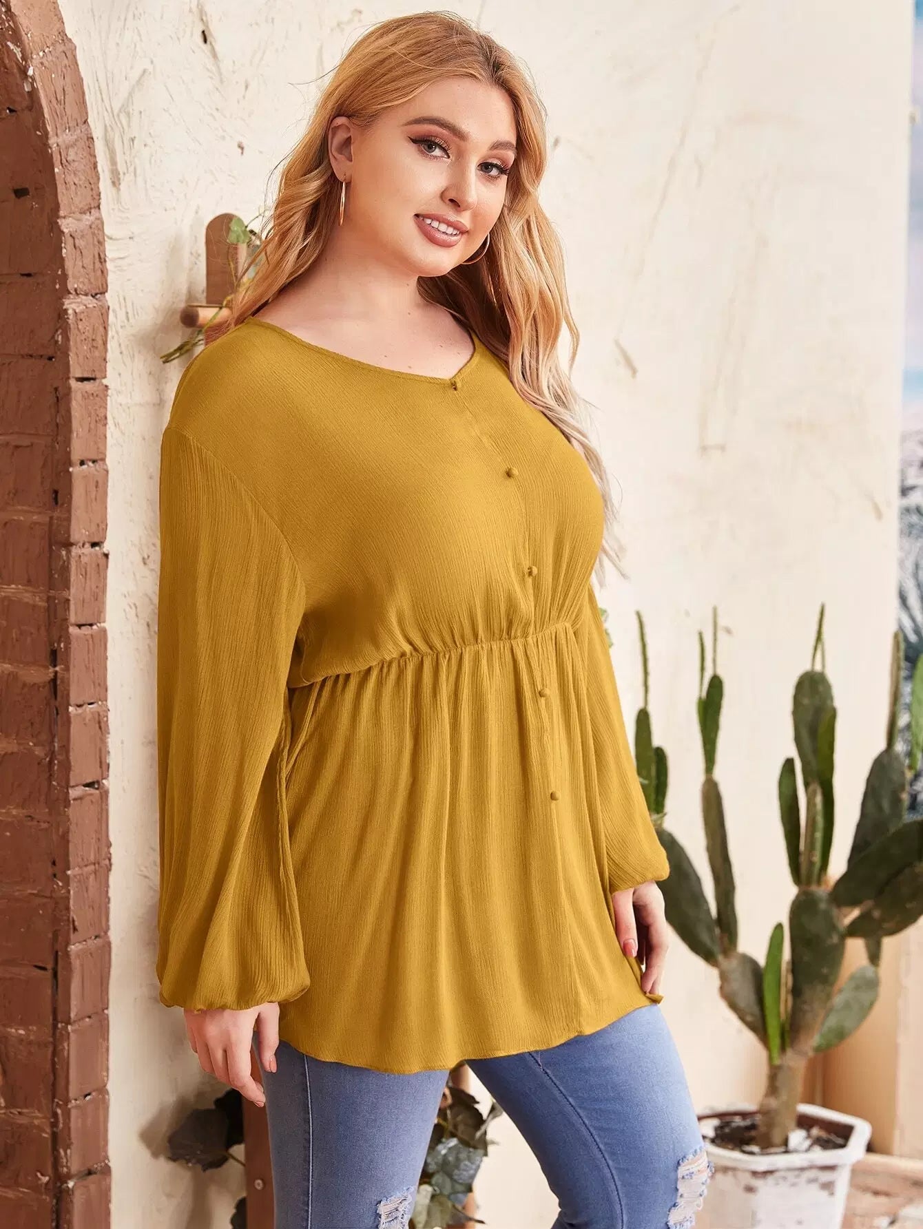 بلوزة بأكمام كشكش بأطراف مكشكشة بلا أكمام زائد