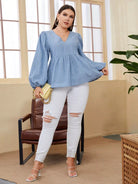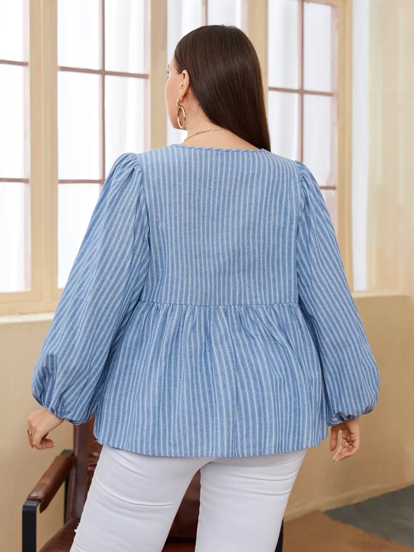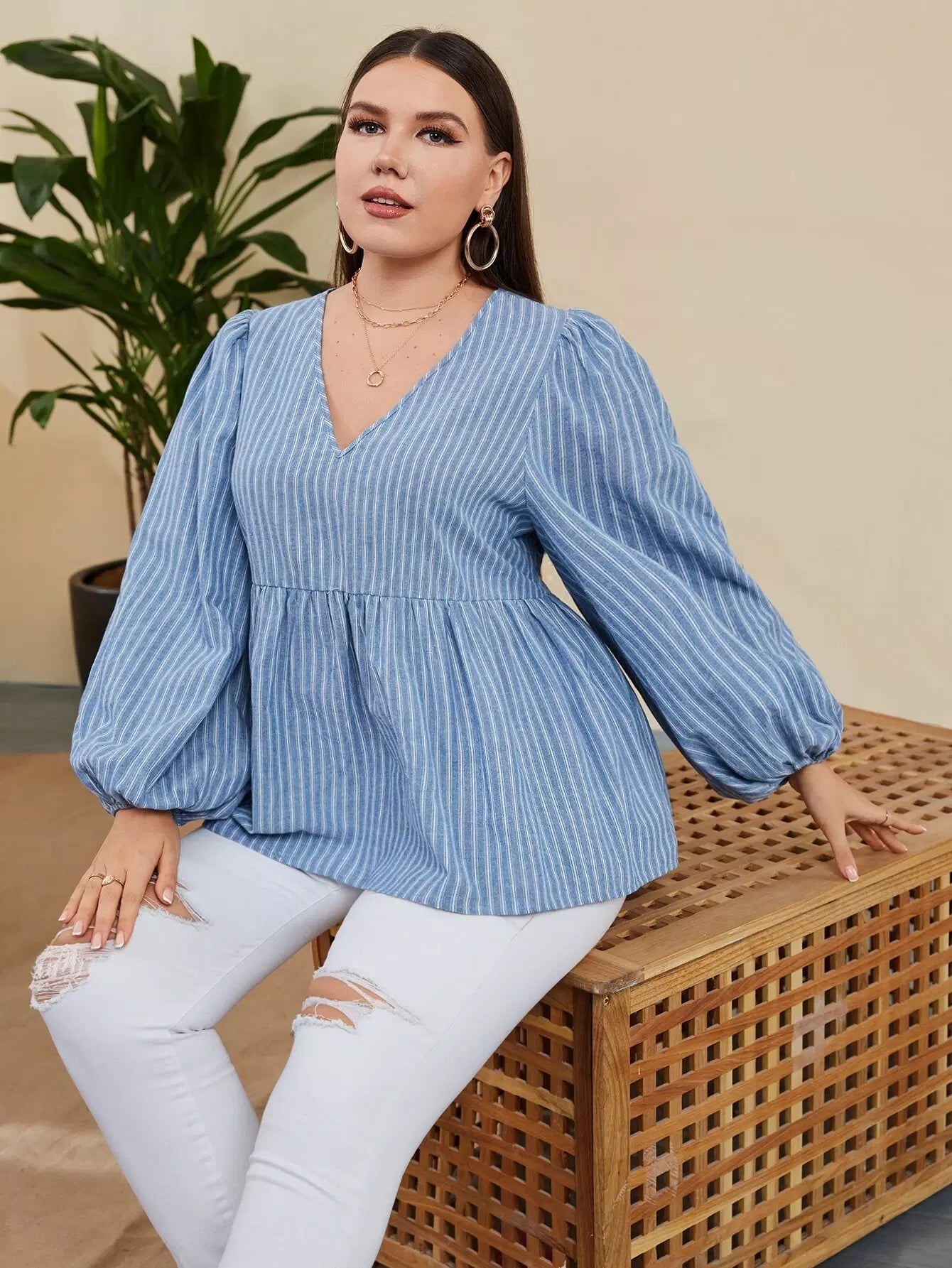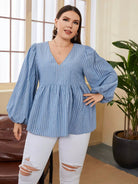 بلوزة بأكمام فانوس بأكمام مخططة بلا أكمام زائد