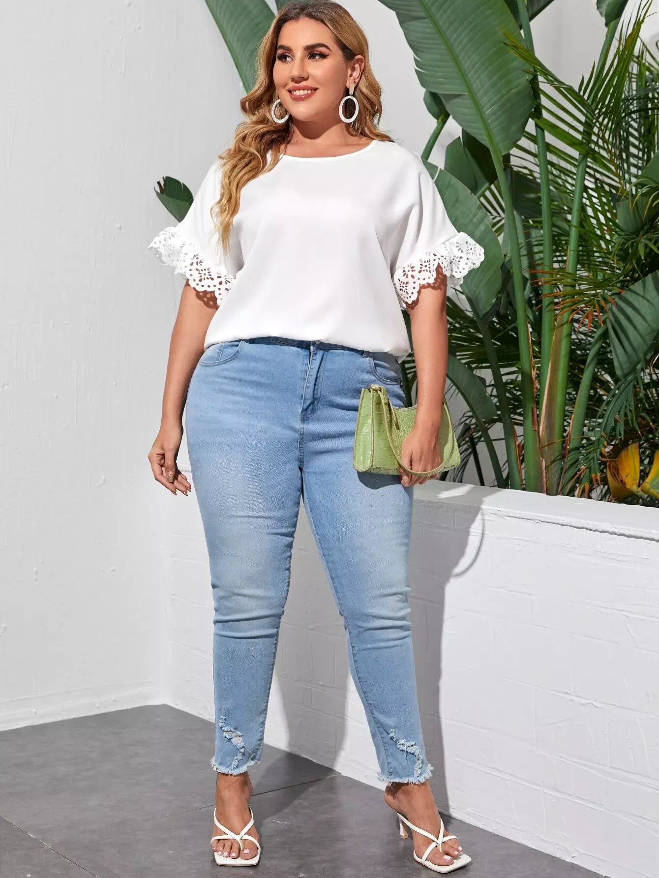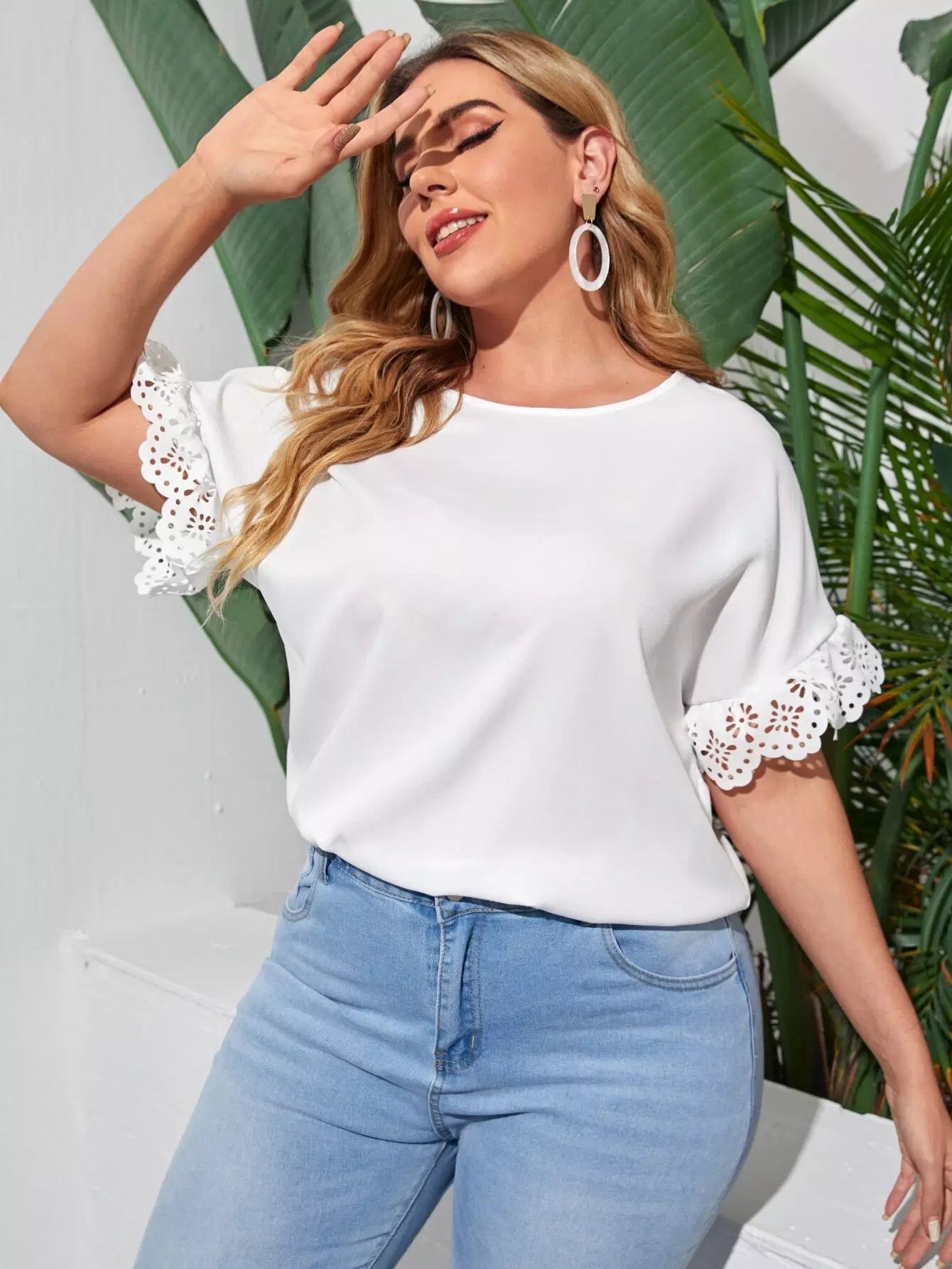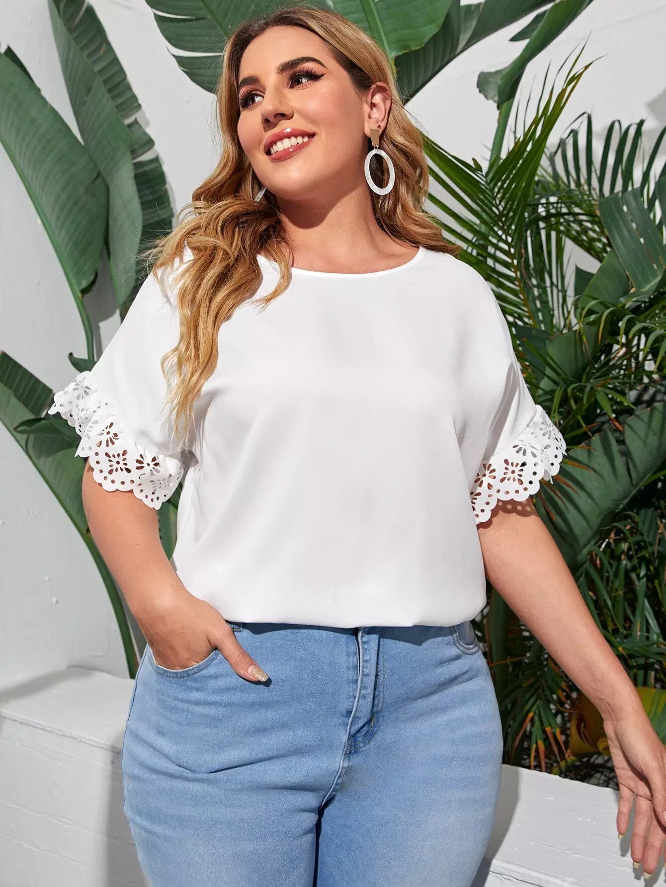 بلوزة سادة بقصّة ليزر مقصوصة الأكمام زائد