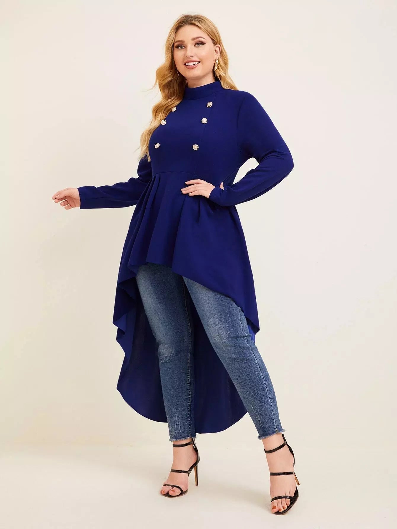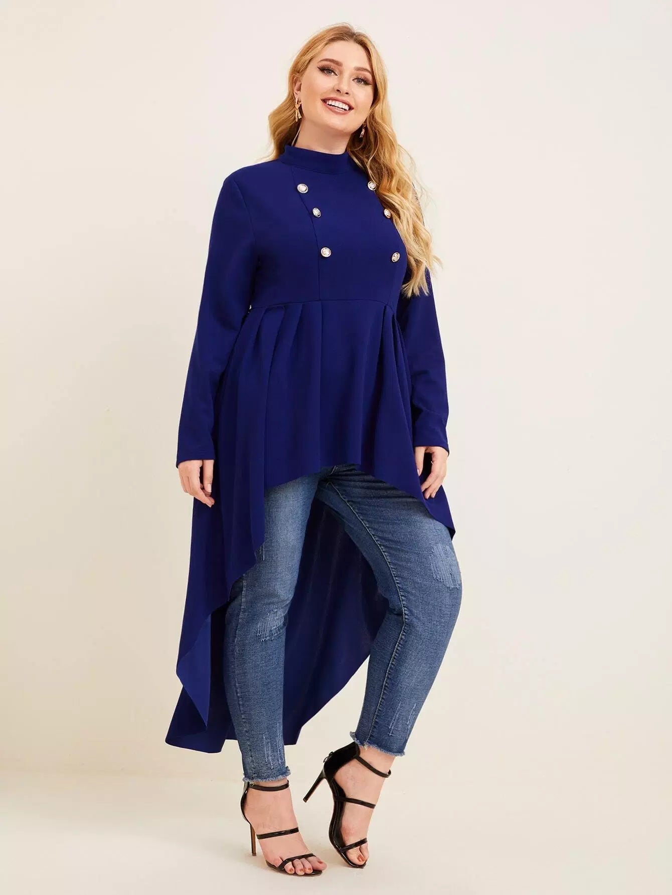 بلوزة برقبة وهمية بياقة زائد وأزرار أمامية مقلوبة من الأمام بأزرار