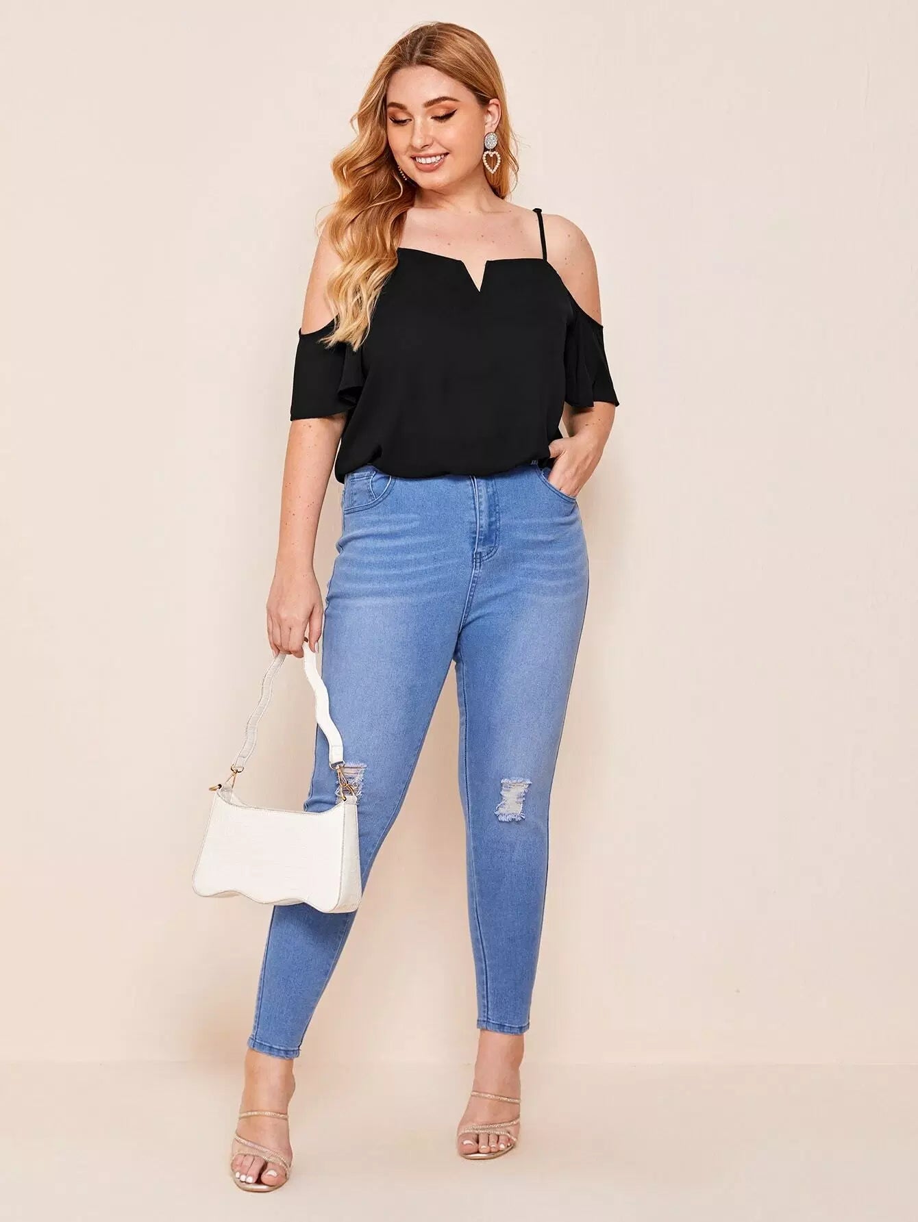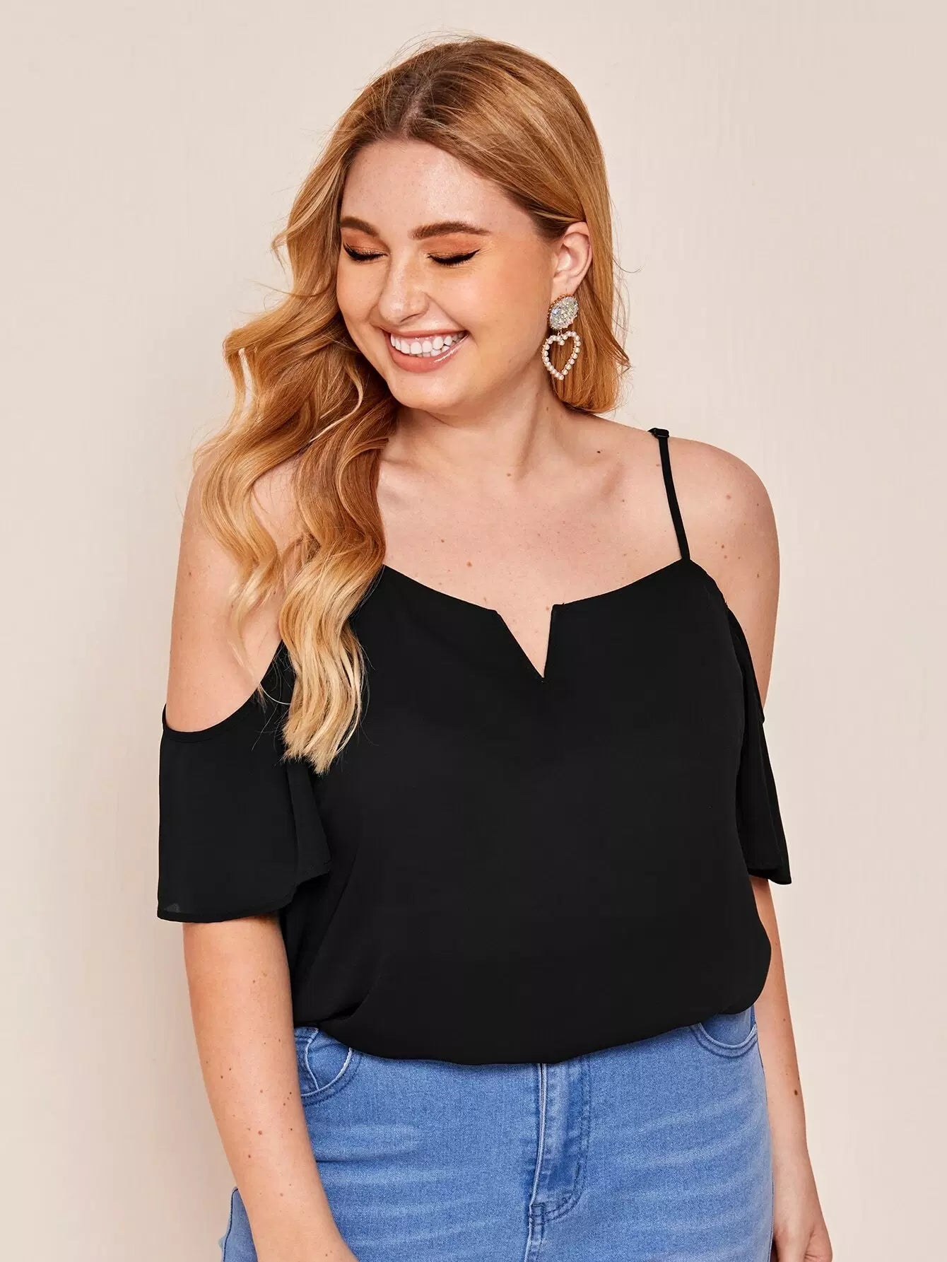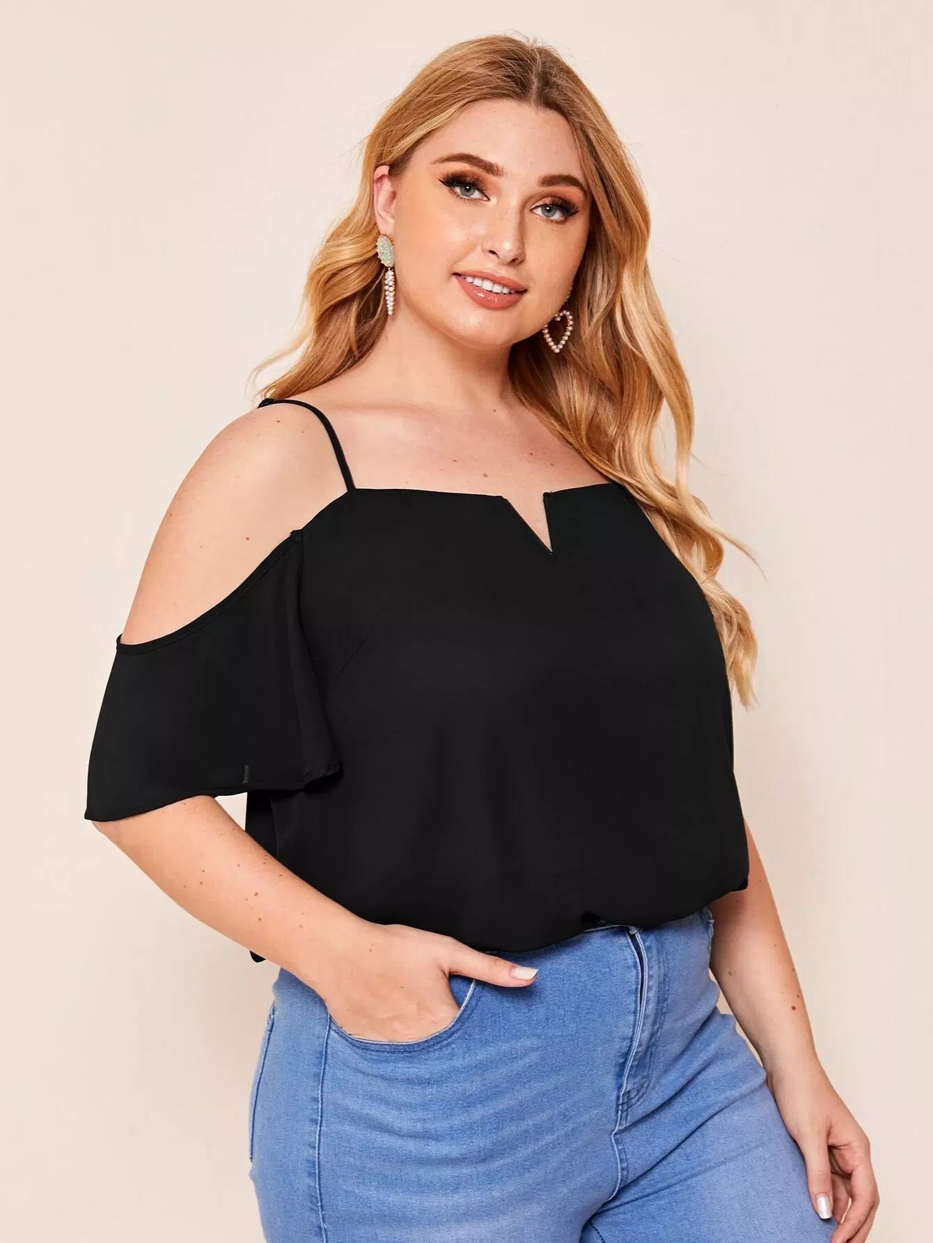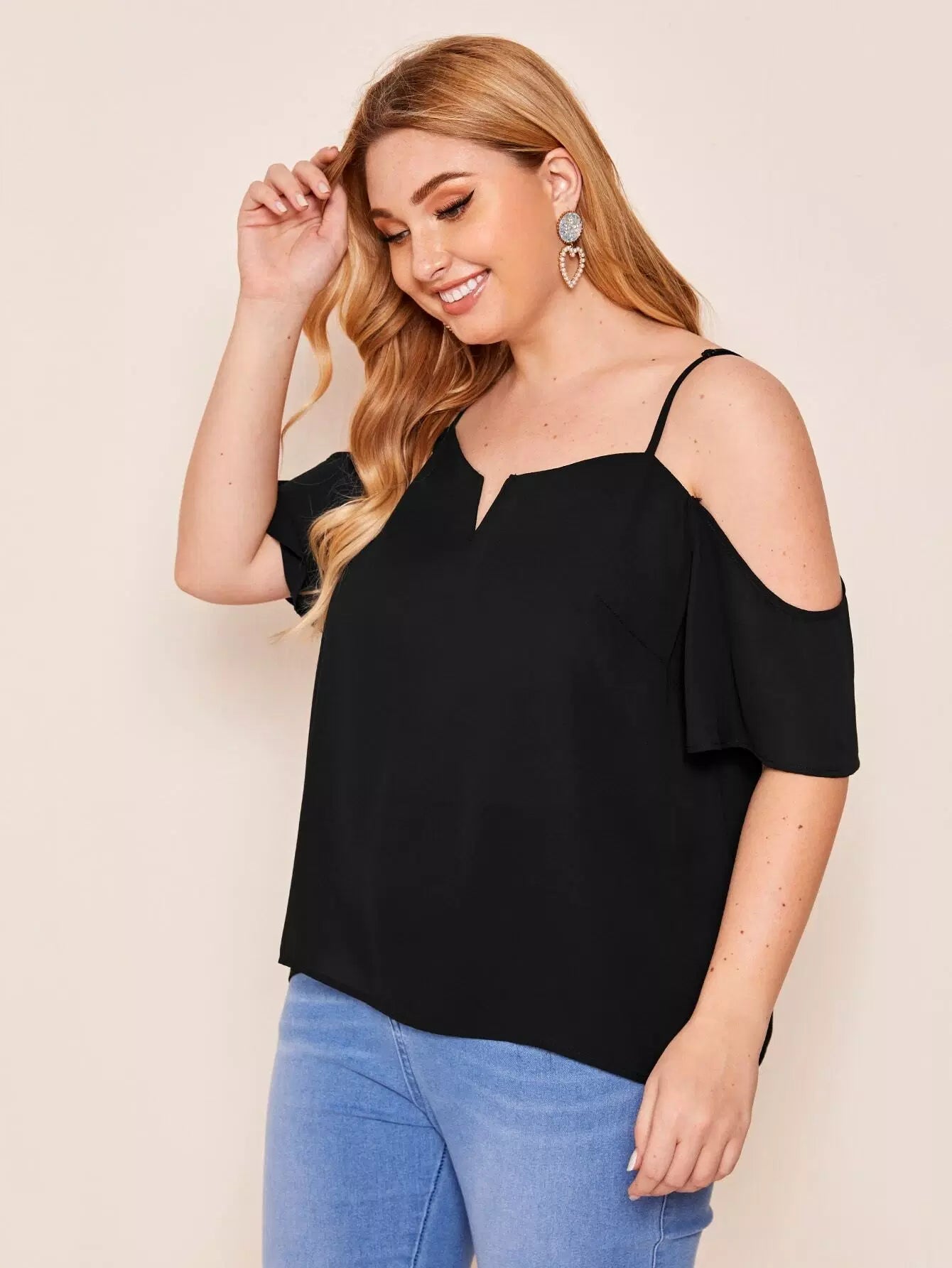 بلوزة برقبة بفتحة عنق زائد بكتف بارد
