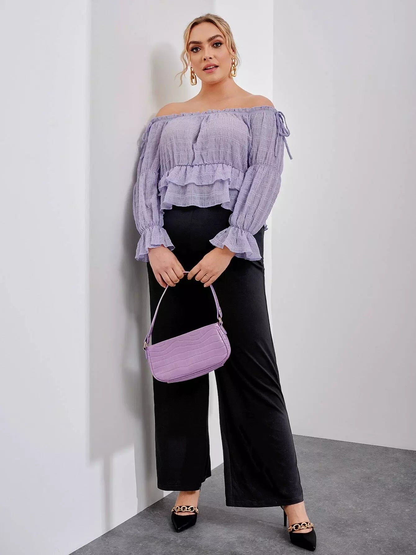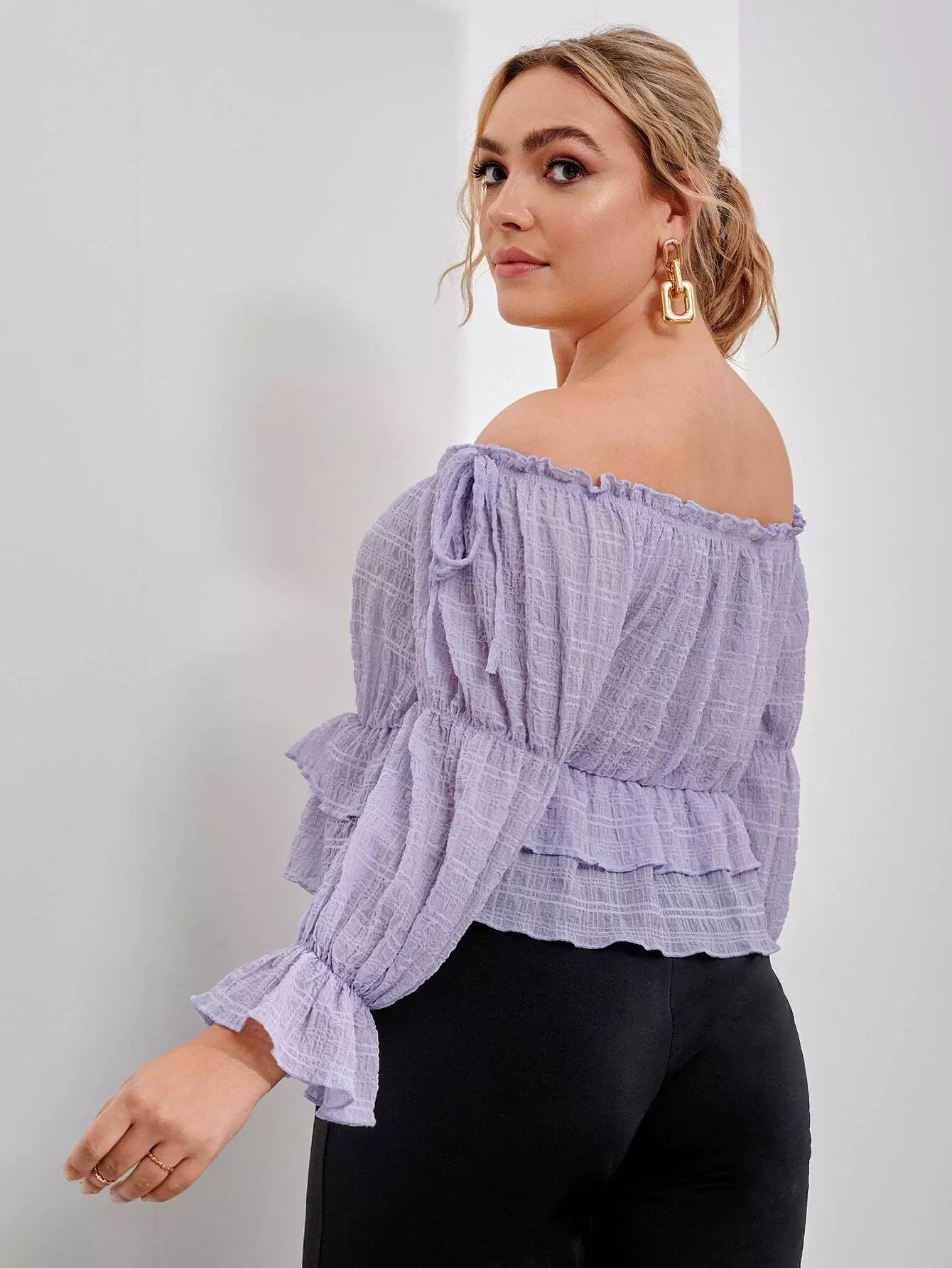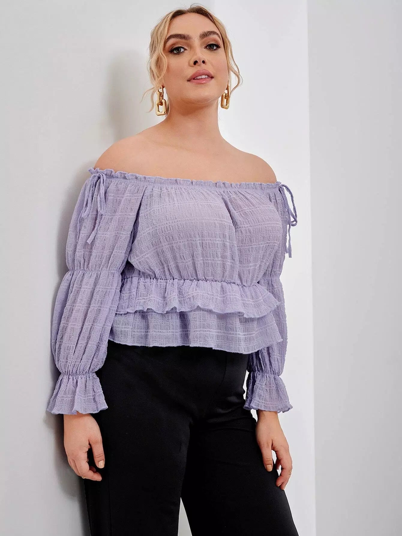 بلوزة بدون أكتاف مكشوفة الأكتاف ذات تفاصيل عقدة بيبلوم