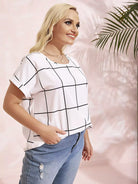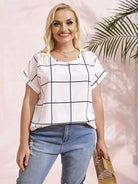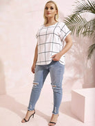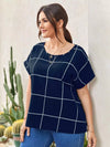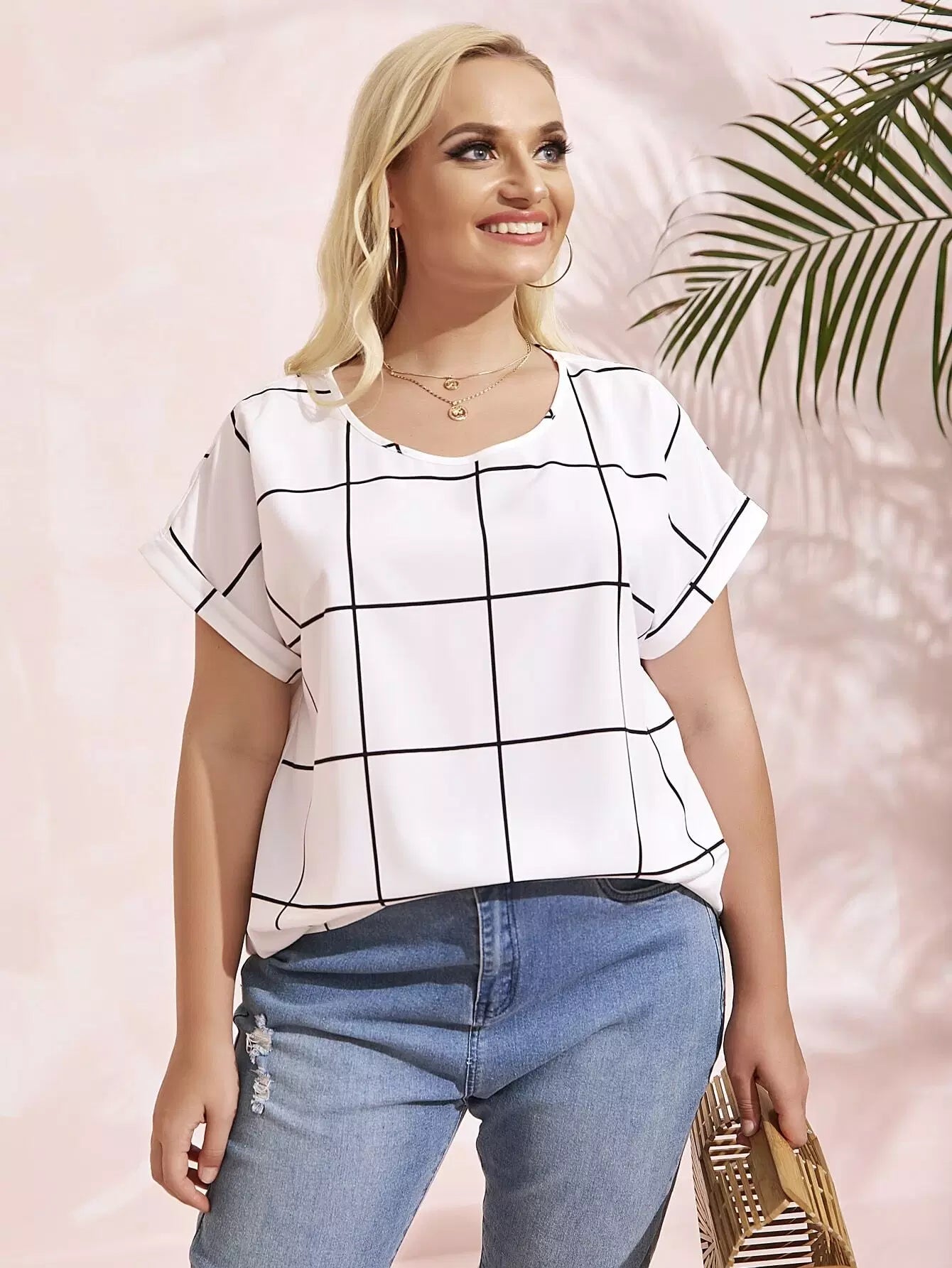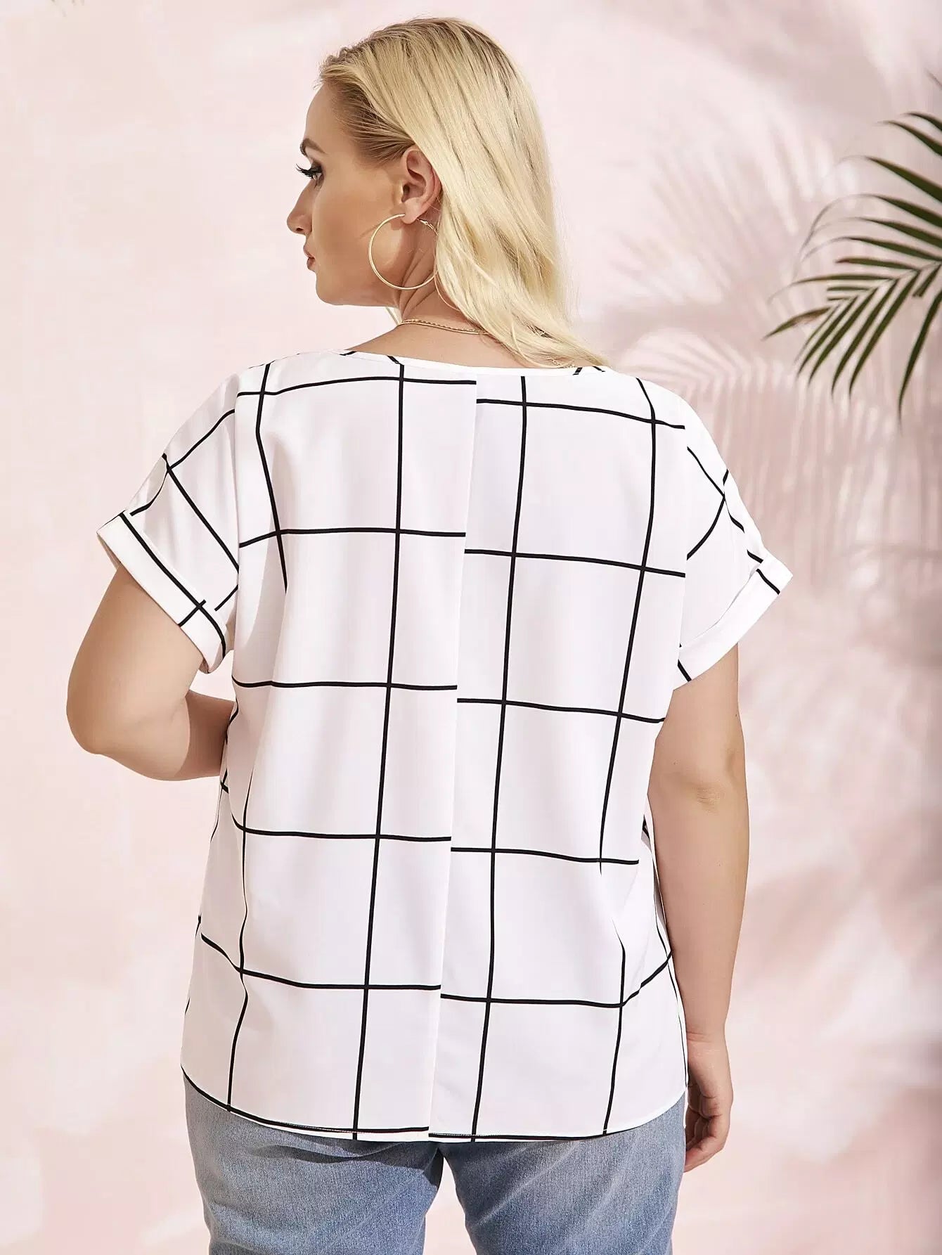 بلوزة برقبة مستديرة منقوشة منقوشة زائد