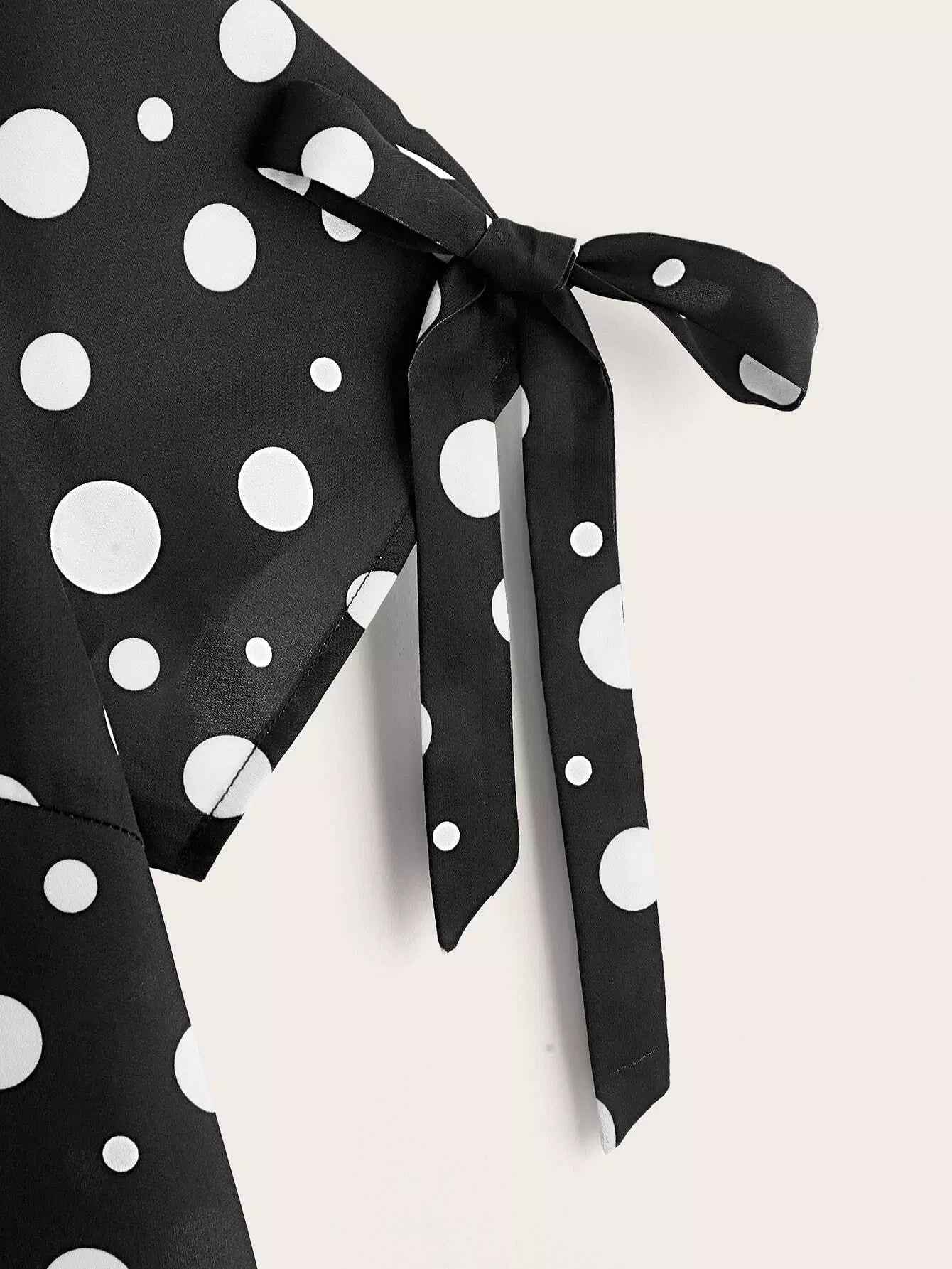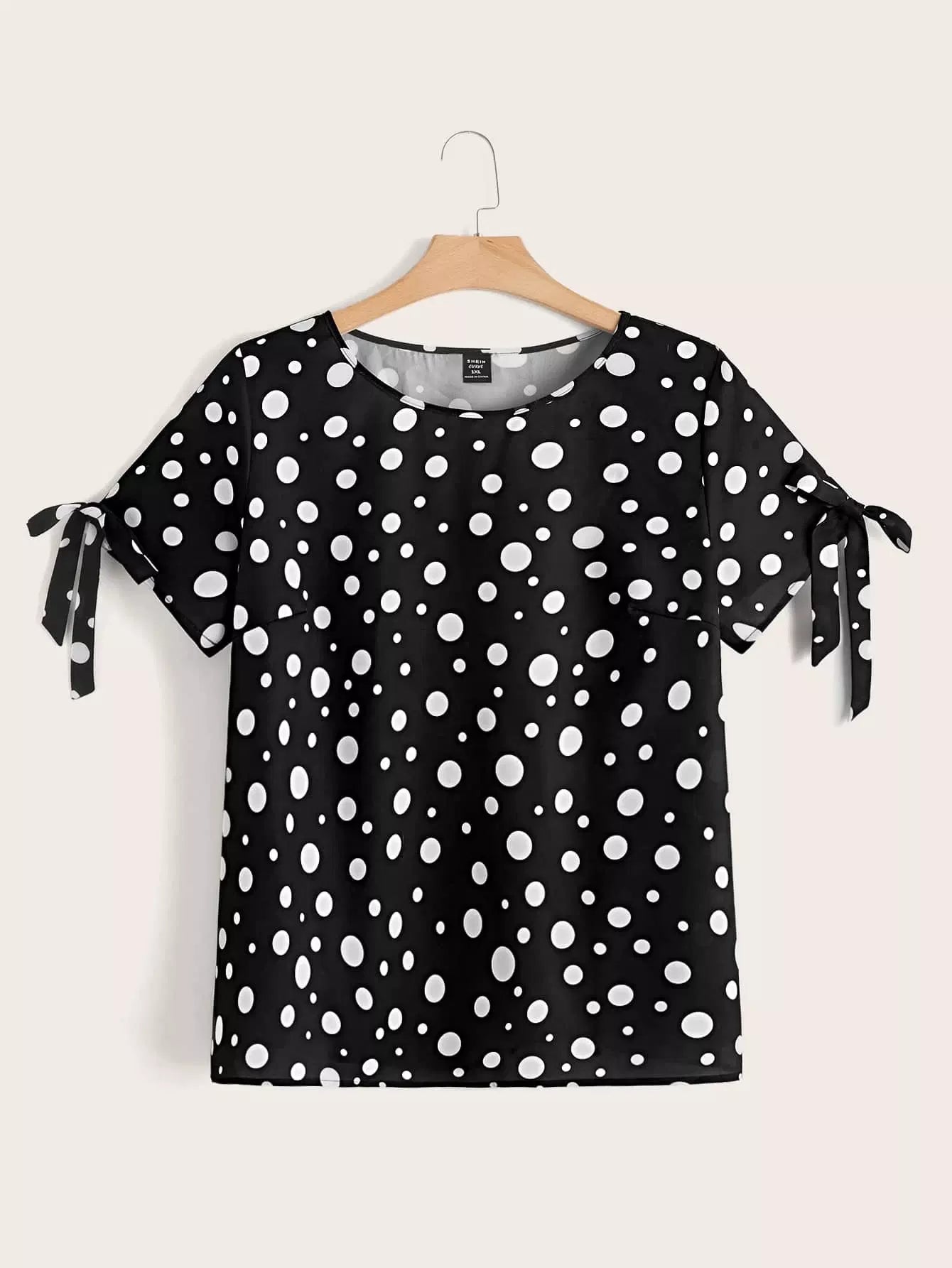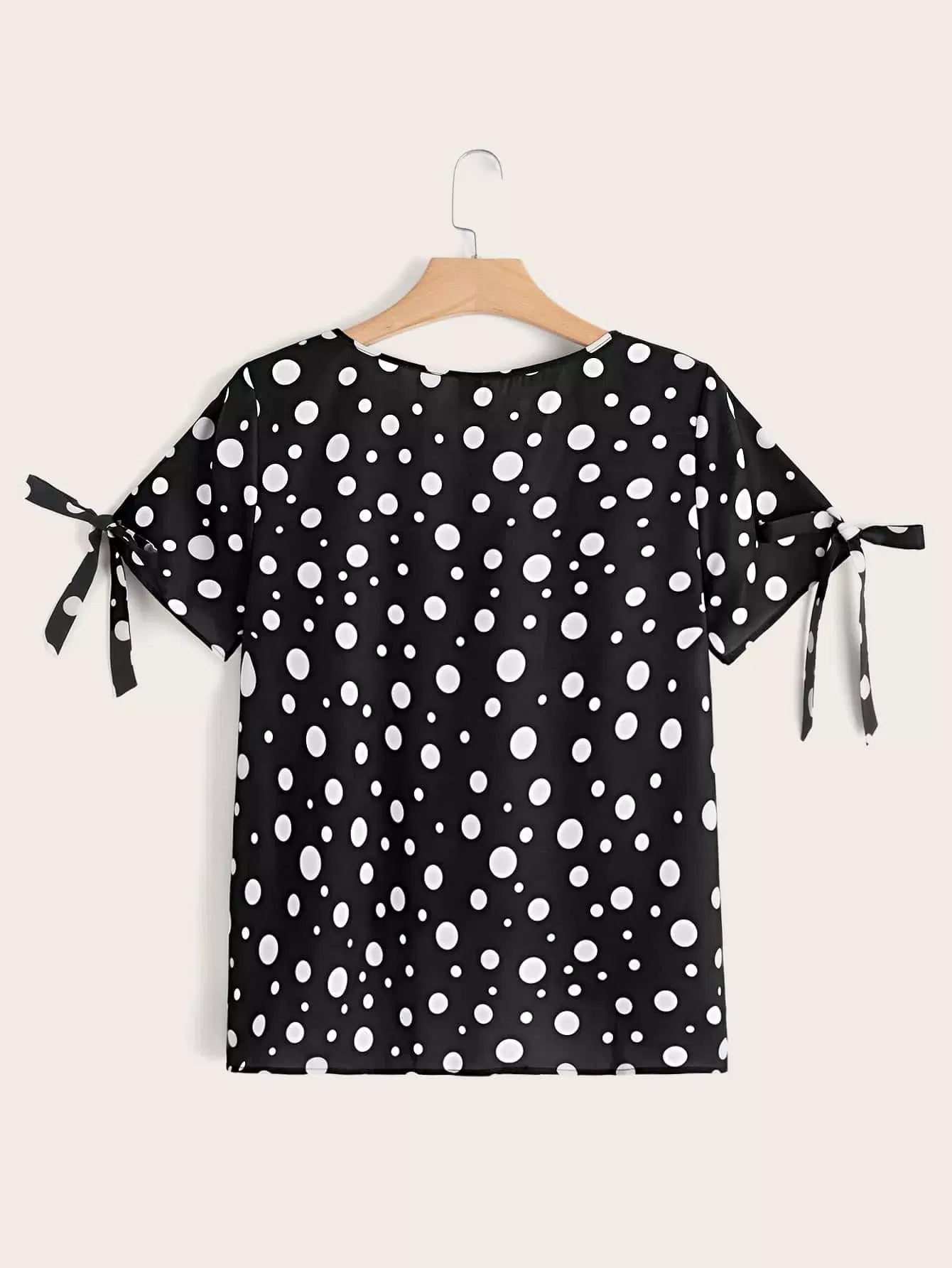 بلوزة مزينة بعقدة منقوشة بنقشة بولكا دوت مزينة بعقدة
