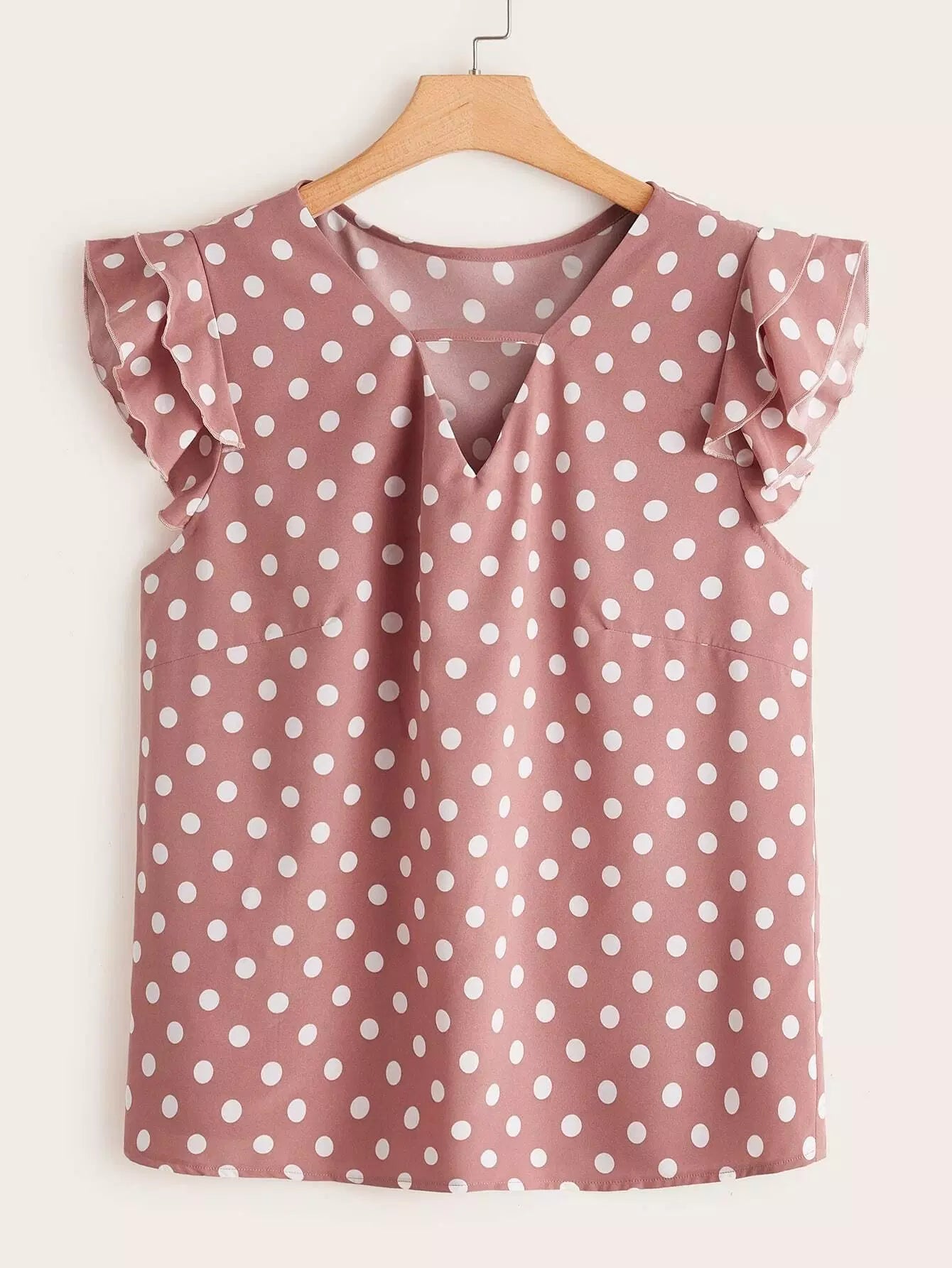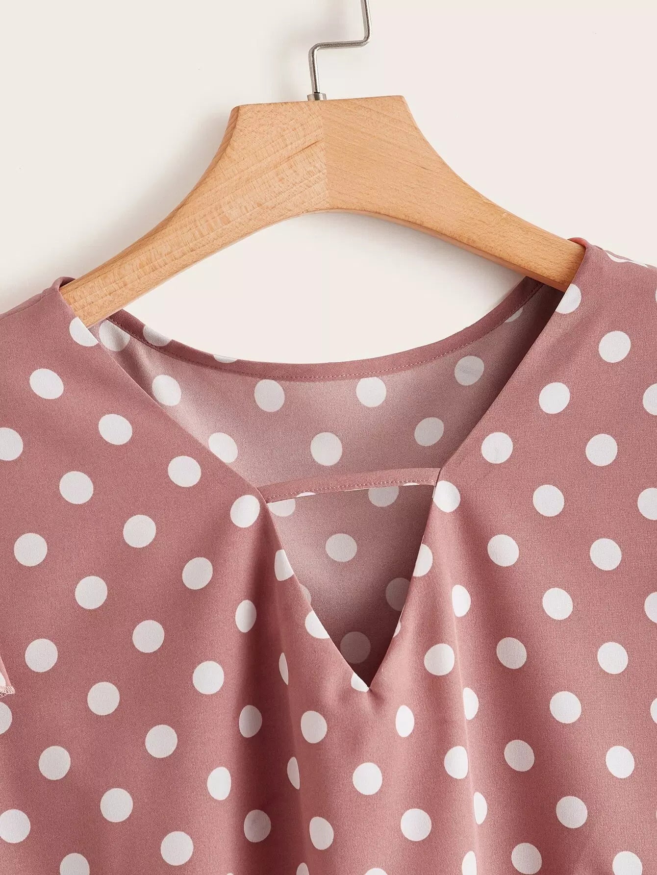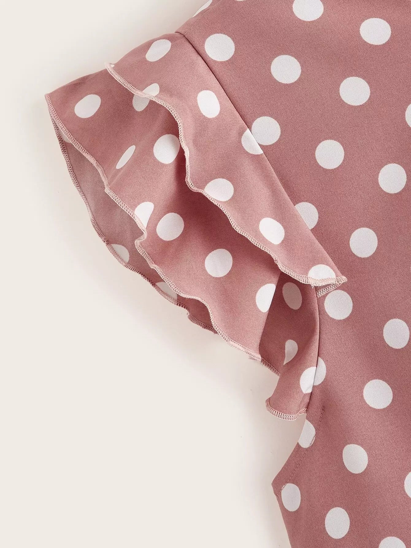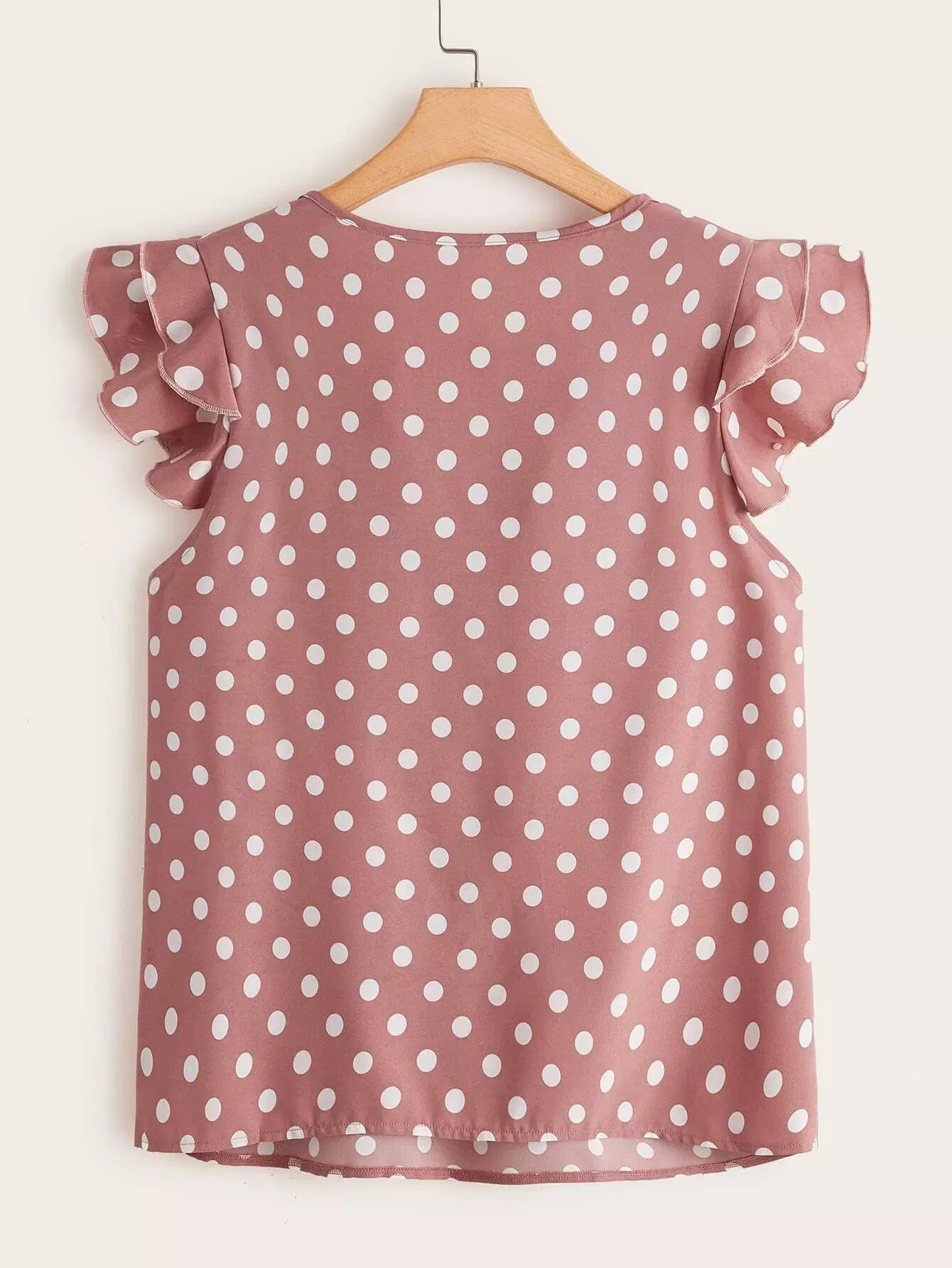 نحيف - مقاس كبير بلوزة بأكمام فراشة منقطة