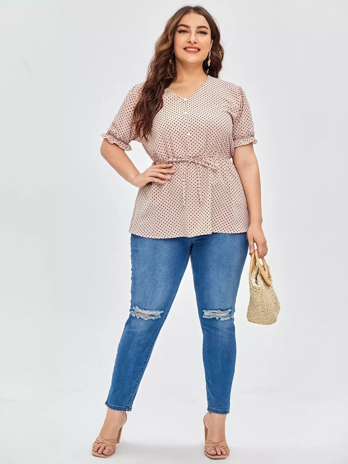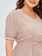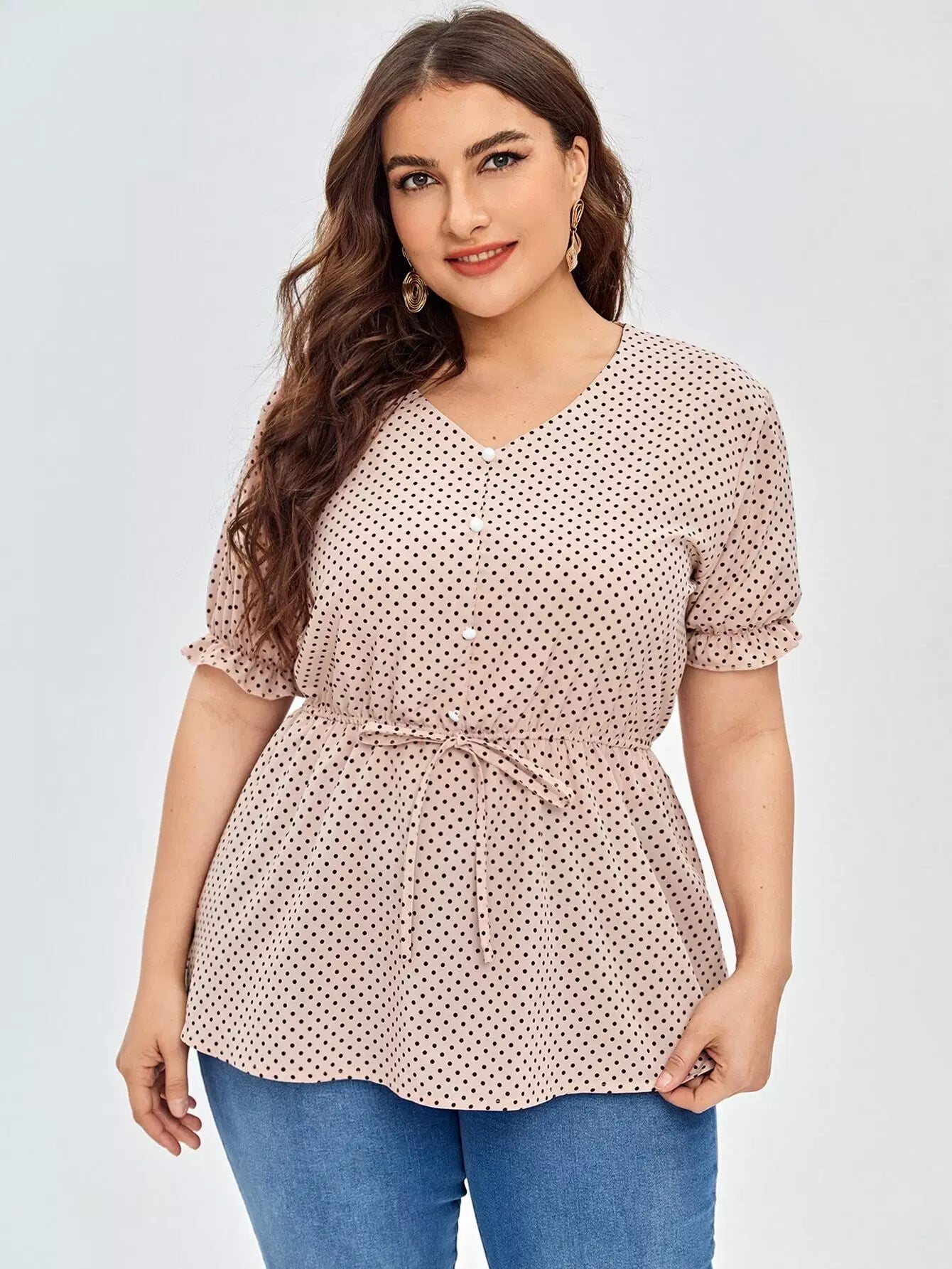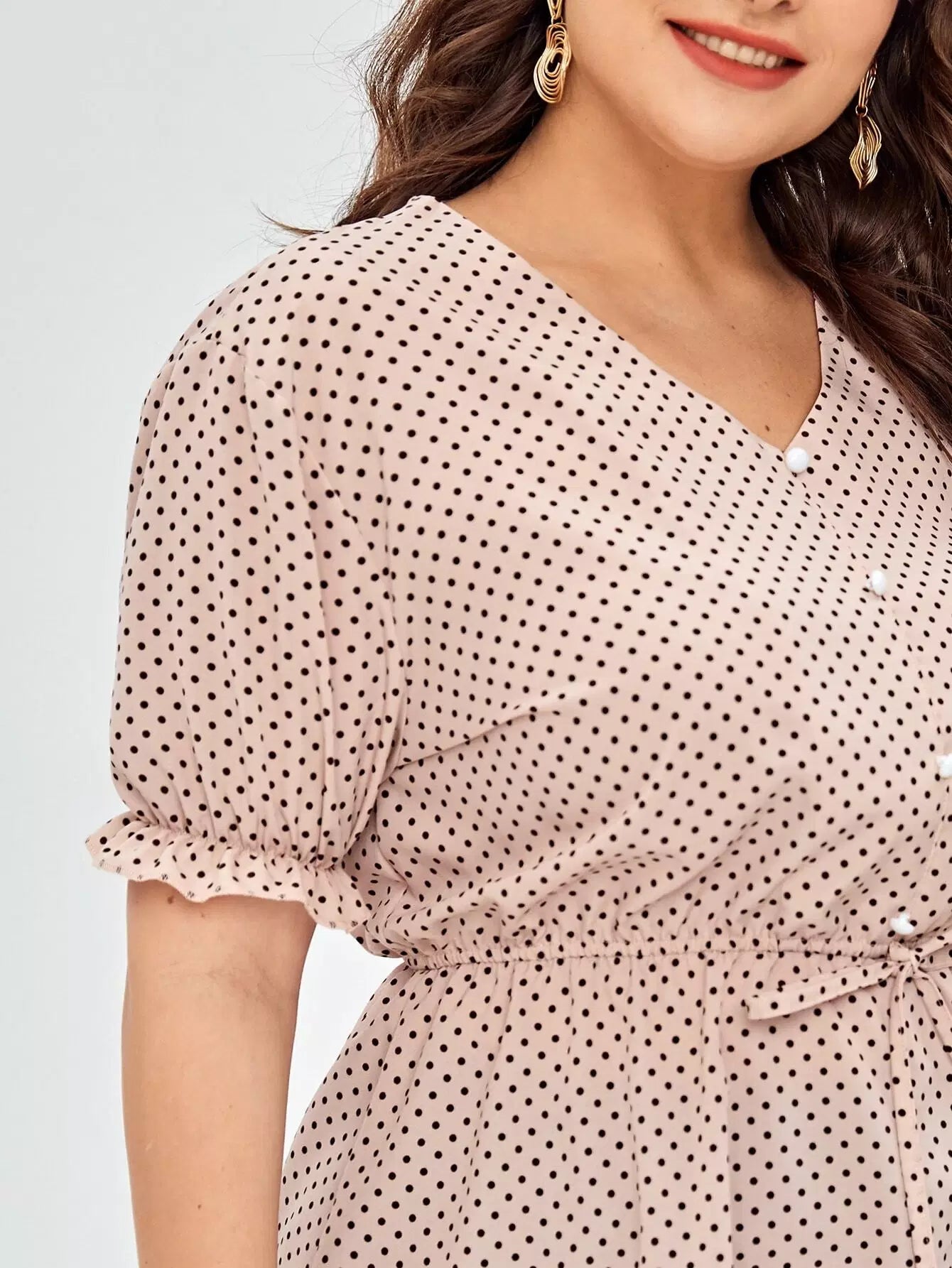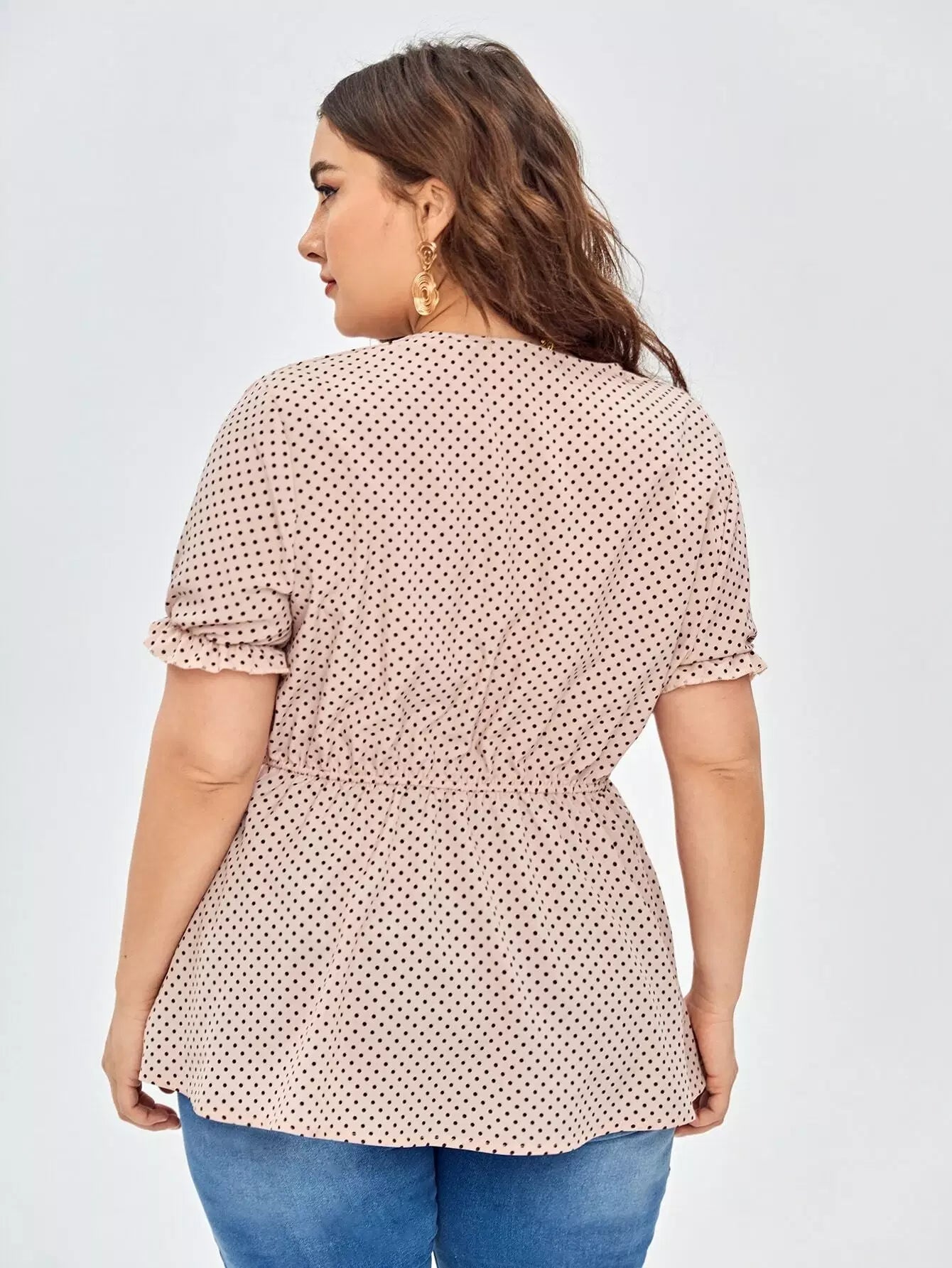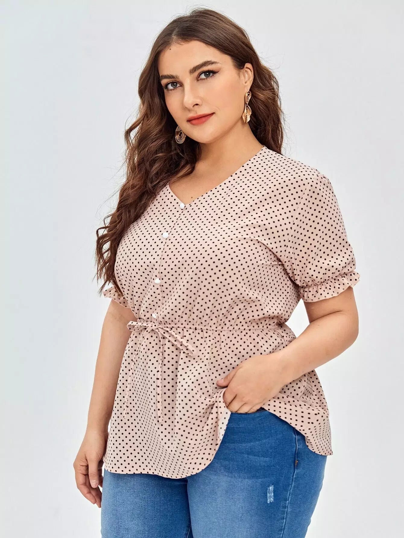 نحيف - مقاس كبير بلوزة بيبلوم بأزرار منقطة