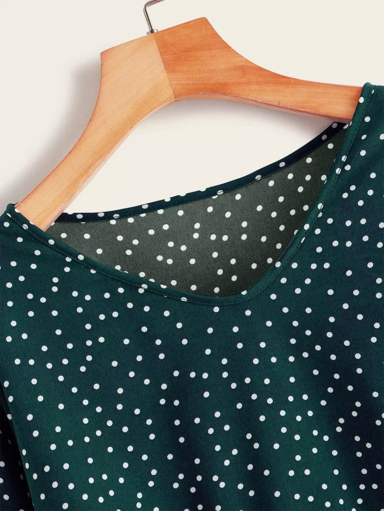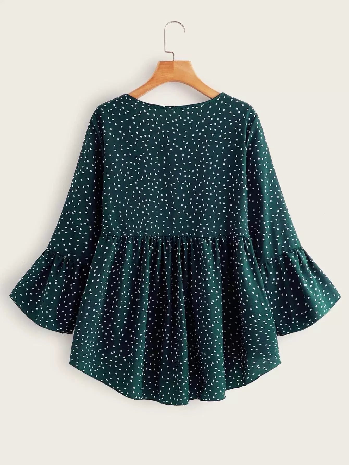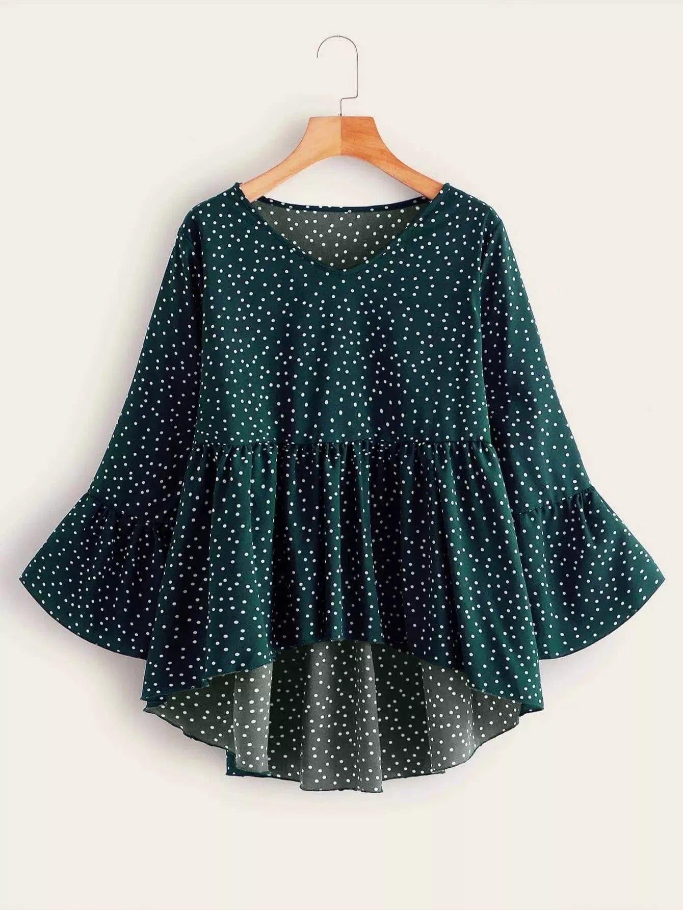 بلوزة بيبي دوت بلس منقوشة بنقشة بولكا منخفضة عالية