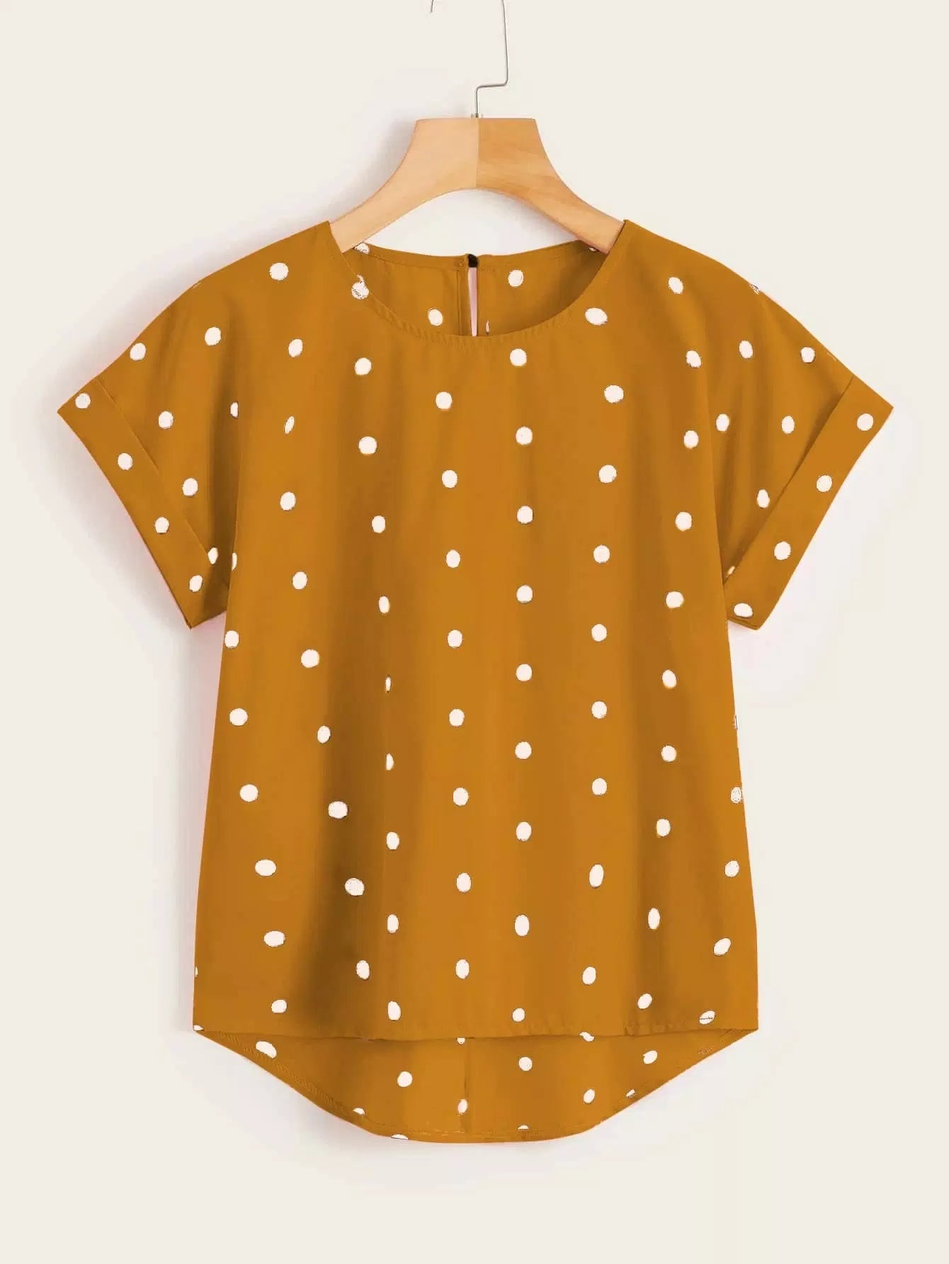 بلوزة بولكا منقطة عالية منخفضة زائد