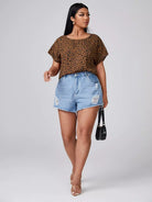 بلوزة مطبوعة بالكامل بأساور ملفوفة بالكامل