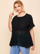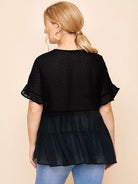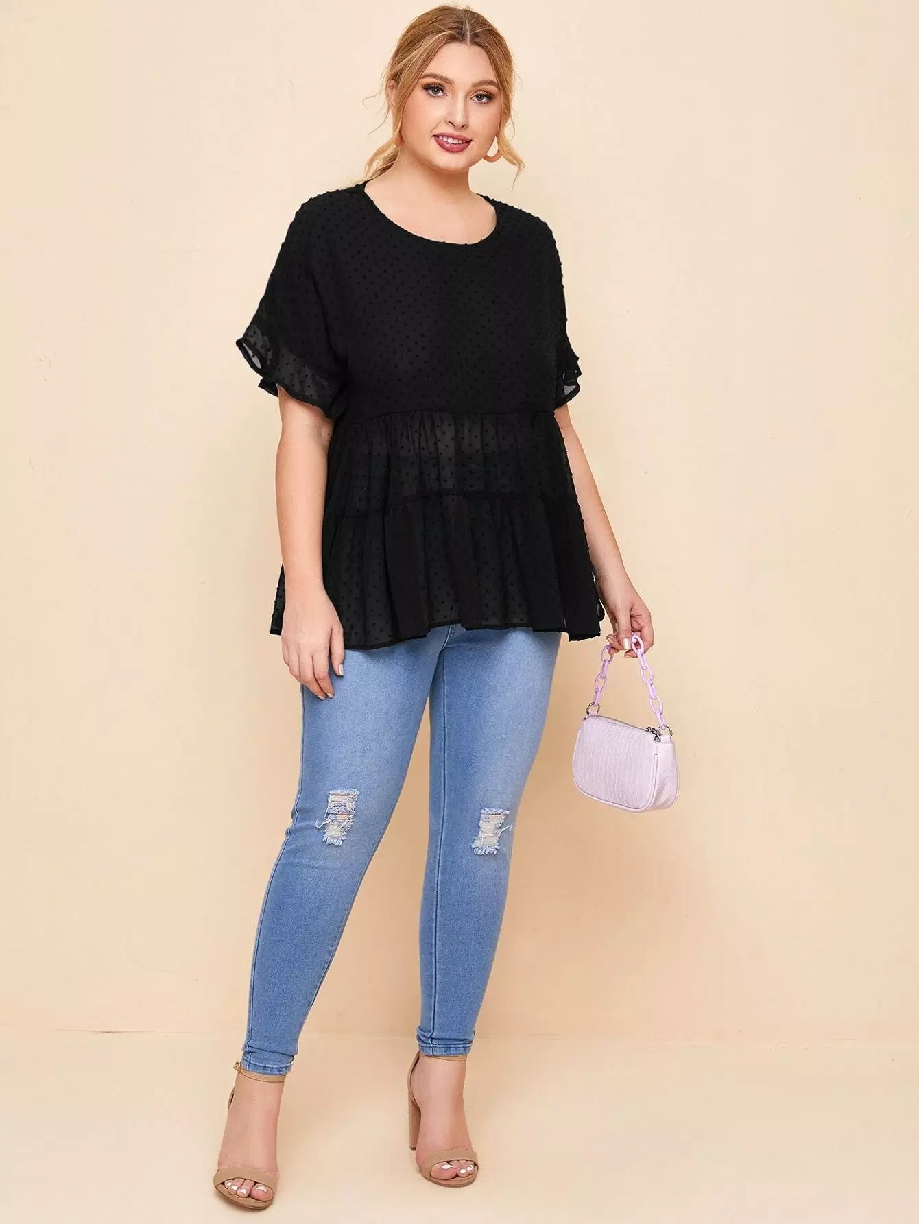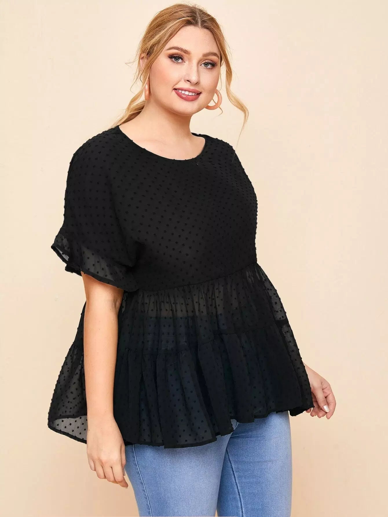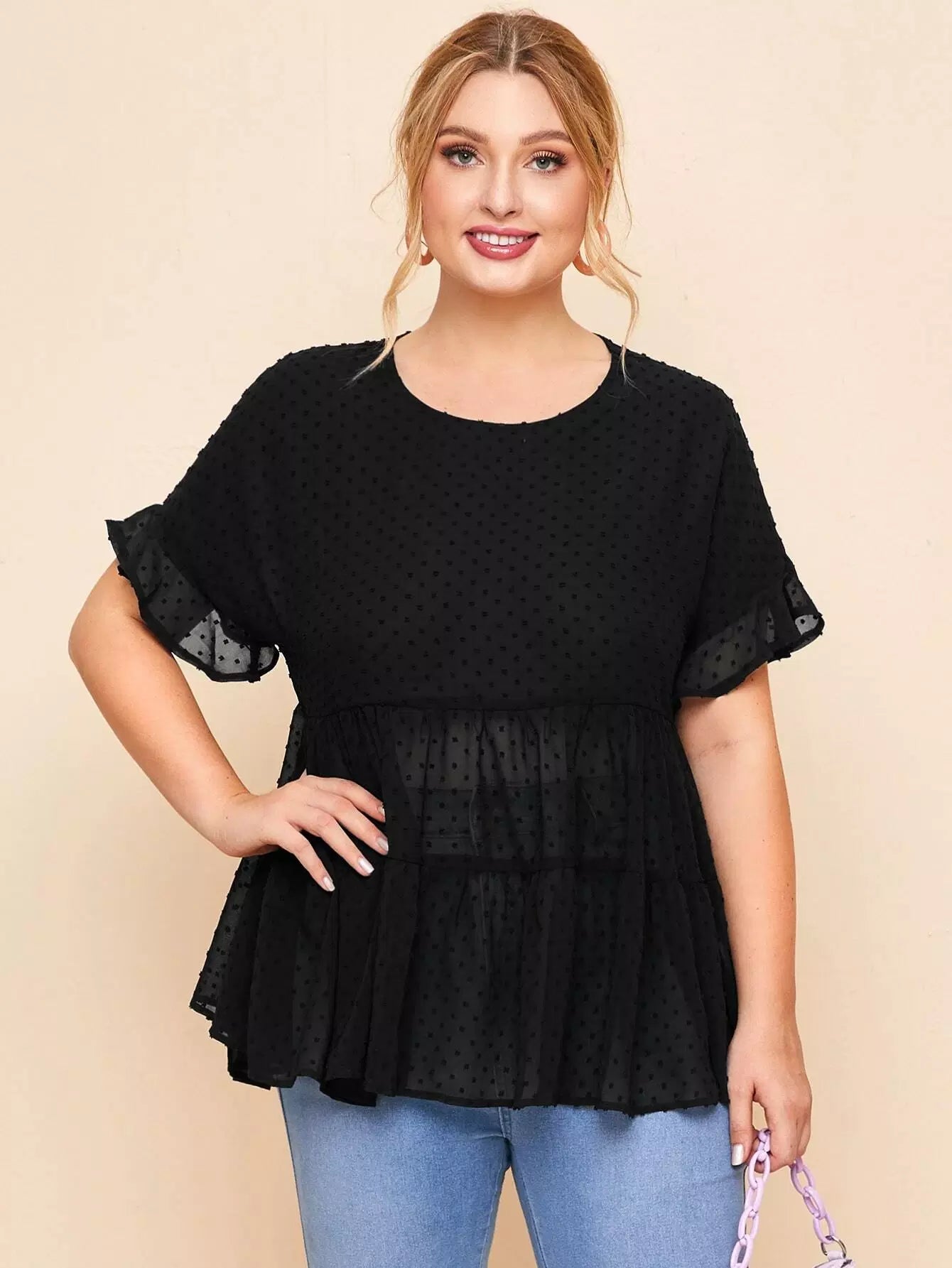بلوزة مكشكشة ذات أكمام وحواف مكشكشة منقطة سويسرية