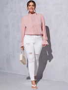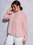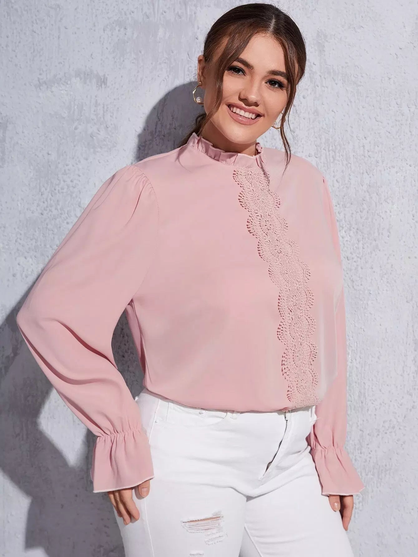 بلوزة من الدانتيل السادة بلوزة من الدانتيل السادة من الأمام كشكش من الكشكش
