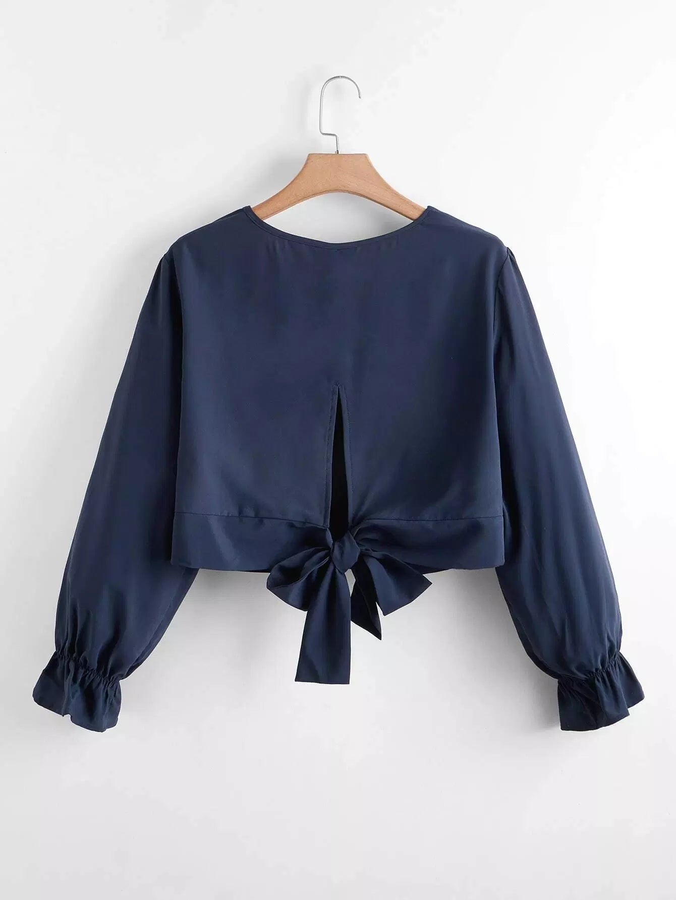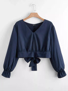 بلوزة قصيرة قصيرة سادة بربطة عنق على الظهر سادة بلاس