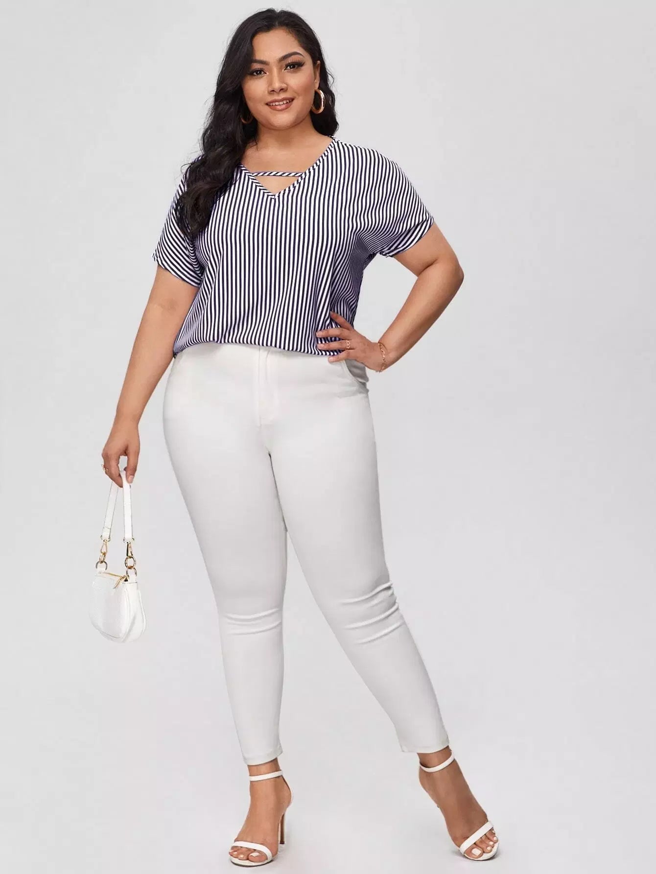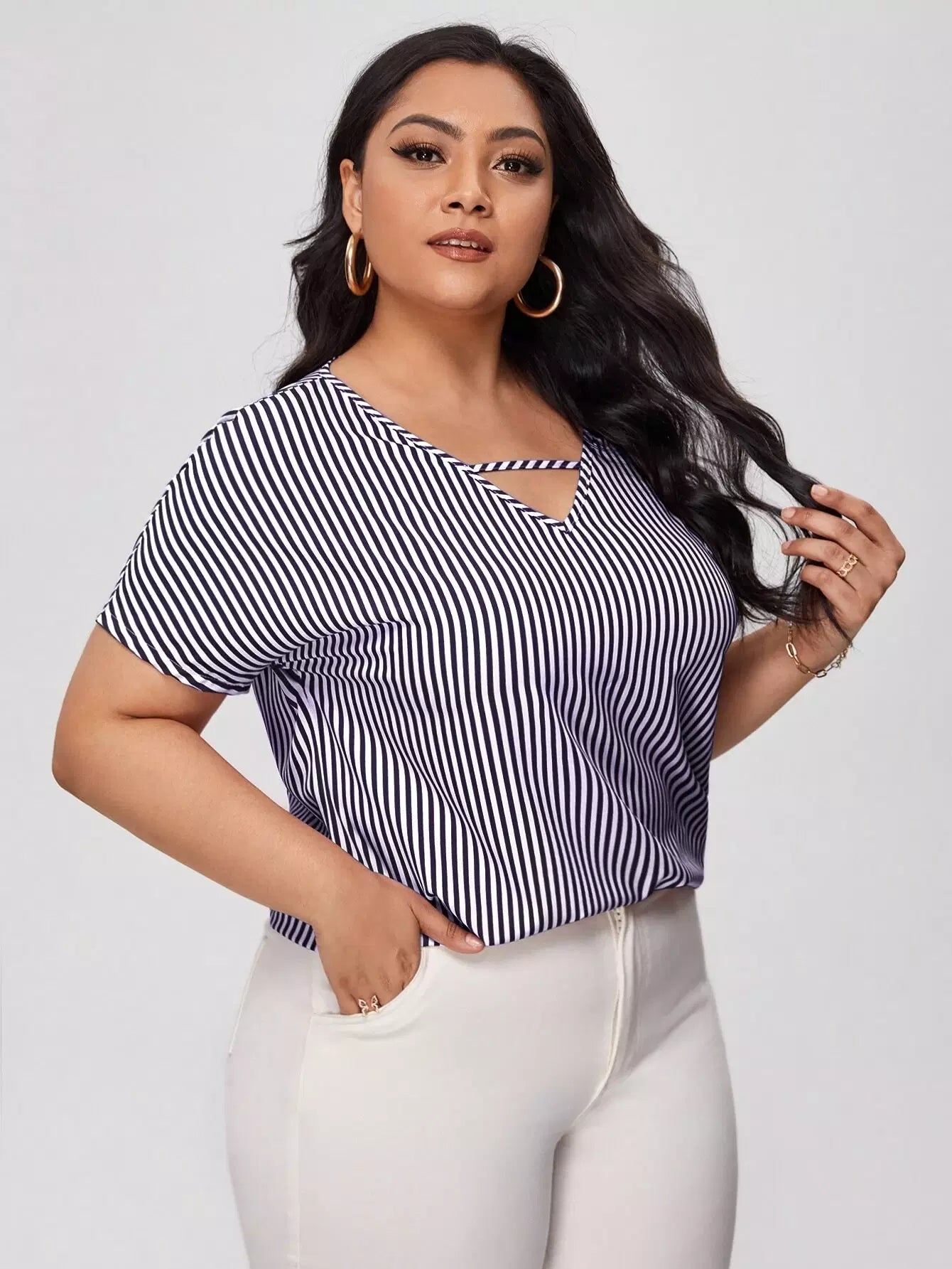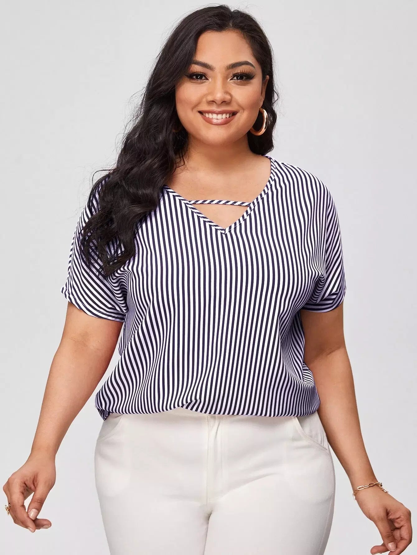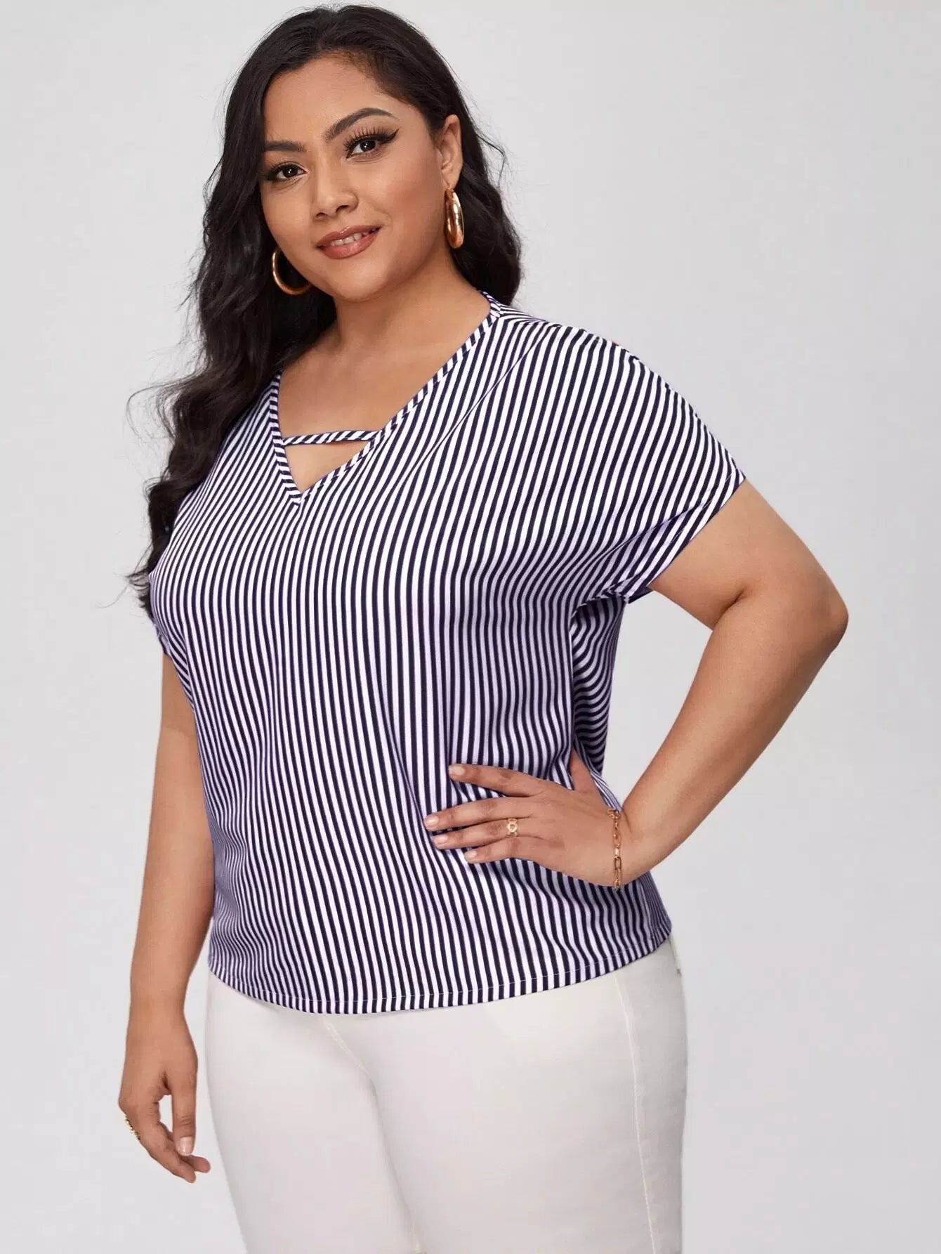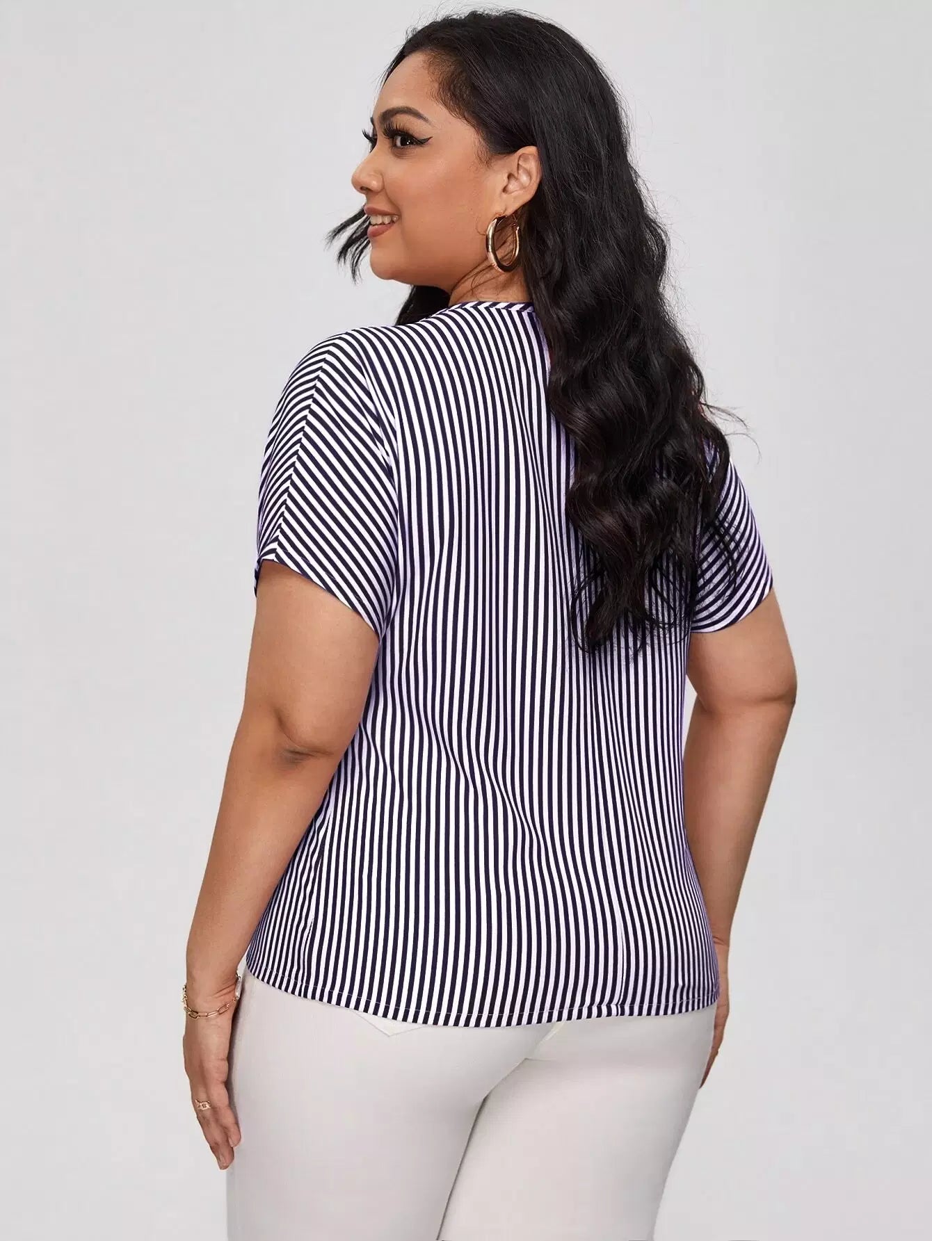 بلوزة بأكمام بطبعة مخططة بأكمام باتوينغ بلس