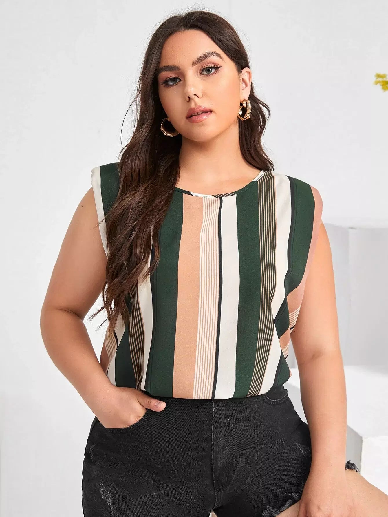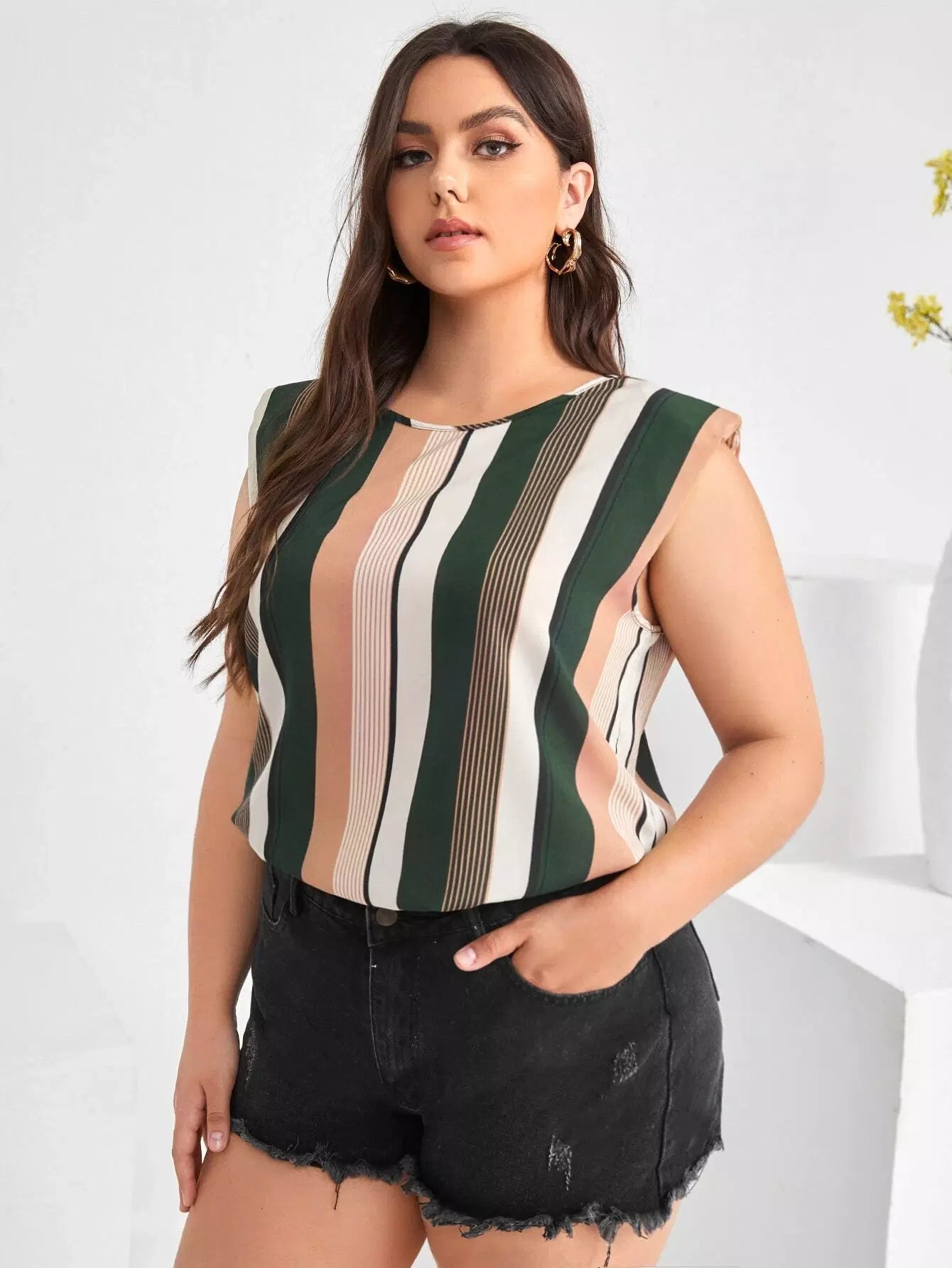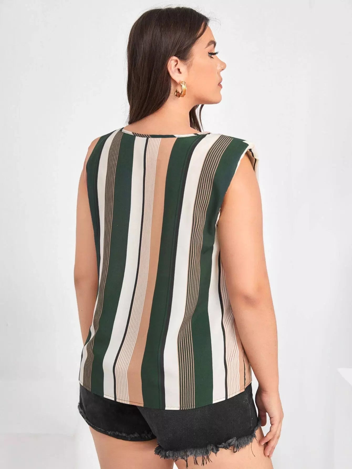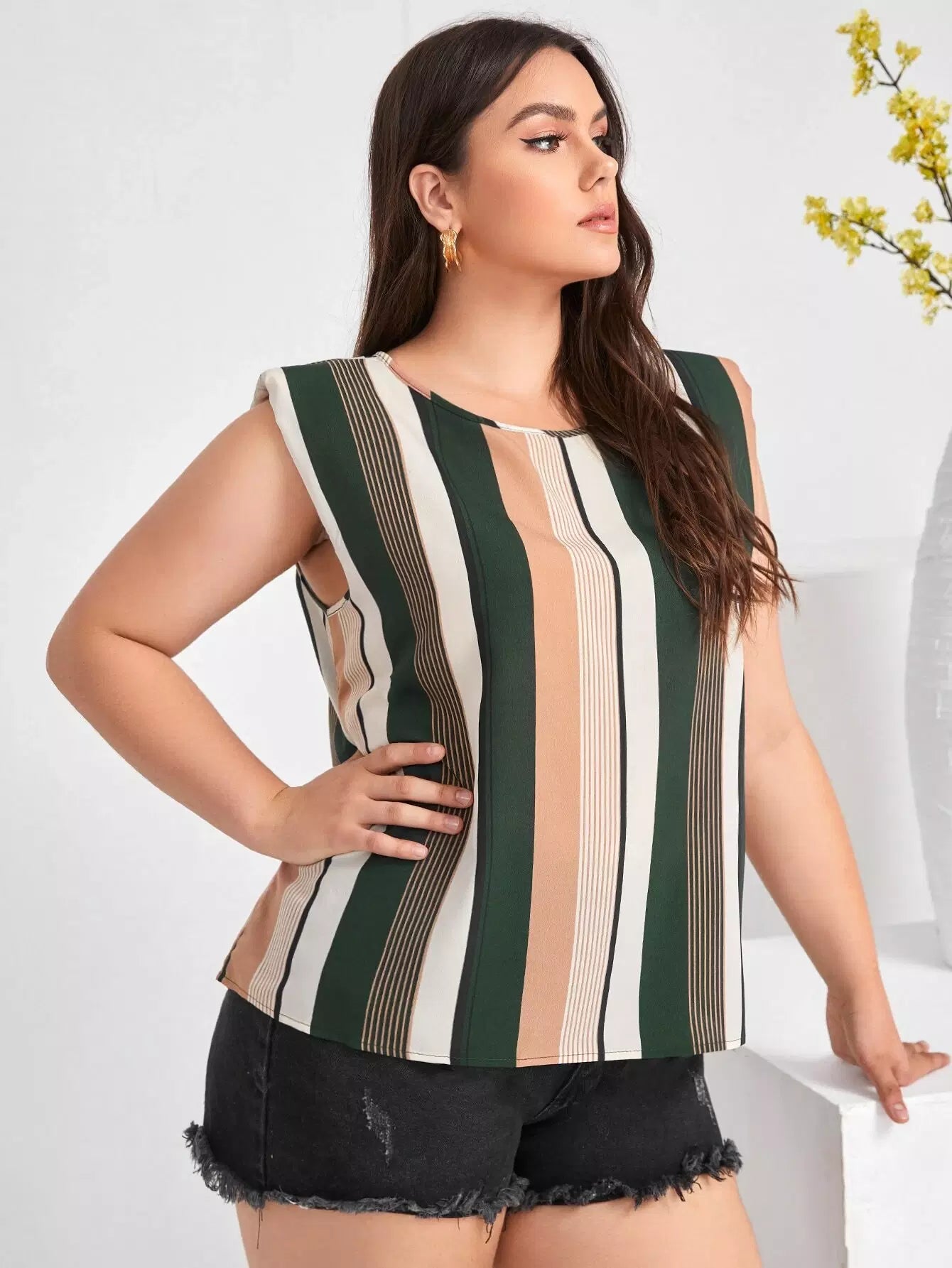 بلوزة بطبعة أكتاف مخططة ومطبوعة على الكتف