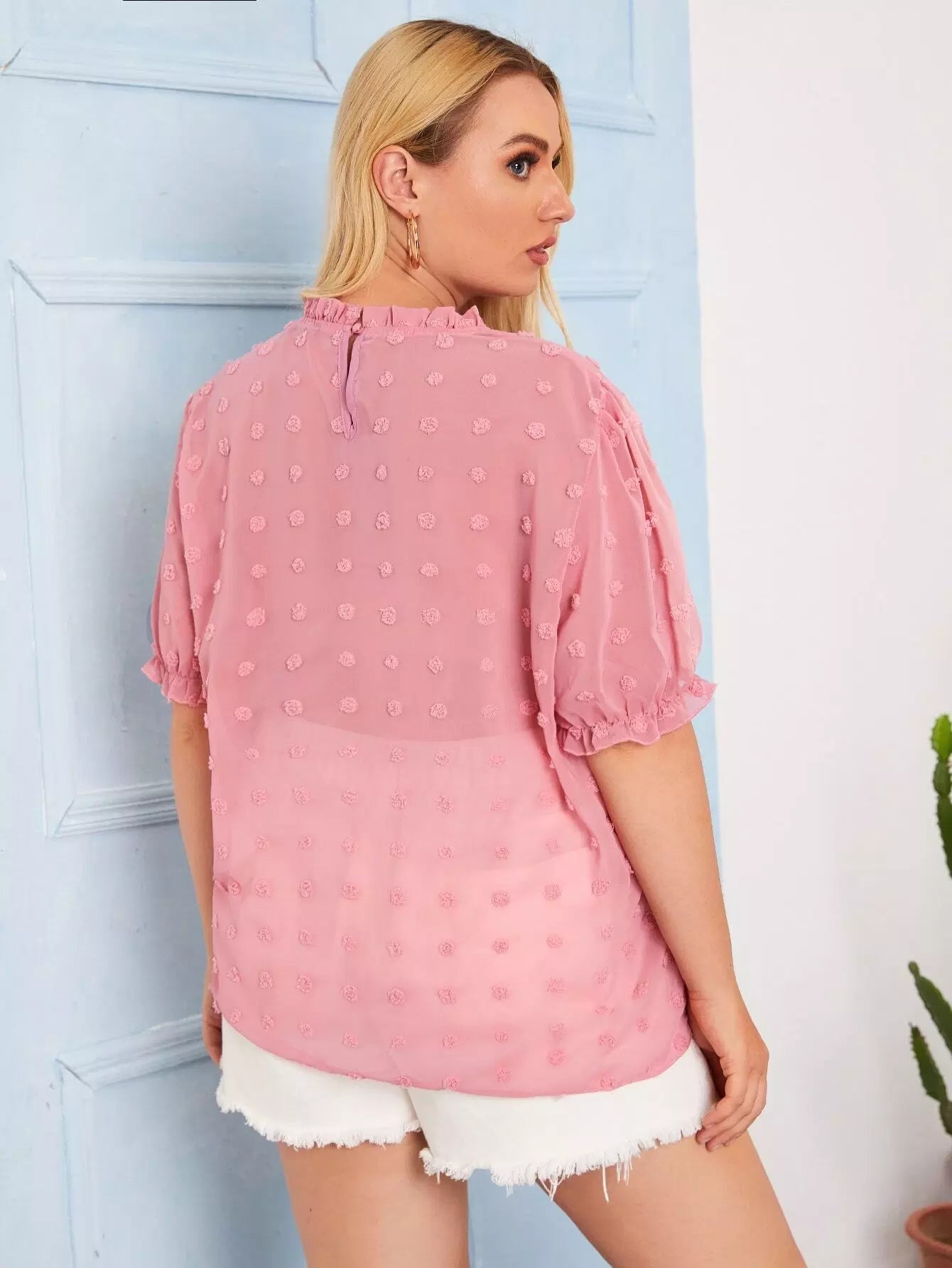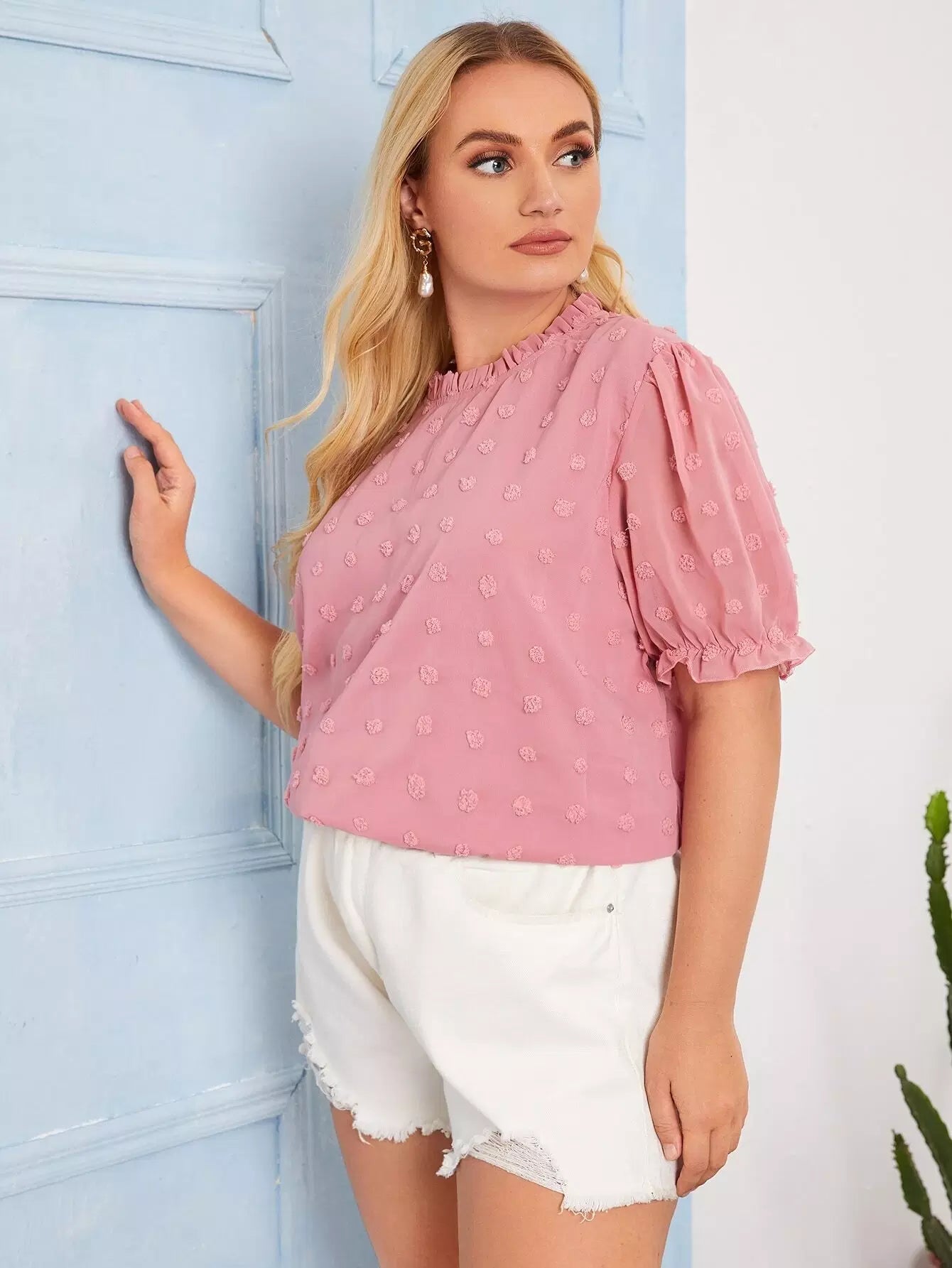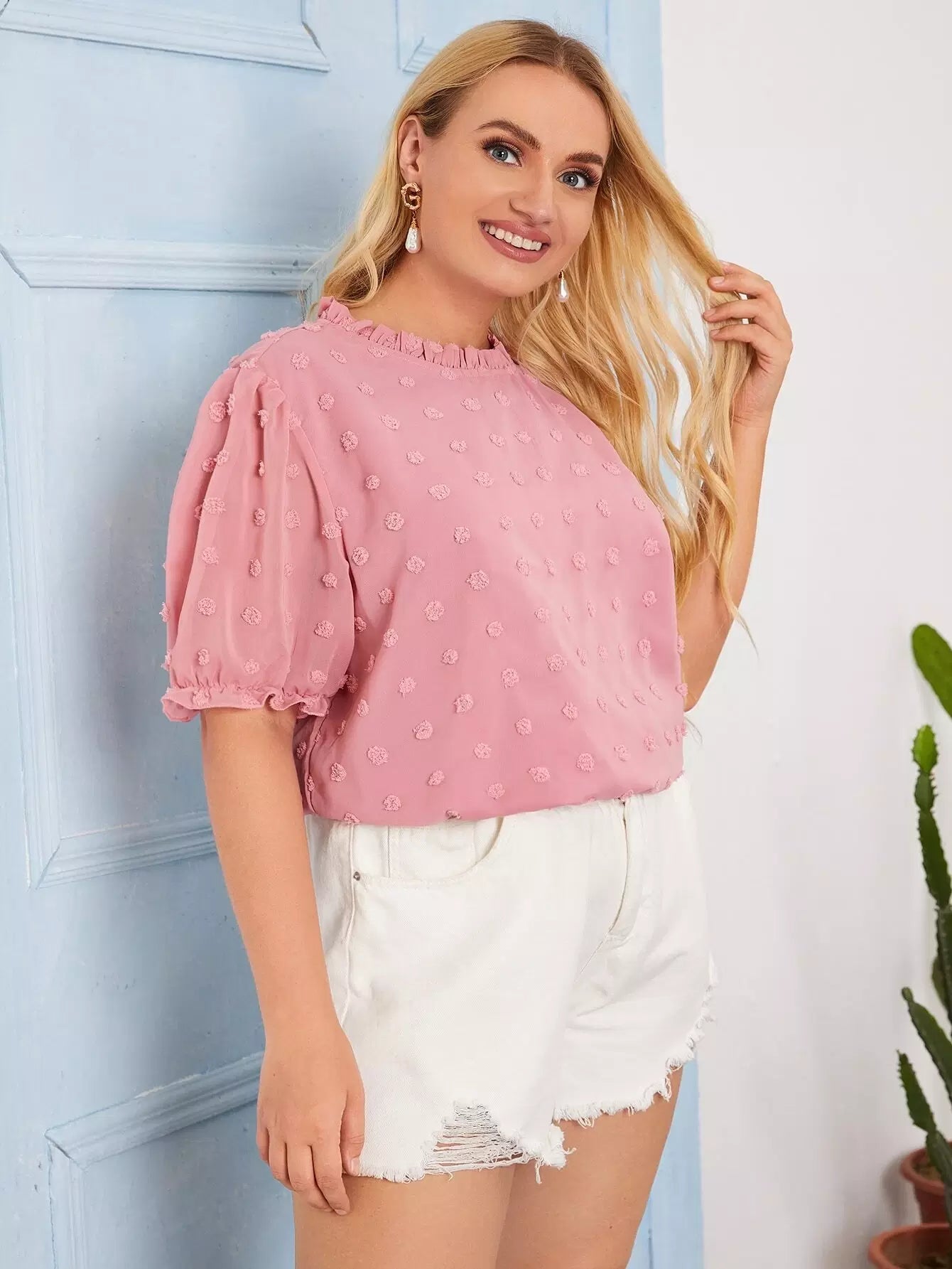 بلوزة زائد سويسرية منقّطة منقّطة مزركشة زائدة