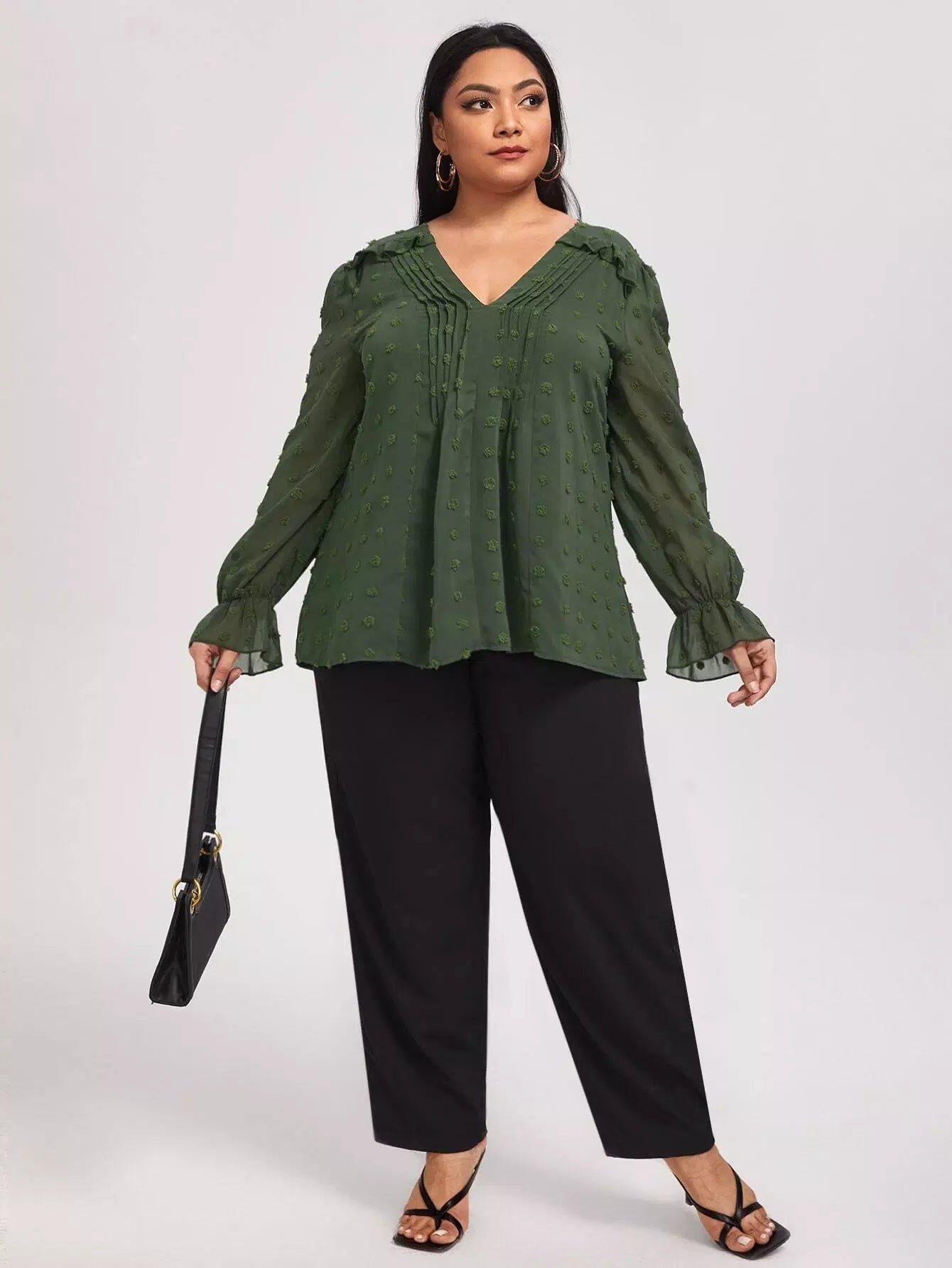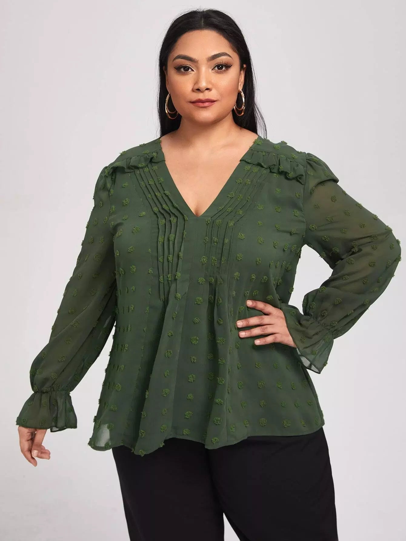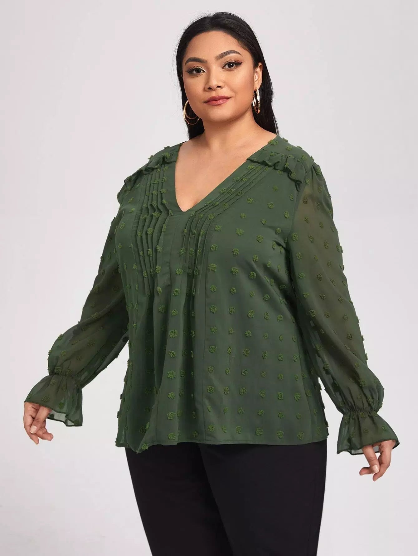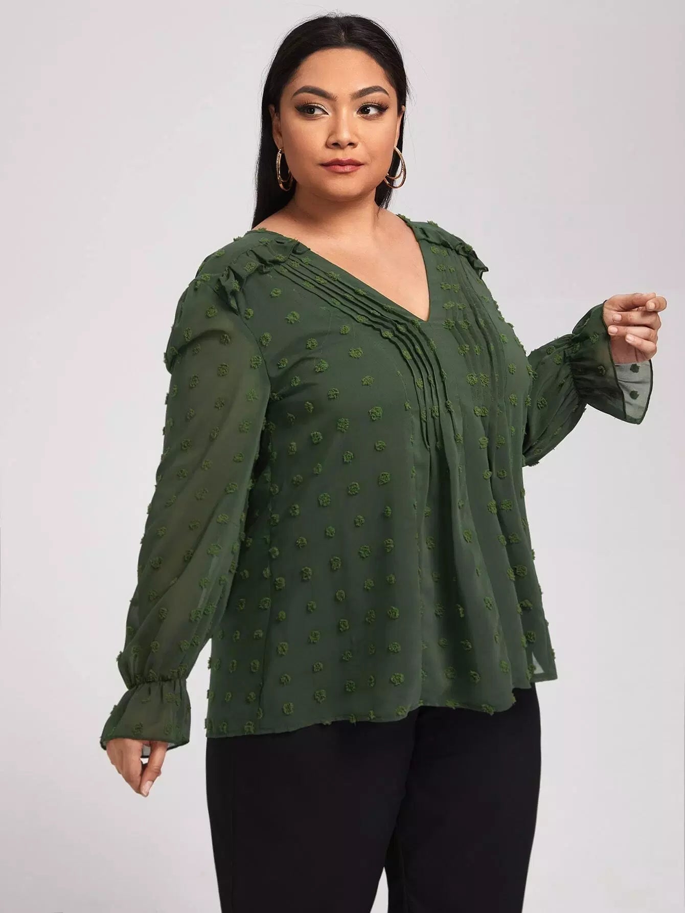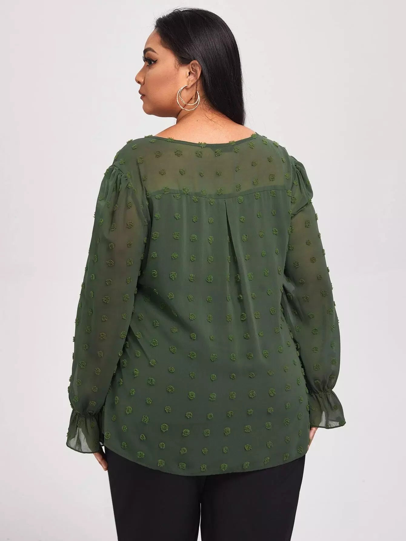 بلوزة بأكمام منقوشة منقوشة منقوشة منقوشة زائد سويسرية