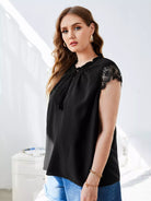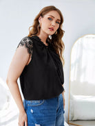 بلوزة من الدانتيل بربطة عنق من الدانتيل بلون مغاير