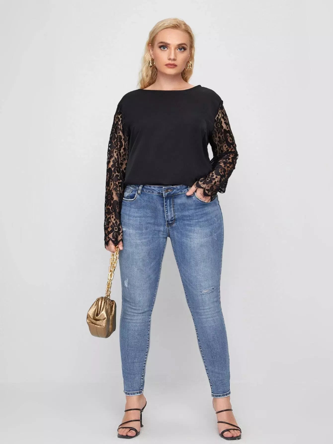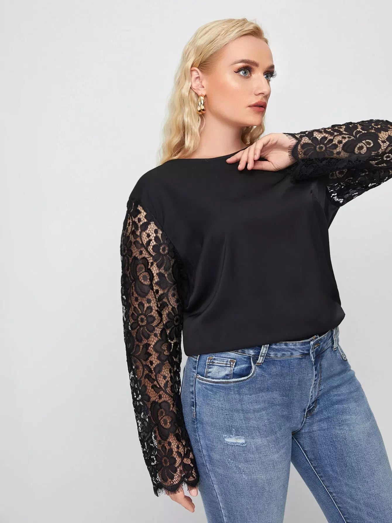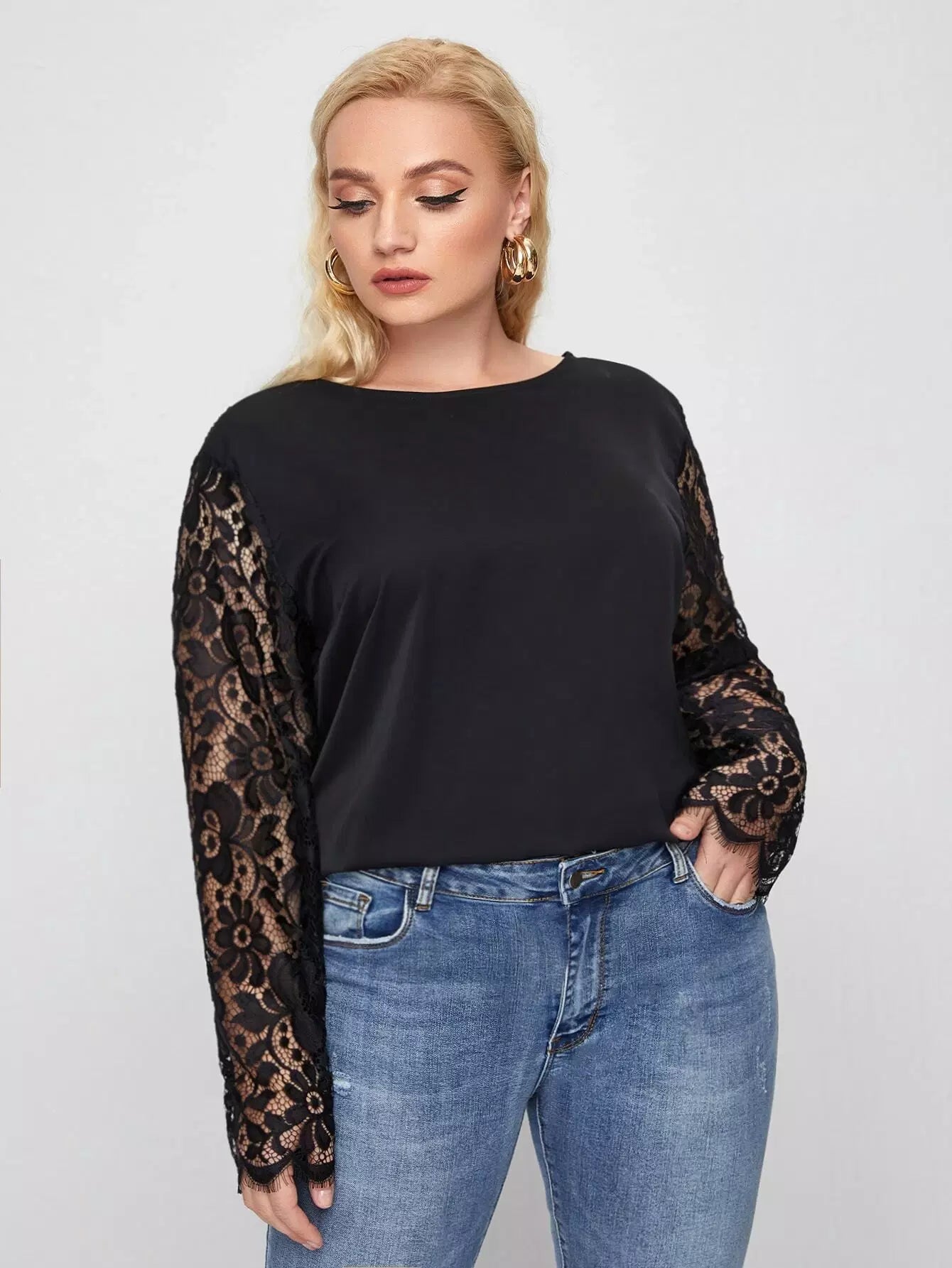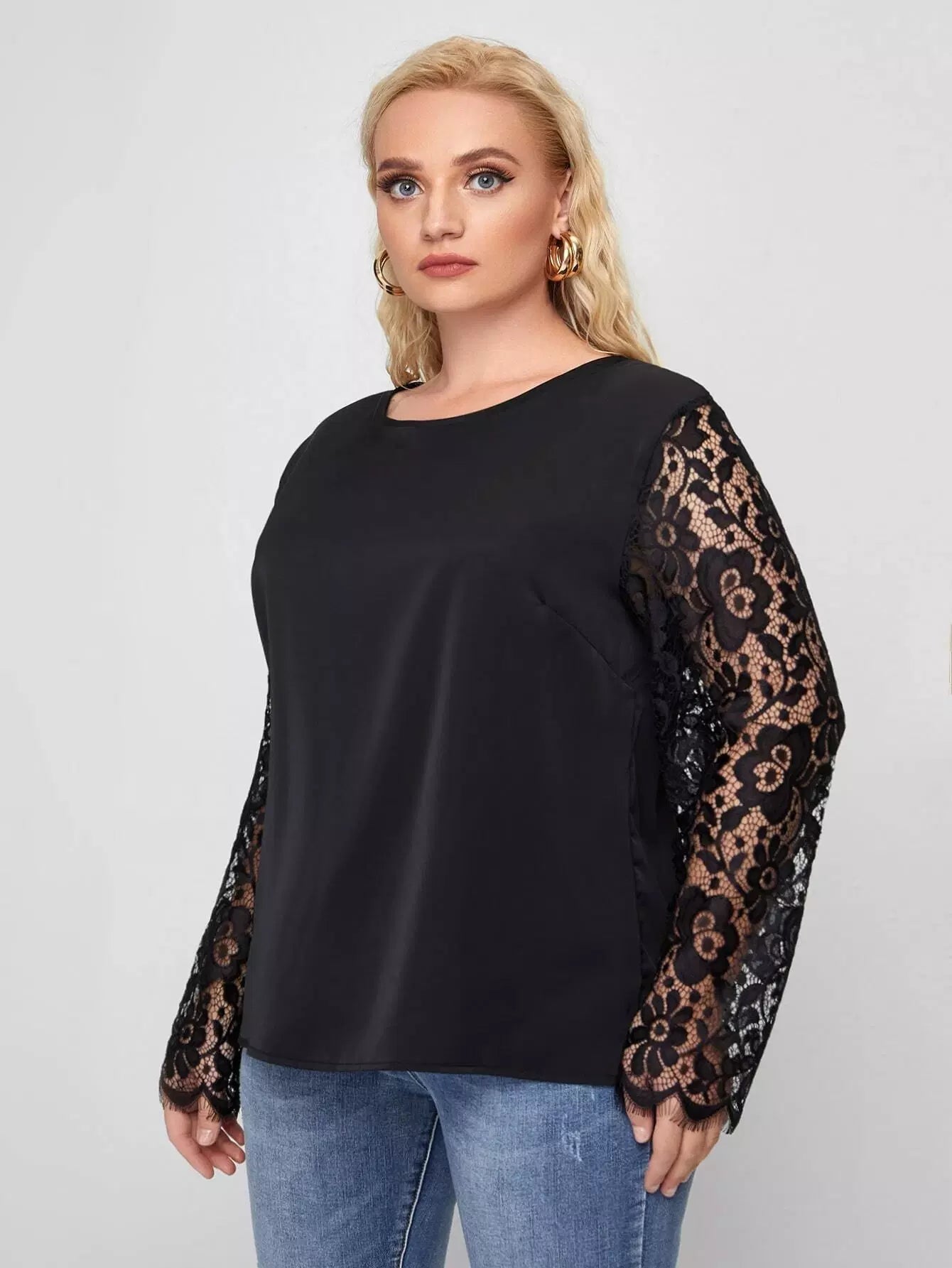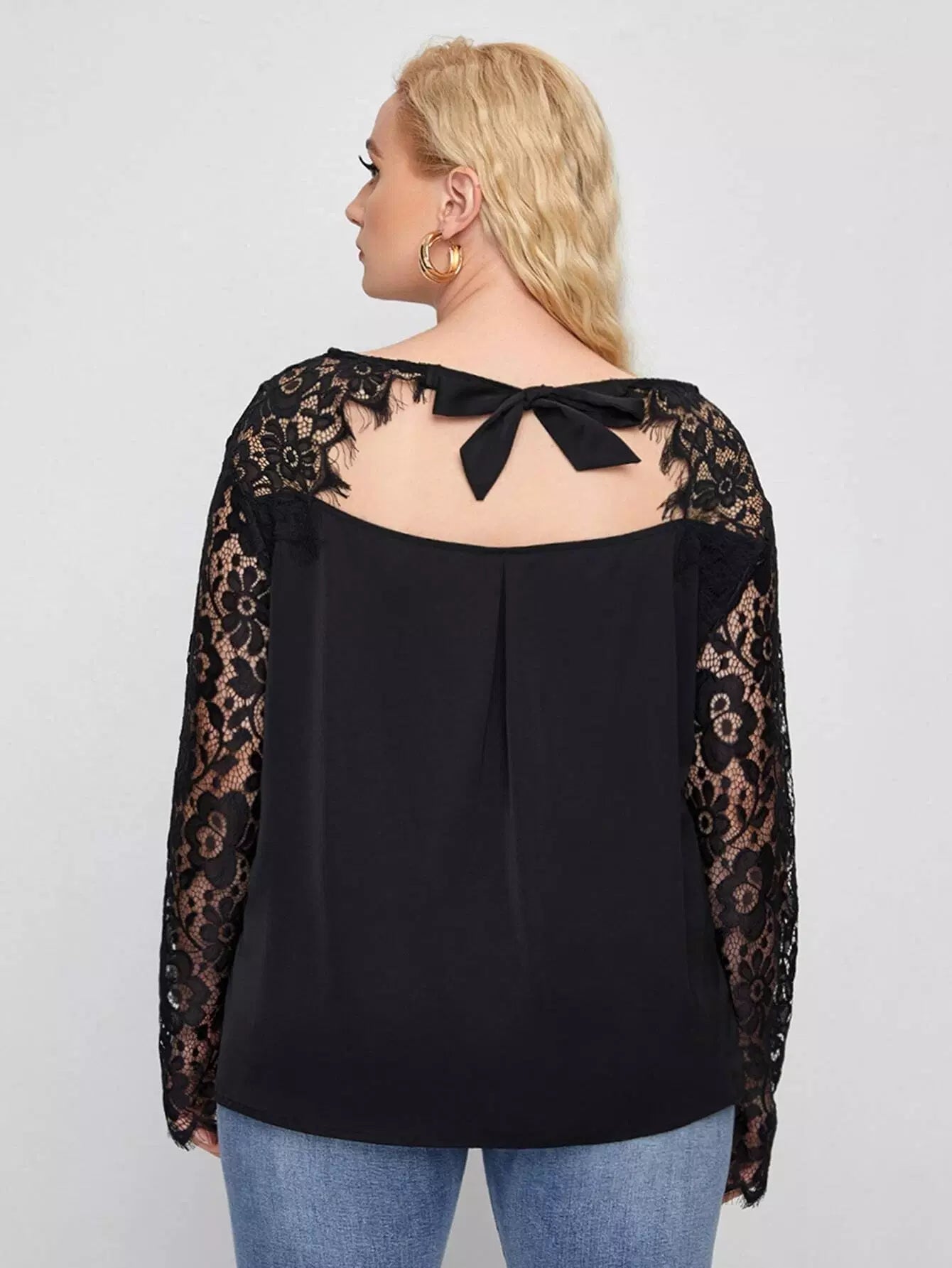 نحيف - مقاس كبير ربطة عنق من الخلف بأكمام من الدانتيل